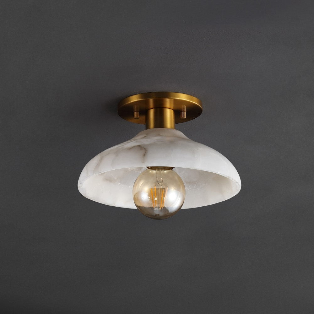 Our alabaster-shaded ceiling fixture combines traditional finishes with a modern semi-flush design. The Edison-style LED bulb provides warm, bright light; the flared shade is complemented by a simple round base. This ceiling light adds classic style to the hallway, bedroom, bathroom, or even a closet.