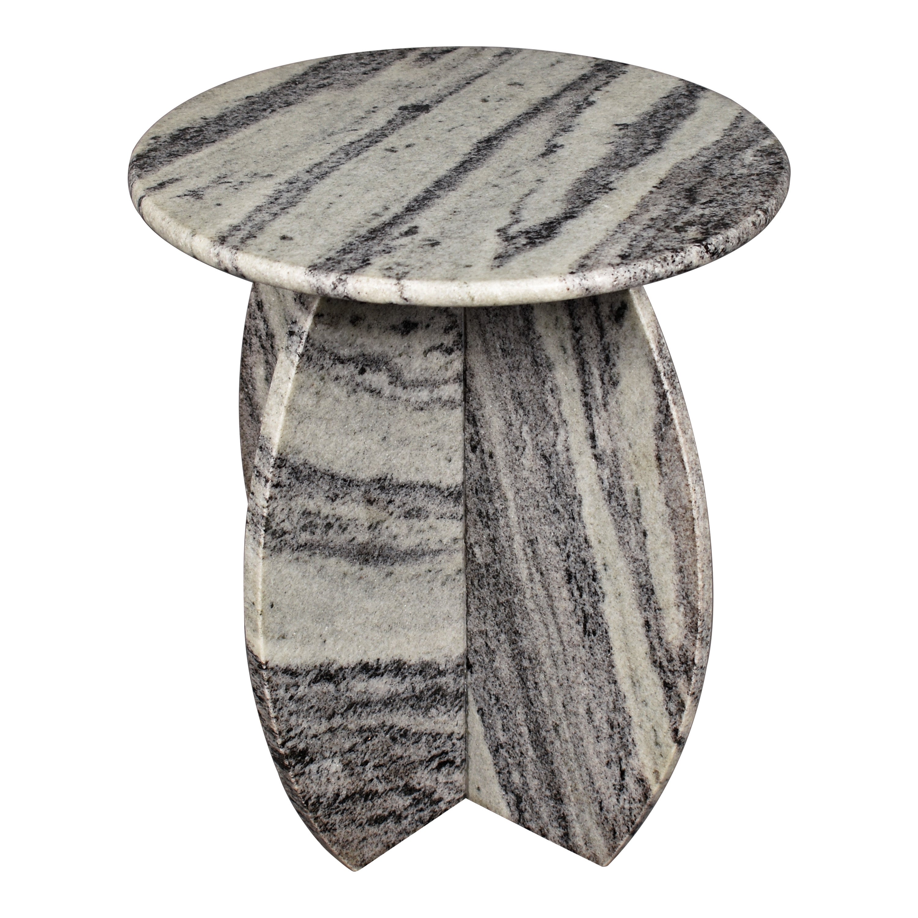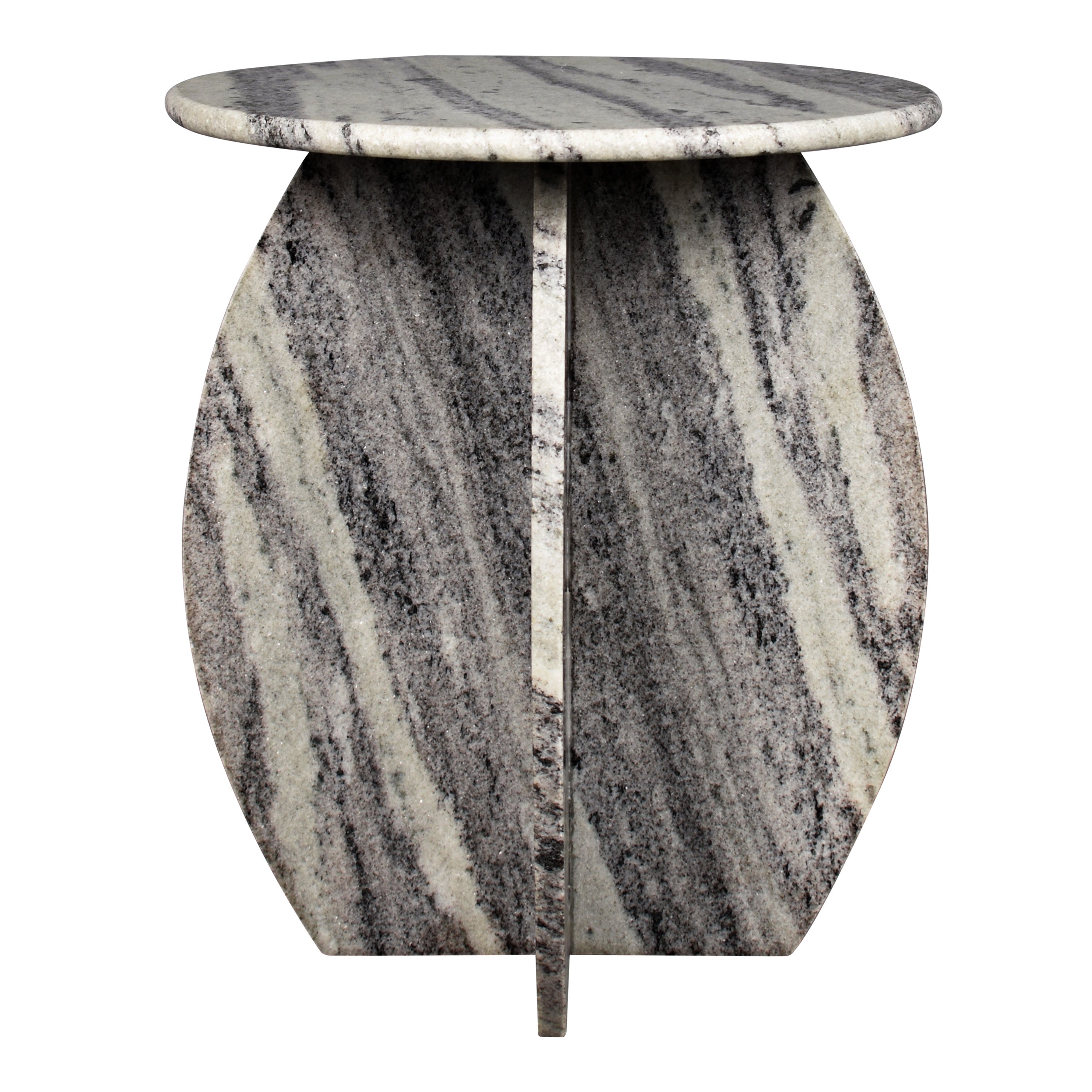 Classic and timeless, this round marble accent table is a chic minimalist design. The tabletop and x-shaped base are made entirely from natural stone. Set one beside a bedroom chair, or use a pair in front of a contemporary living room sofa.