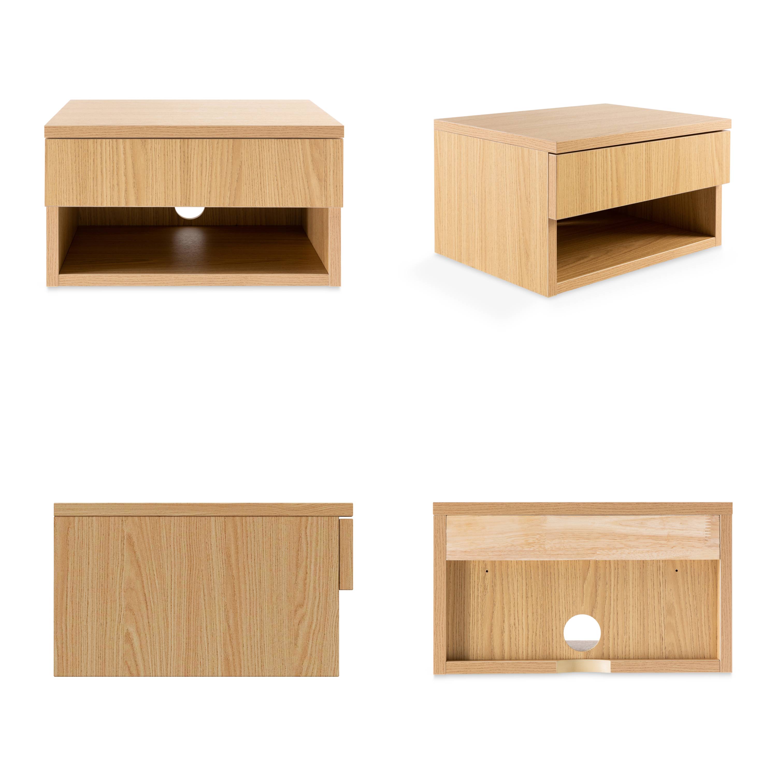 Add convenient storage to your bedroom with our modern floating nightstands. Inspired by mid-century designs, ours feature durable MDF construction with a sleek, minimalist drawer style and an open shelf. Tuck one into a tight corner, or buy two for perfect symmetry.