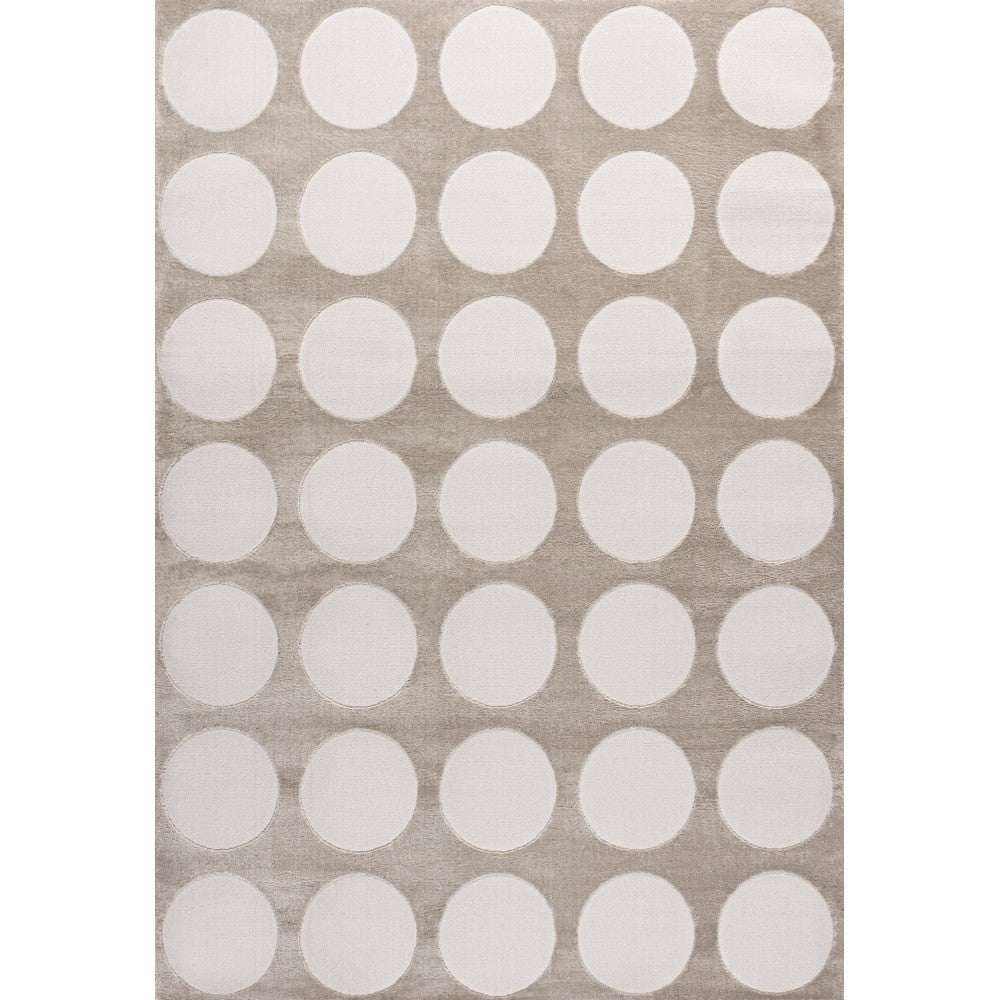 This casual rug features a crisp two-tone color scheme, with a bold geometric pattern of dots. The family-friendly design is woven from plush polyester, with a high-low pile that accentuates the pattern. Make a statement in the bedroom, living room or dining room with this graphic modern rug. Please note that variations in the rug's appearance may occur when the fibers are brushed due to natural light reflection and weaving characteristics.