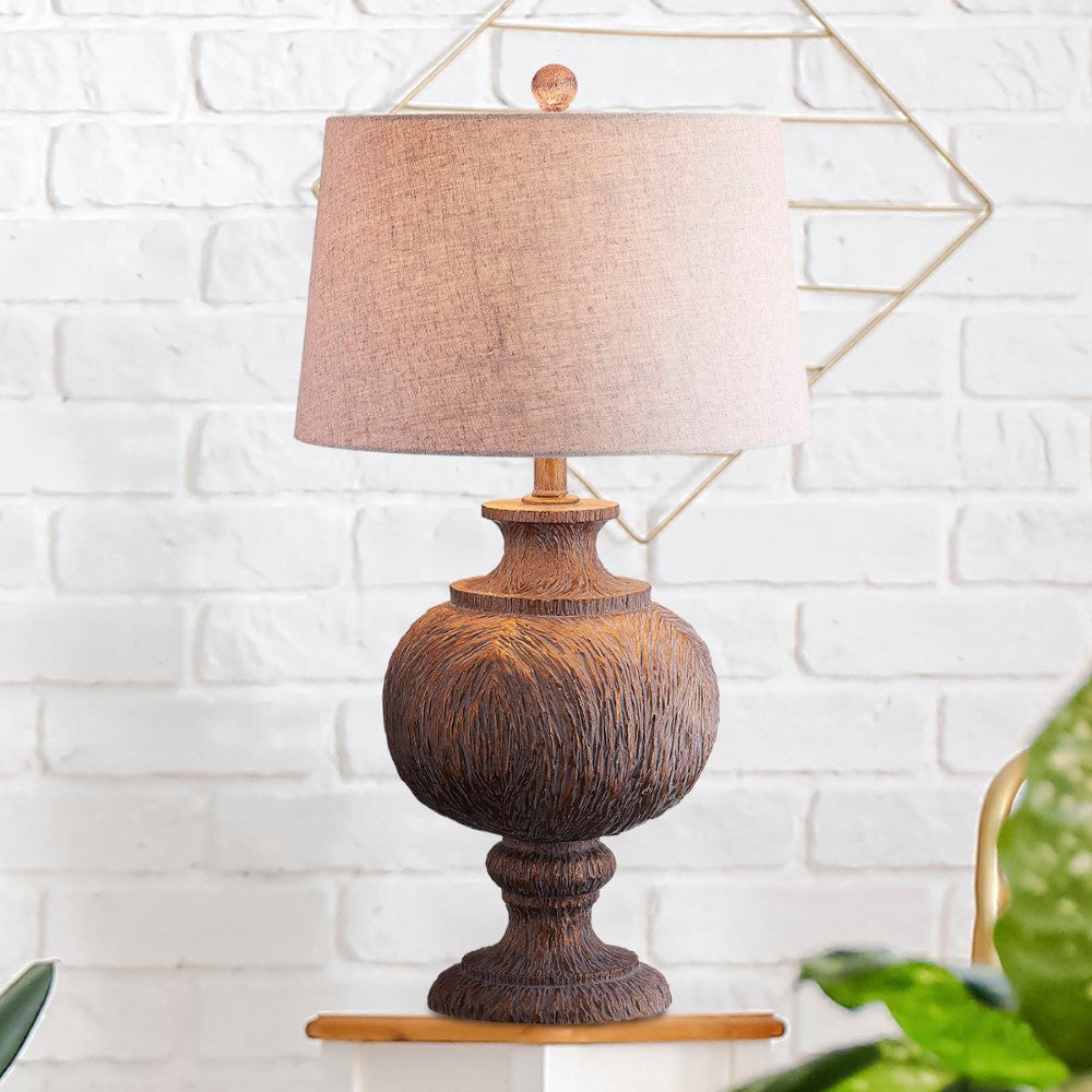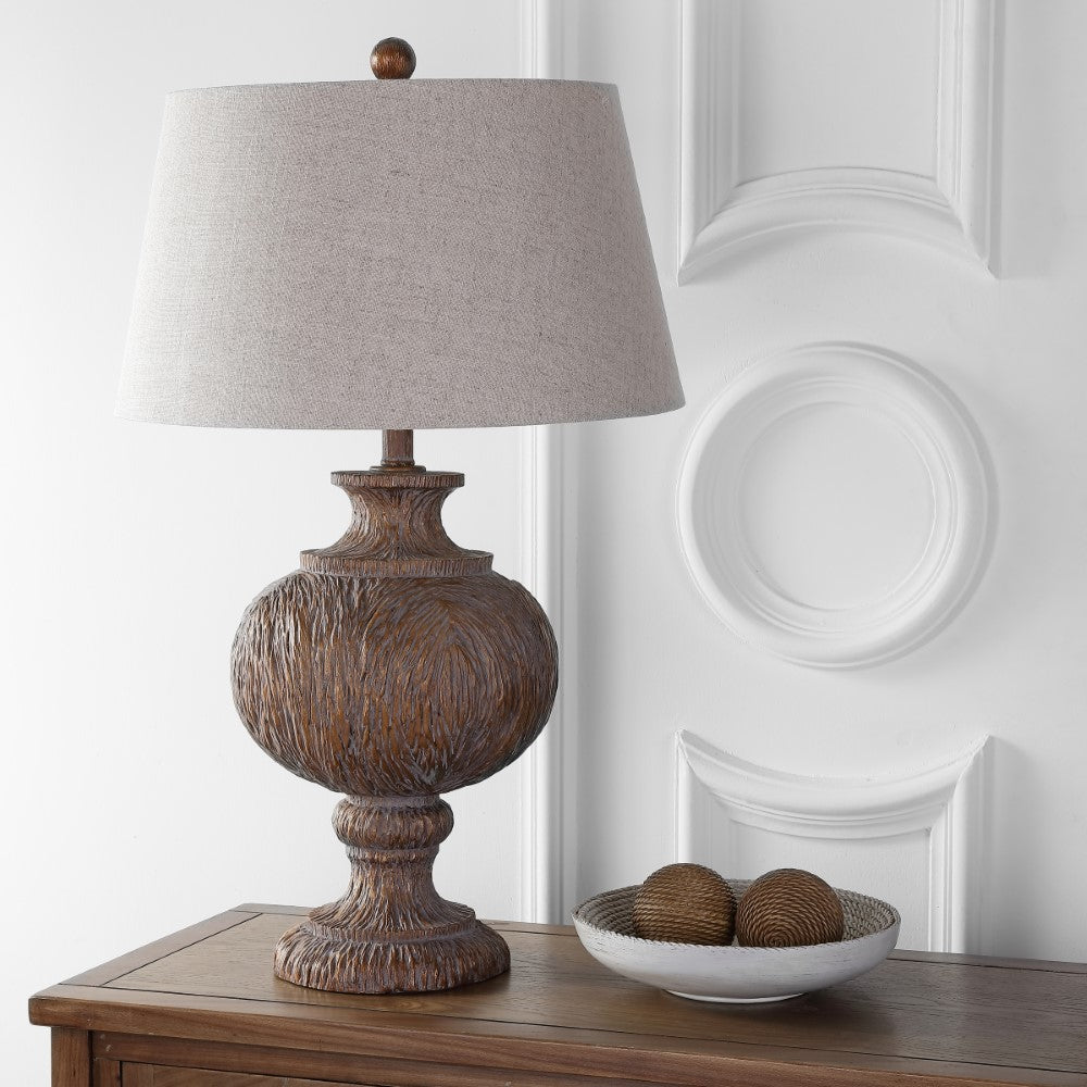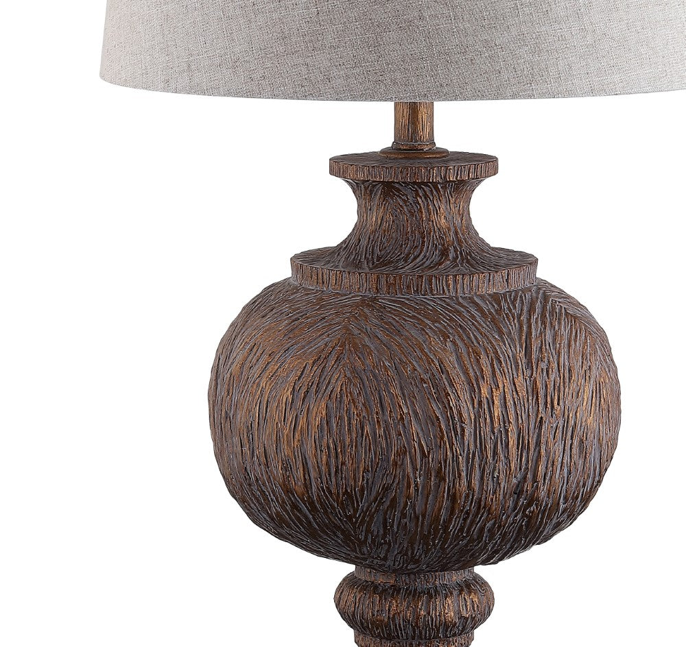 This gorgeous faux bois lamp base is inspired by the antique art of woodturning, in which craftsmen would utilize a wood lathe and hand-held tools to cut a symmetrical shape around the axis of rotation -- similar to how potters use a wheel. This shapely style shows off some of their finest work in balusters, the decorative columns at the end of Victorian staircases. Taking a mold from this shape and reproducing it in resin gives us this gorgeous base, hand-finished to look like wood and topped with our signature linen tapered drum shade.
