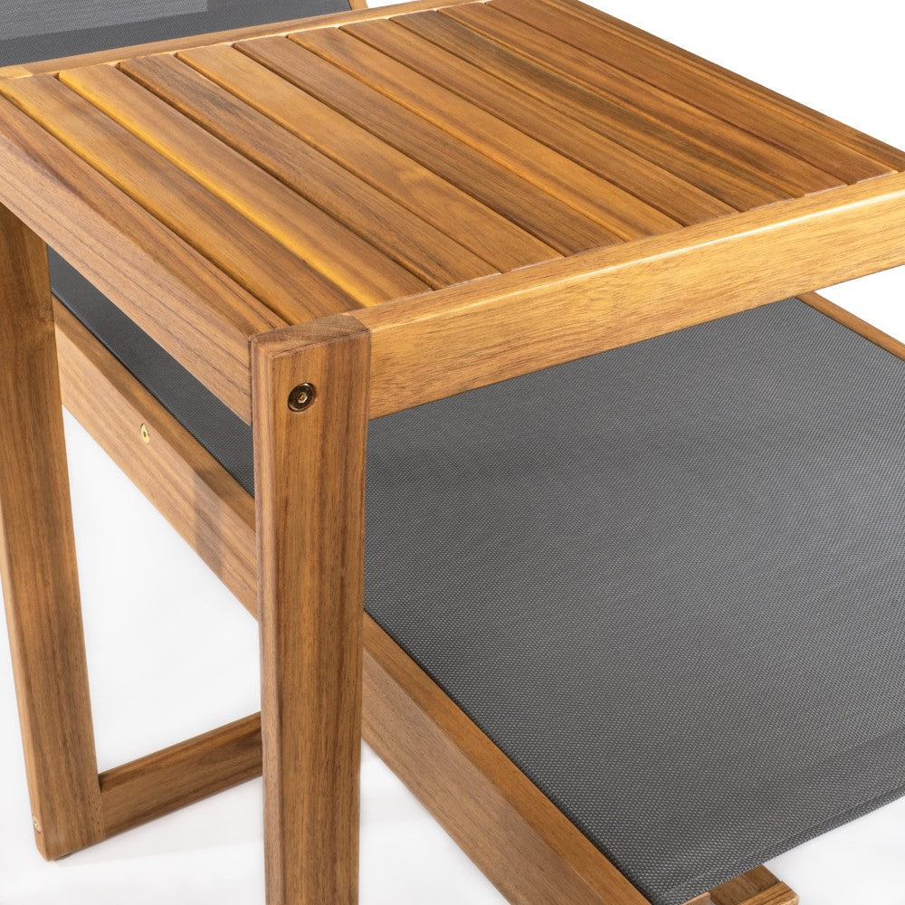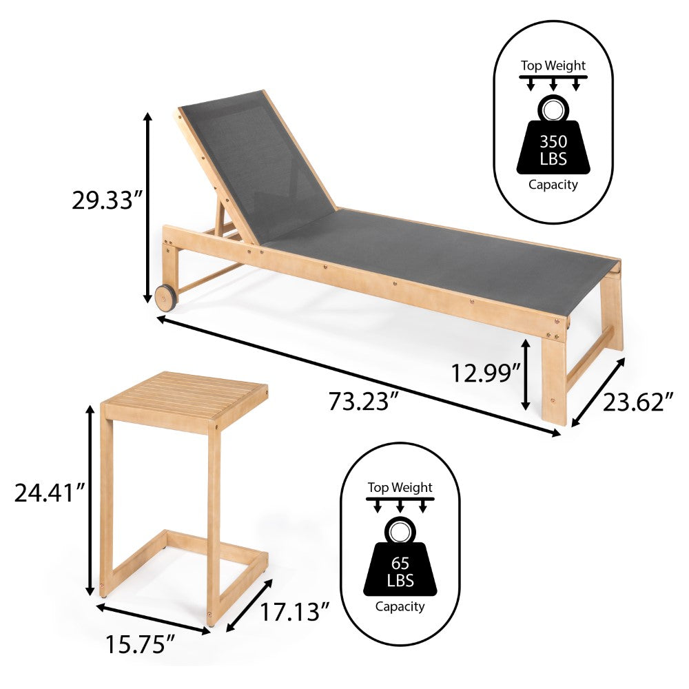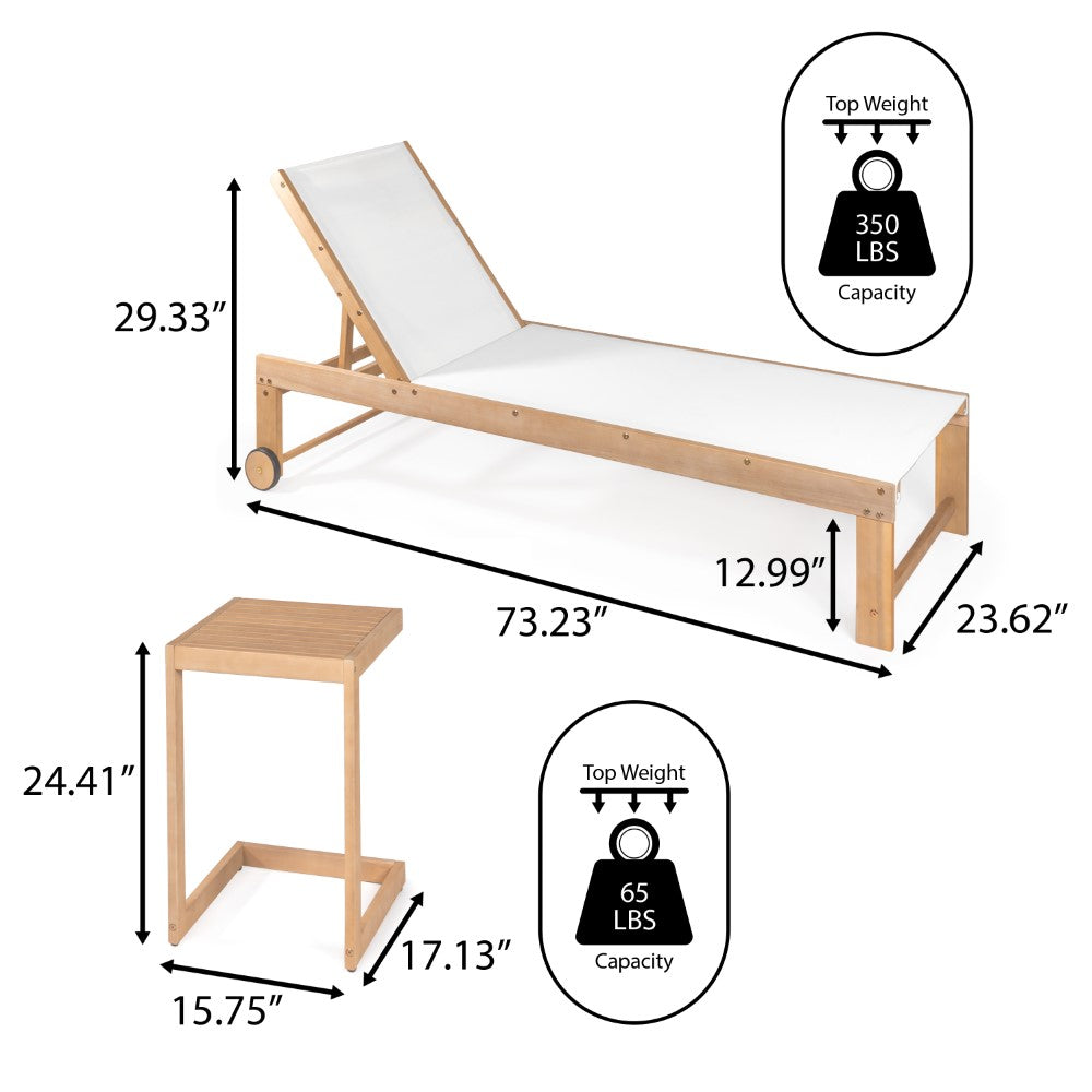Wade Coastal Modern Acacia Wood Mesh 3-Position Outdoor Chaise Lounge Set with Side Table