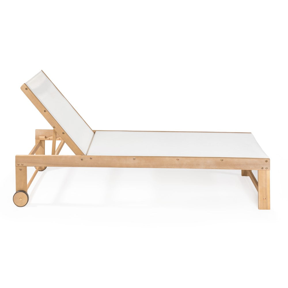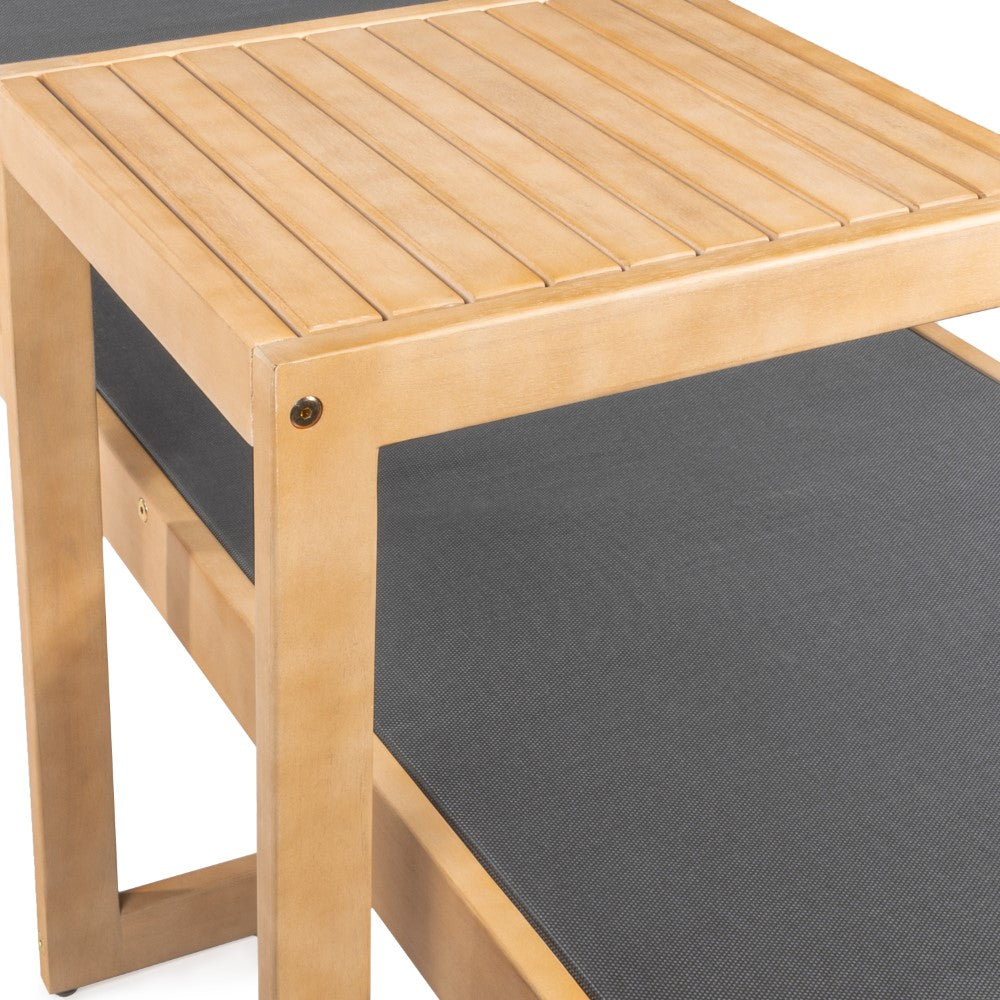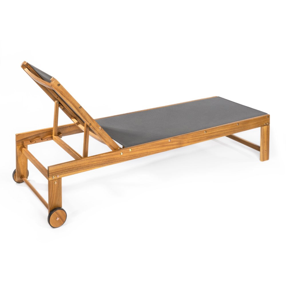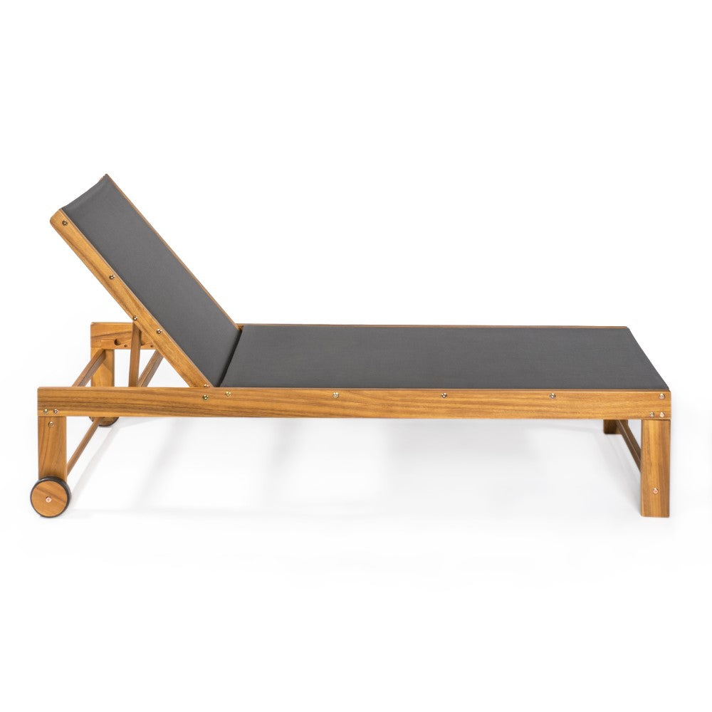 Wade Coastal Modern Acacia Wood Mesh 3-Position Outdoor Chaise Lounge Set with Side Table