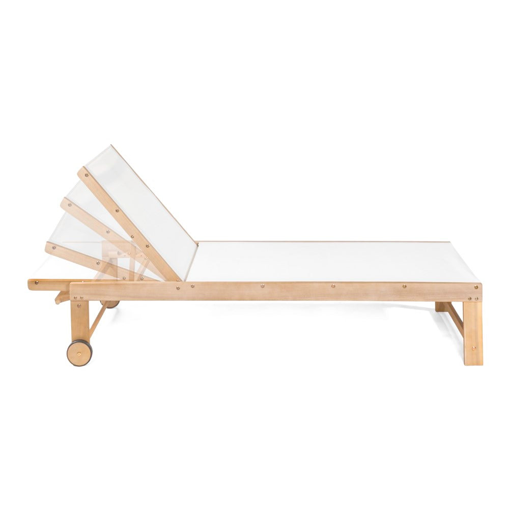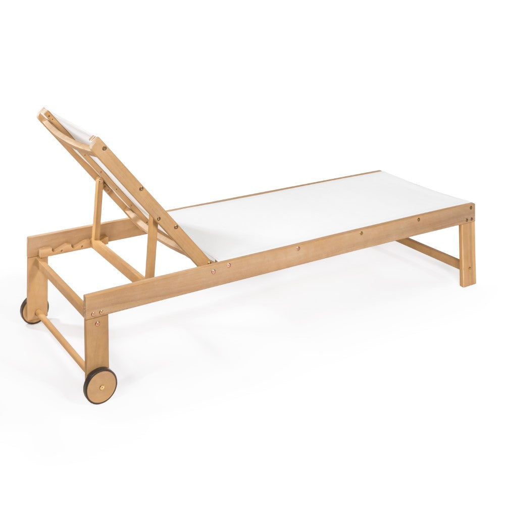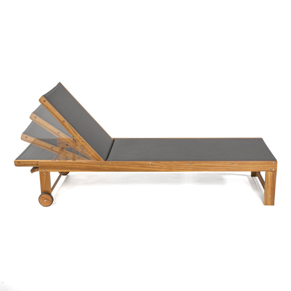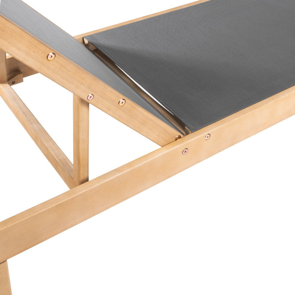 Our modern lounge set pairs an adjustable chaise lounge in cooling Textile fabric with a matching side table for an upscale resort vibe. You'll love the comfort of our three-position back, and the durable mesh sling that lets air circulate. Both pieces have sturdy hardwood frames protected with a teak oil finish.