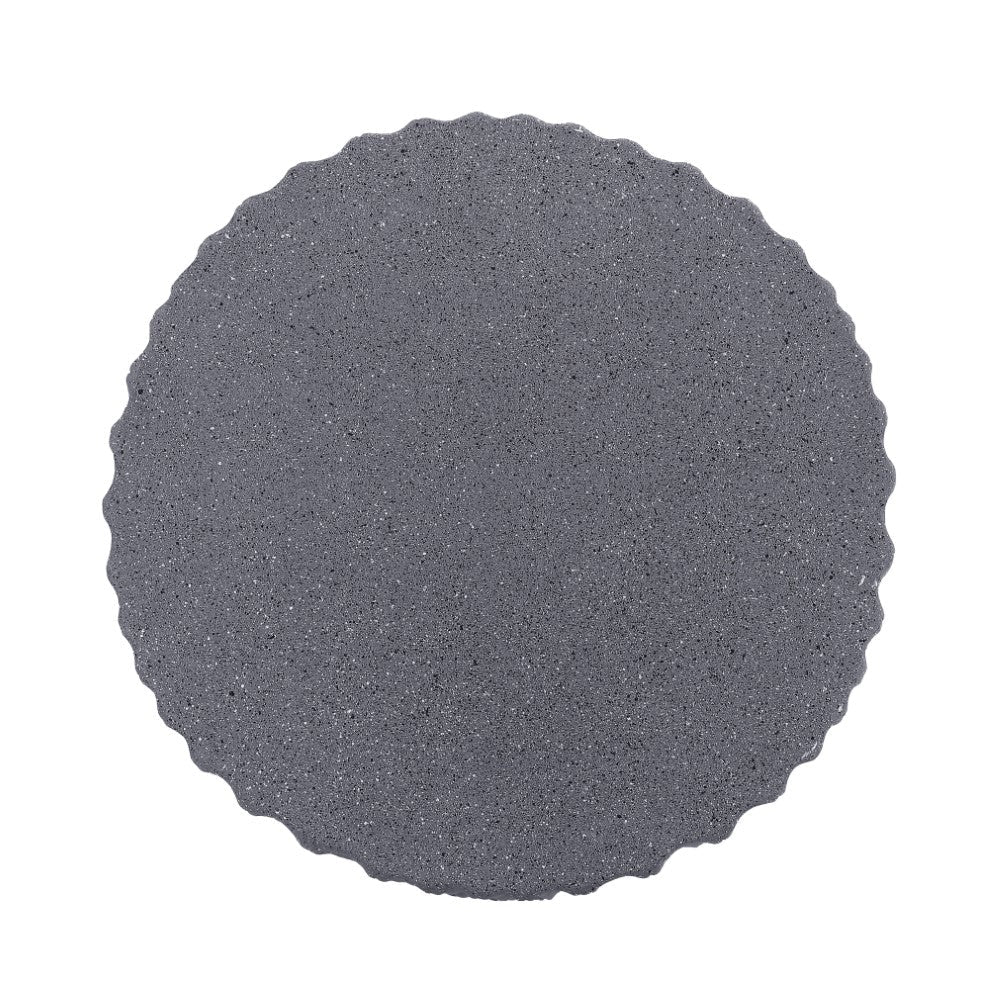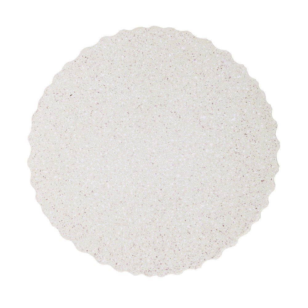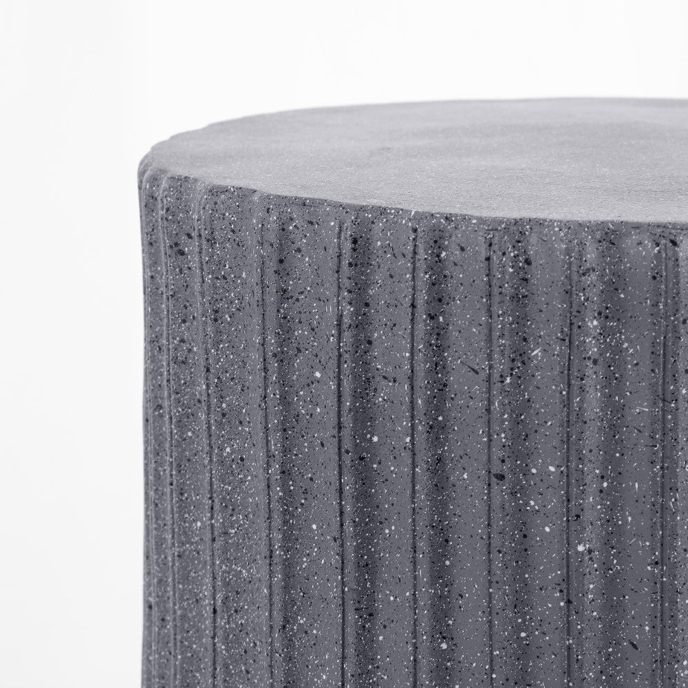 • A smooth, matte finish and terrazzo-gray color make this table a perfect mid-century accent