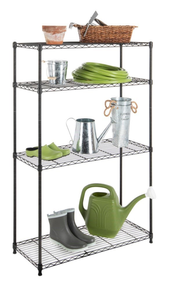 Wherever you need additional space, these durable wire shelves are a versatile option. Whether holding your bins of holiday decorations, kitchen supplies, photo albums, linens or non-perishable food, this 4-shelf storage rack is the perfect solution to help you keep your home clean and organized. With its minimalist design, you can easily see what you've stored to allow for easy access and re-stocking.