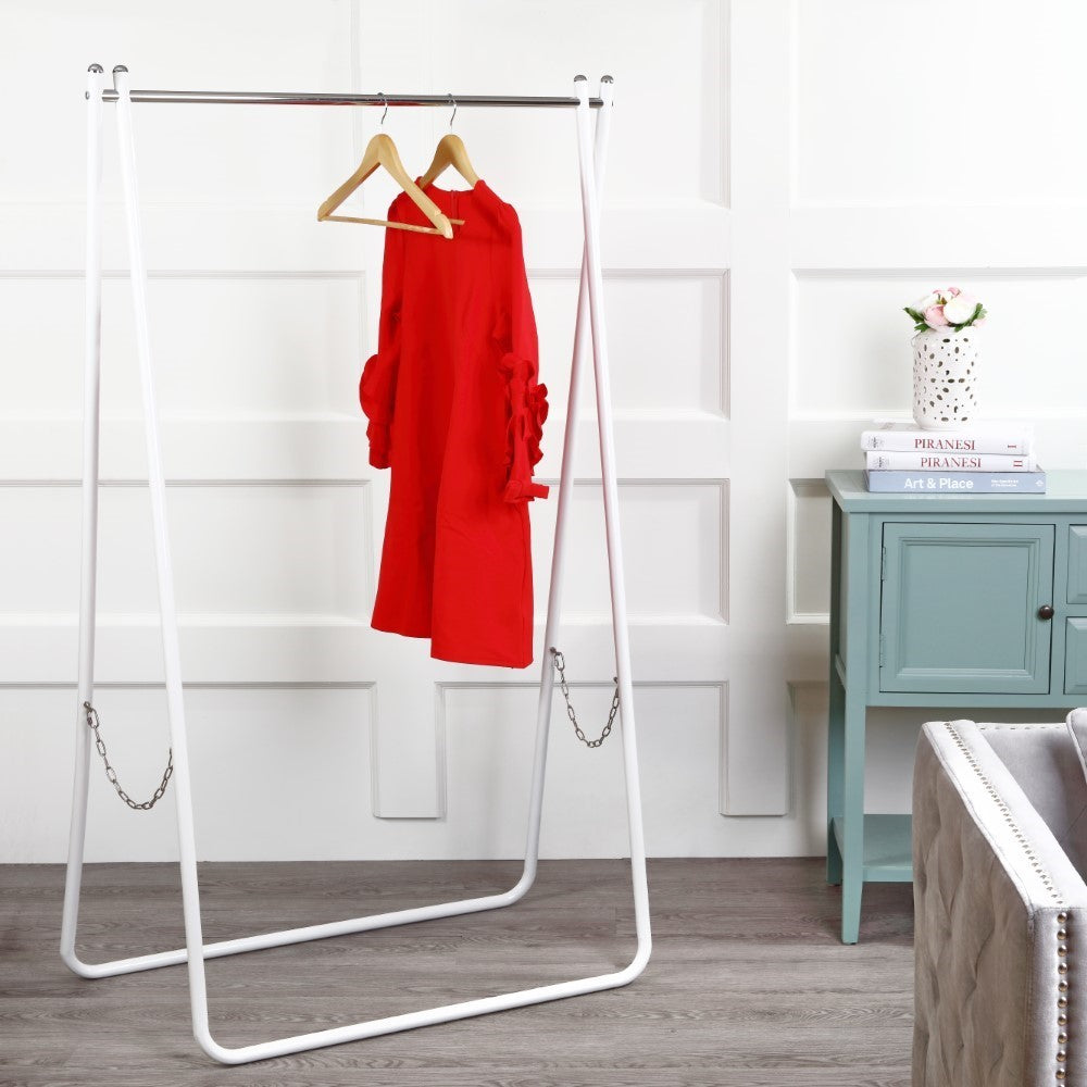 These powder-coated single rail garment racks are a great solution for storing overflow from your clothing collection, or for seasonal use for coats and winter accessories. Whether you need to use them permanently or temporarily, they fold away flat for storage and are easily assembled when needed. Boutique owners love them for sidewalk sales, clearance items, and storing overstocked merchandise in warehouses; and homeowners love them for organization and display.