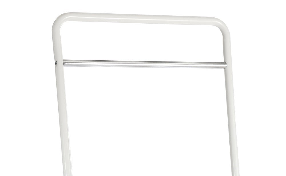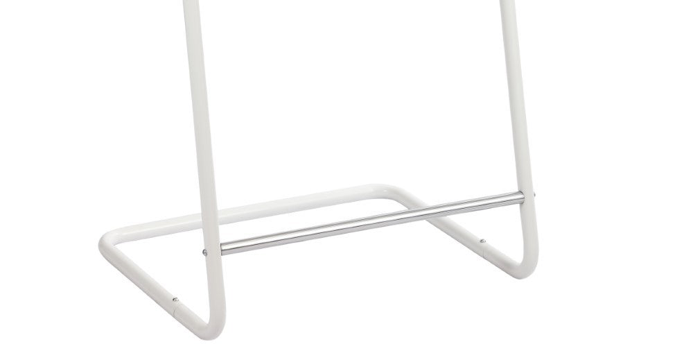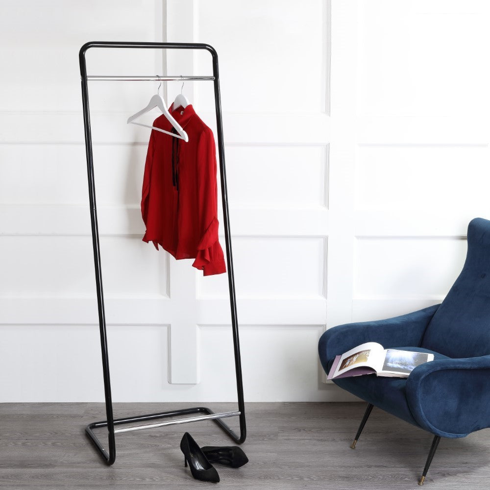 The minimalist, cantilever construction of this garment rack seemingly defies gravity while keeping your clothes looking fresh. Try it as temporary storage for clothing, towels, or accessories and towels in any room of the home, or pop it up near the entrance to an event as a temporary coat check for guests. The delicate frame is made of powder-coated iron and suits any interior due to its simple, unobtrusive design.
