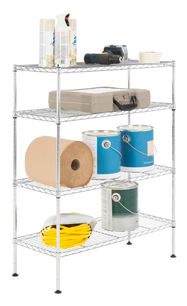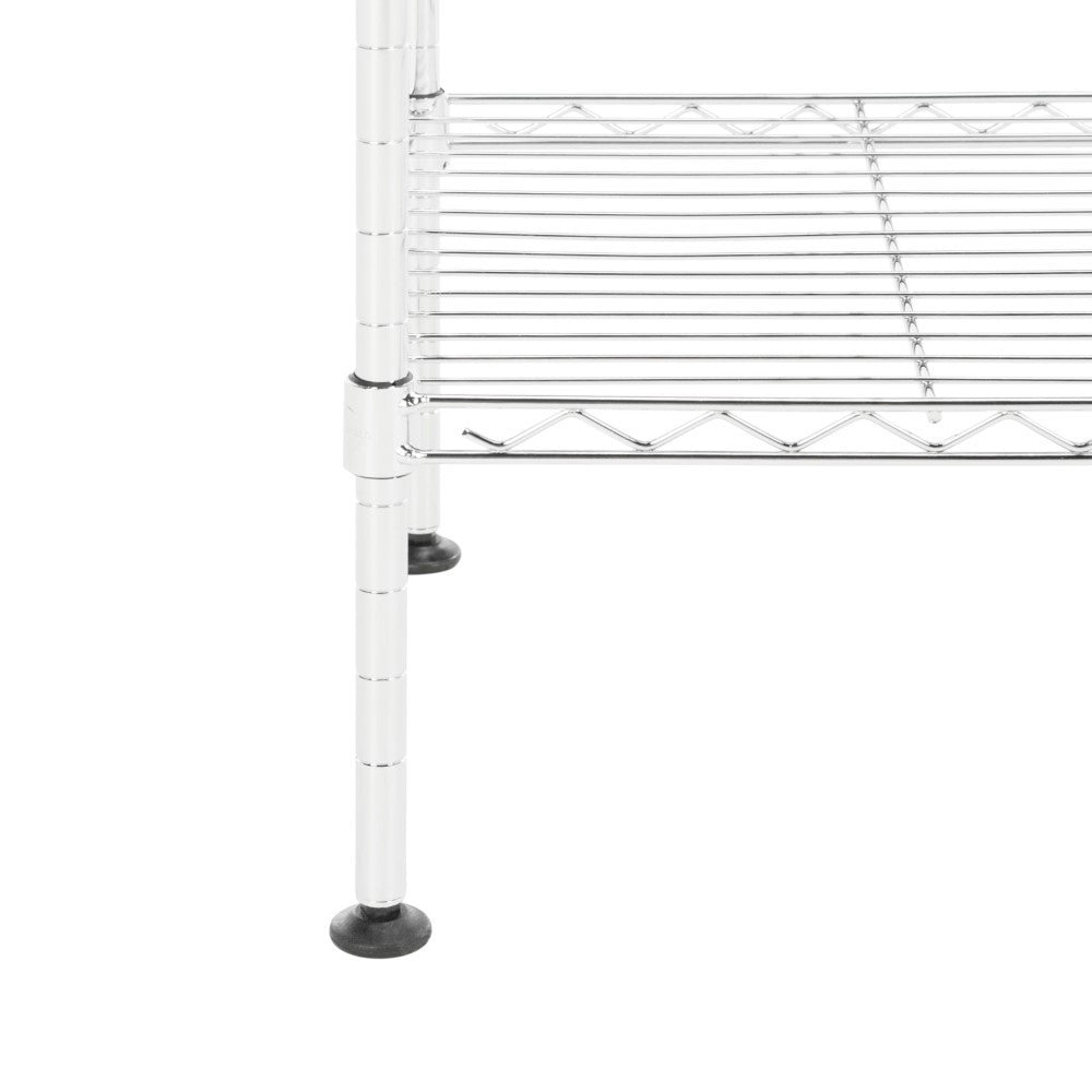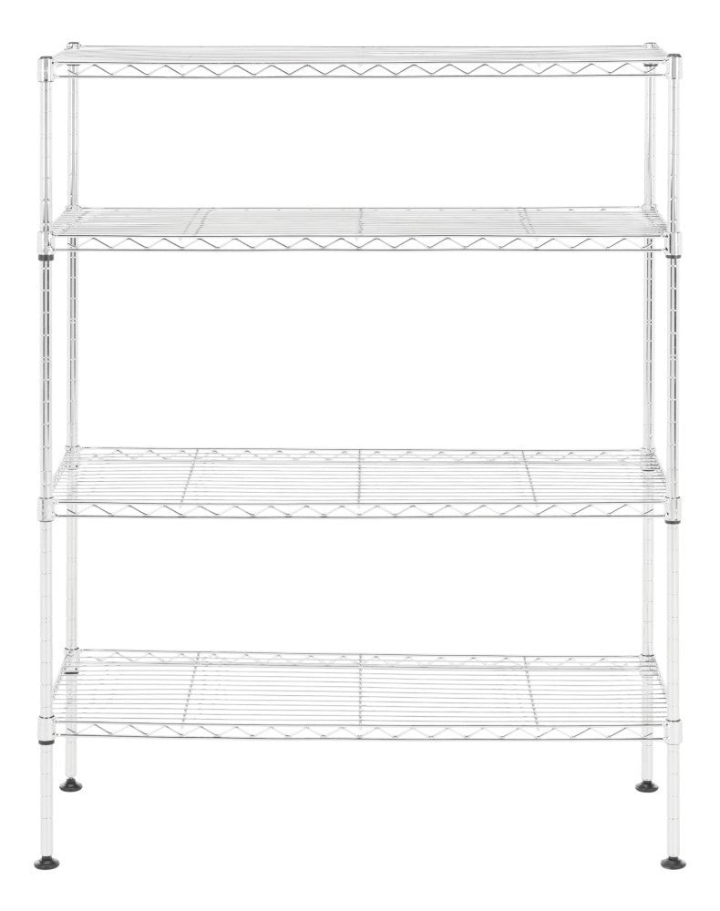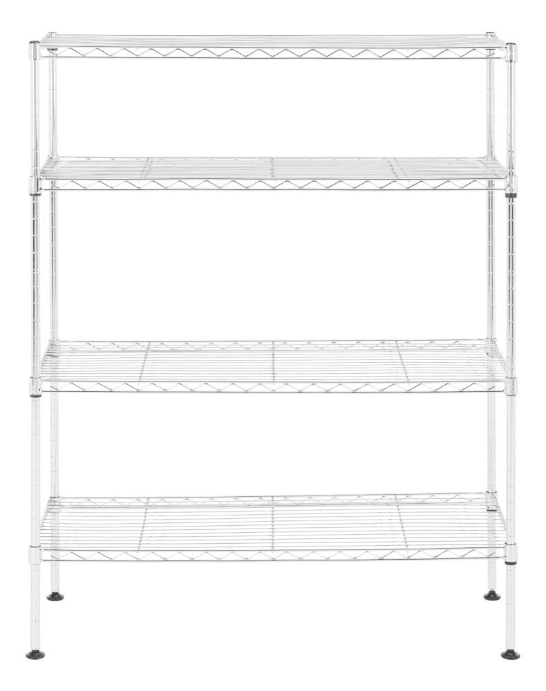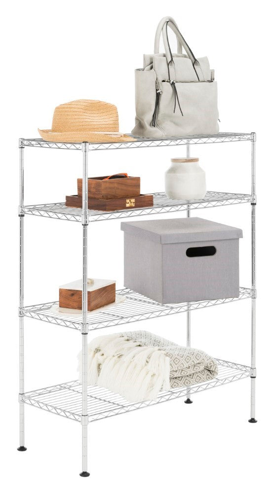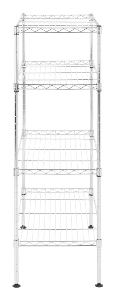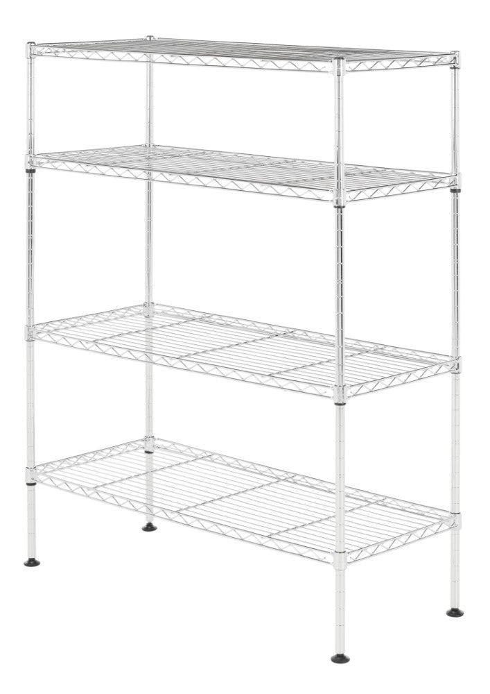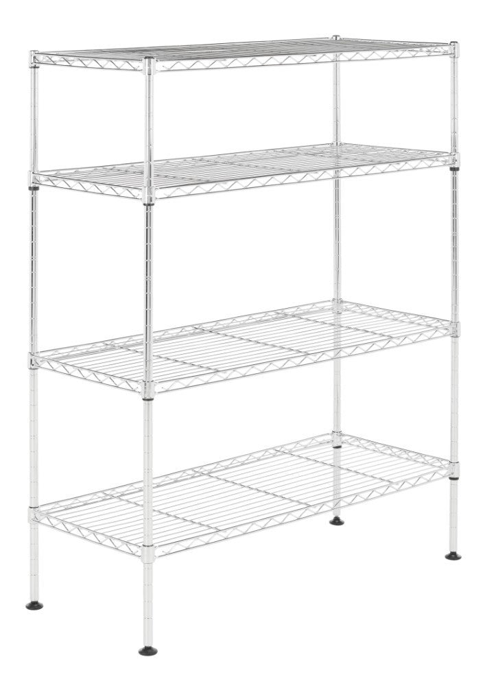 Display your shoe collection with this 4-shelf rack perfectly scaled for entryways and closets. With a chrome finish, steel rods, and non-slip feet, its sturdy construction is the perfect foundation for your footwear. The adjustable height of shelving allows for varying heights to facilitate shallow heights for flats and sandals and more height for boots and heels so you can alter the configuration as the seasons change.