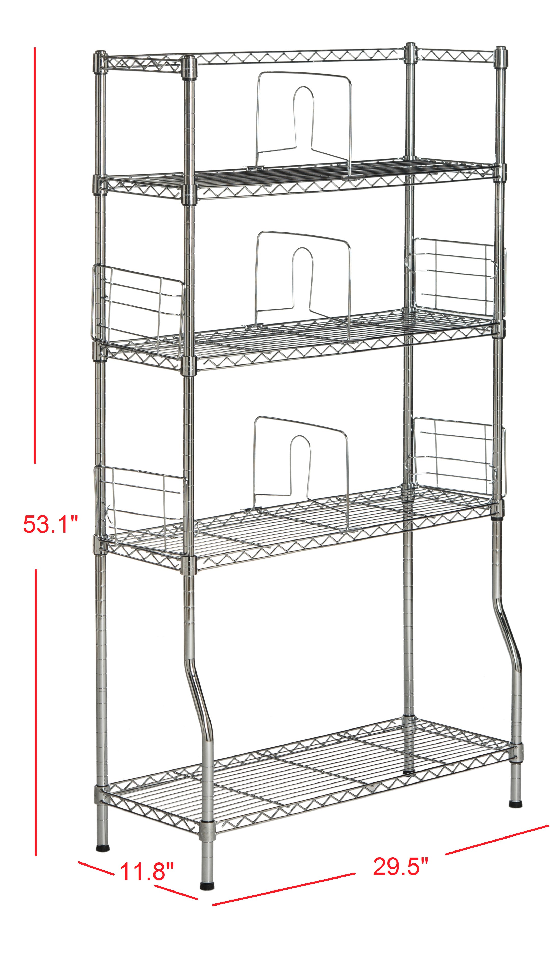 At 53” tall, this book rack is a functional addition to any modern office space. Ideally sized for an office nook or playroom, this chromed steel bookshelf with non-slip feet provide a sturdy foundation for your collection of cookbooks or novels. Best of all, the shelves are adjustable so whether you're storing photo albums or paperbacks, the shelf height can be adjusted to suit any combination of tomes.