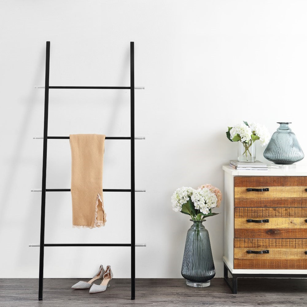 For decoration or storage in a small space, this ladder rack is a contemporary take on bulky shelving. From the bathroom to the living room, it's perfect for storing towels, magazines, throws, and more. This simple but special piece will blend effortlessly with any color palette.