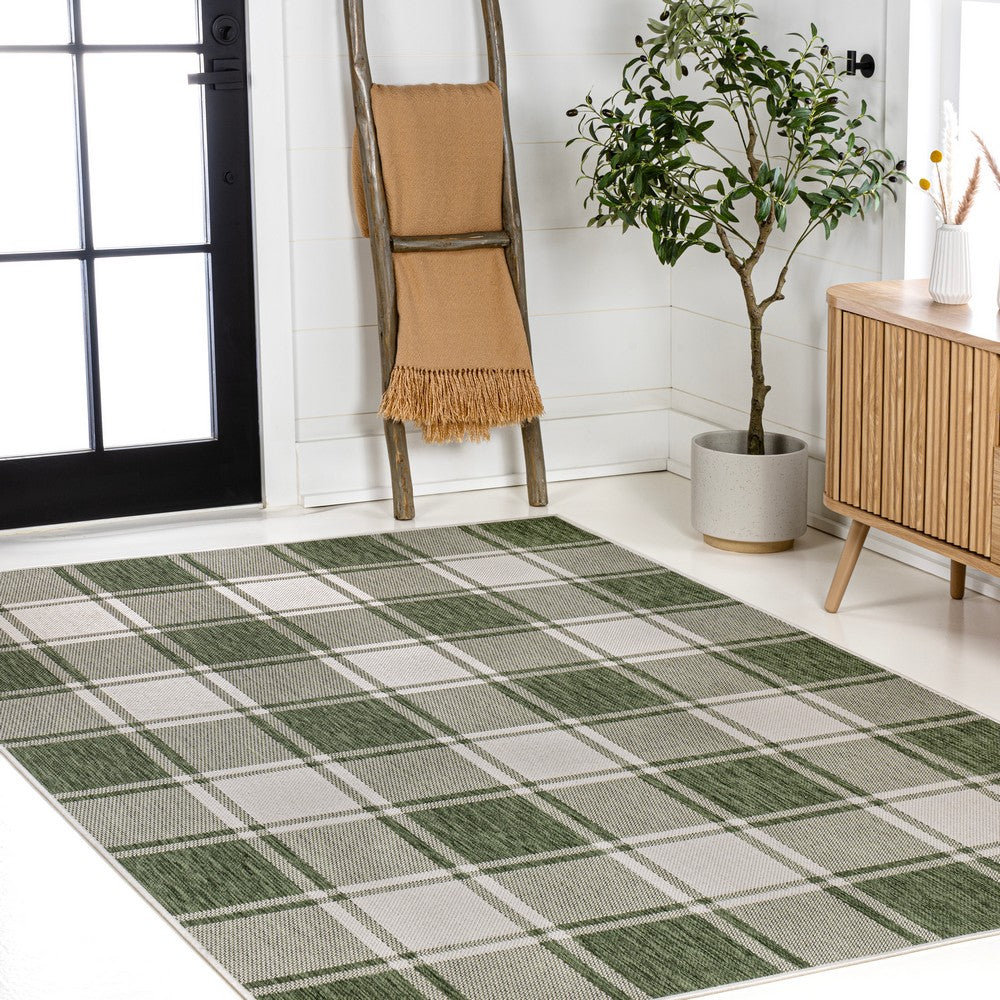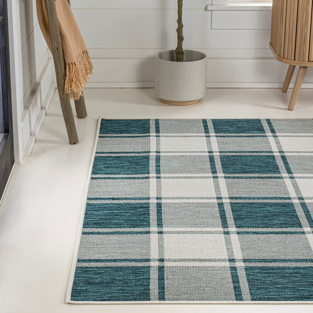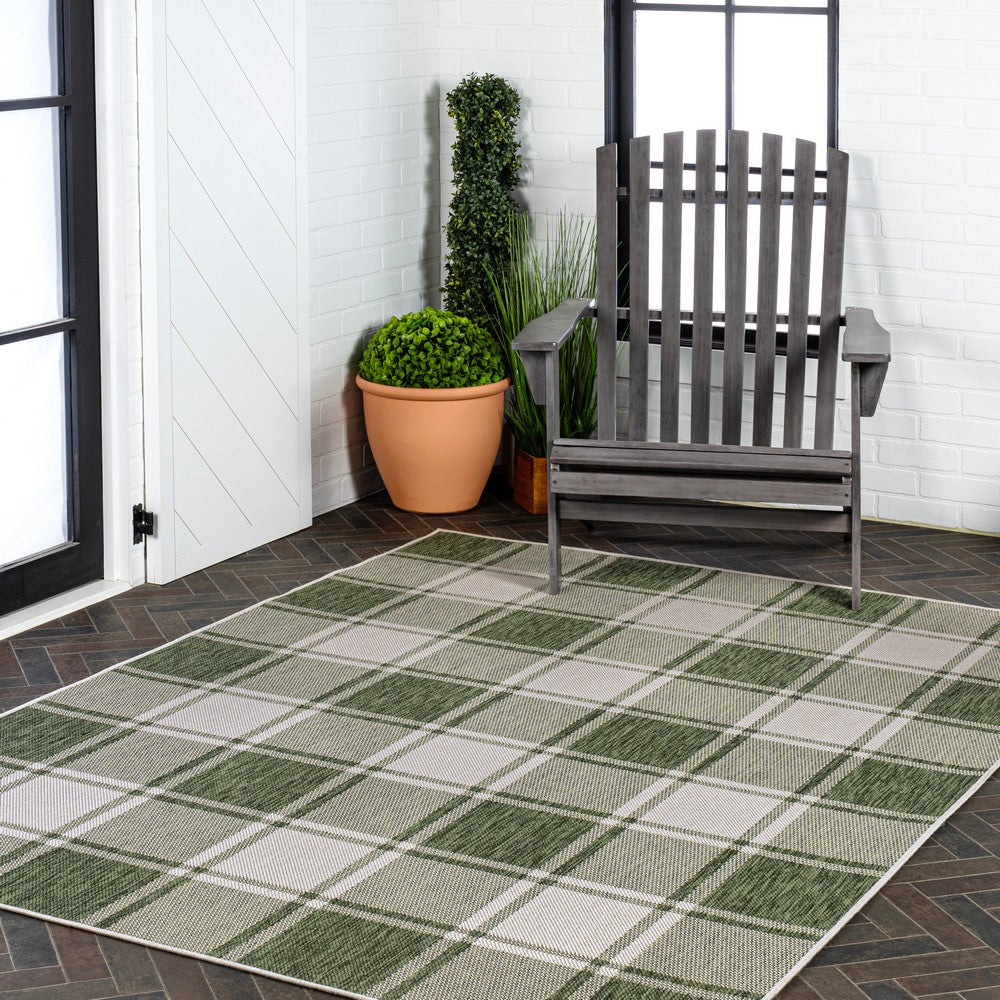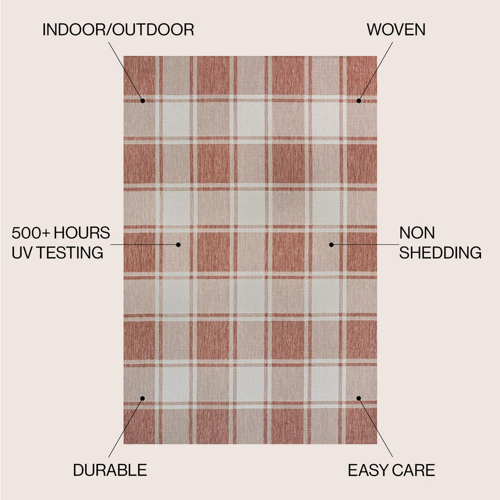 Acrylic Traditional Farmhouse Bold Gingham Indoor/Outdoor Area Rug