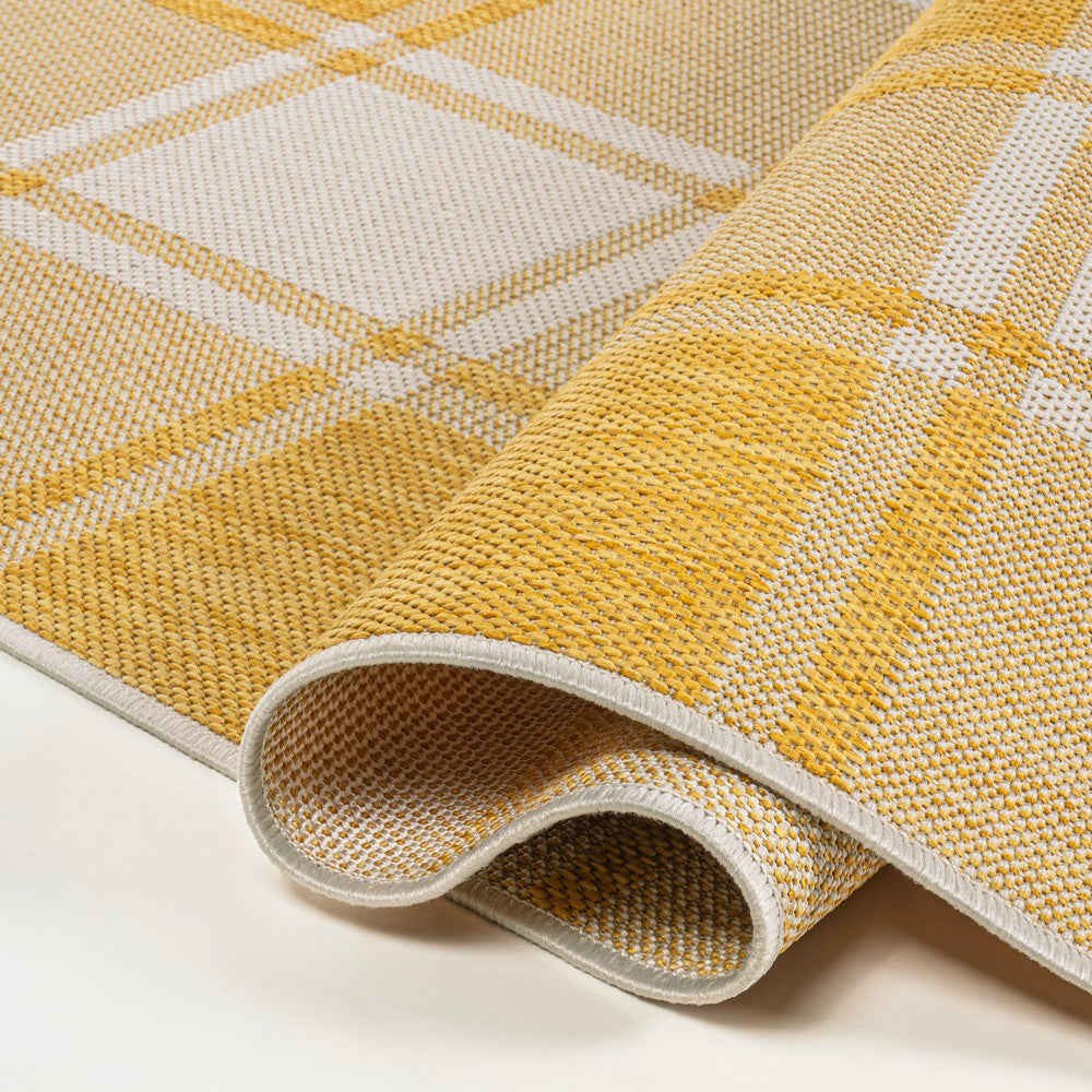 Our updated version of a classic gingham rug is inspired by traditional cottage designs. It's made from durable polypropylene fibers woven into an large scale pattern. Use this easy-care rug outdoors on a porch, or in the bedroom, living room or dining room.