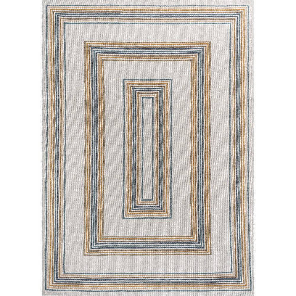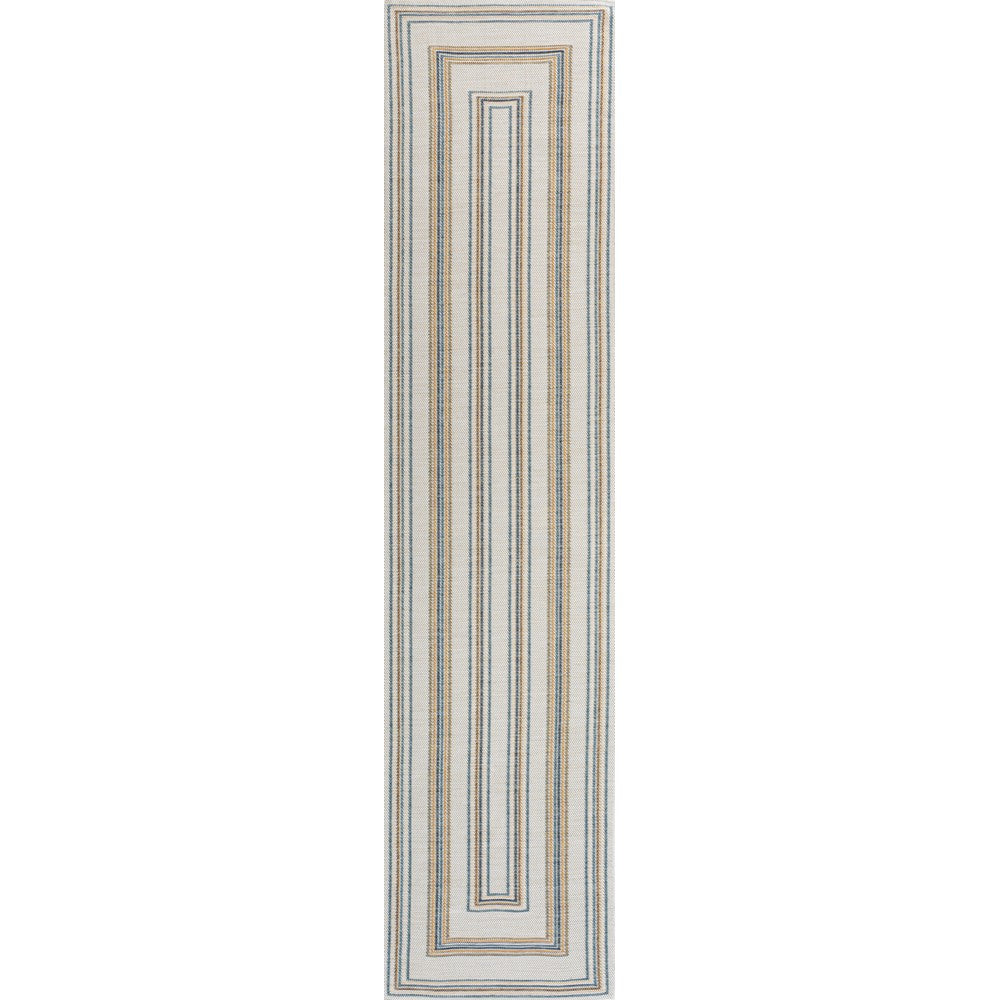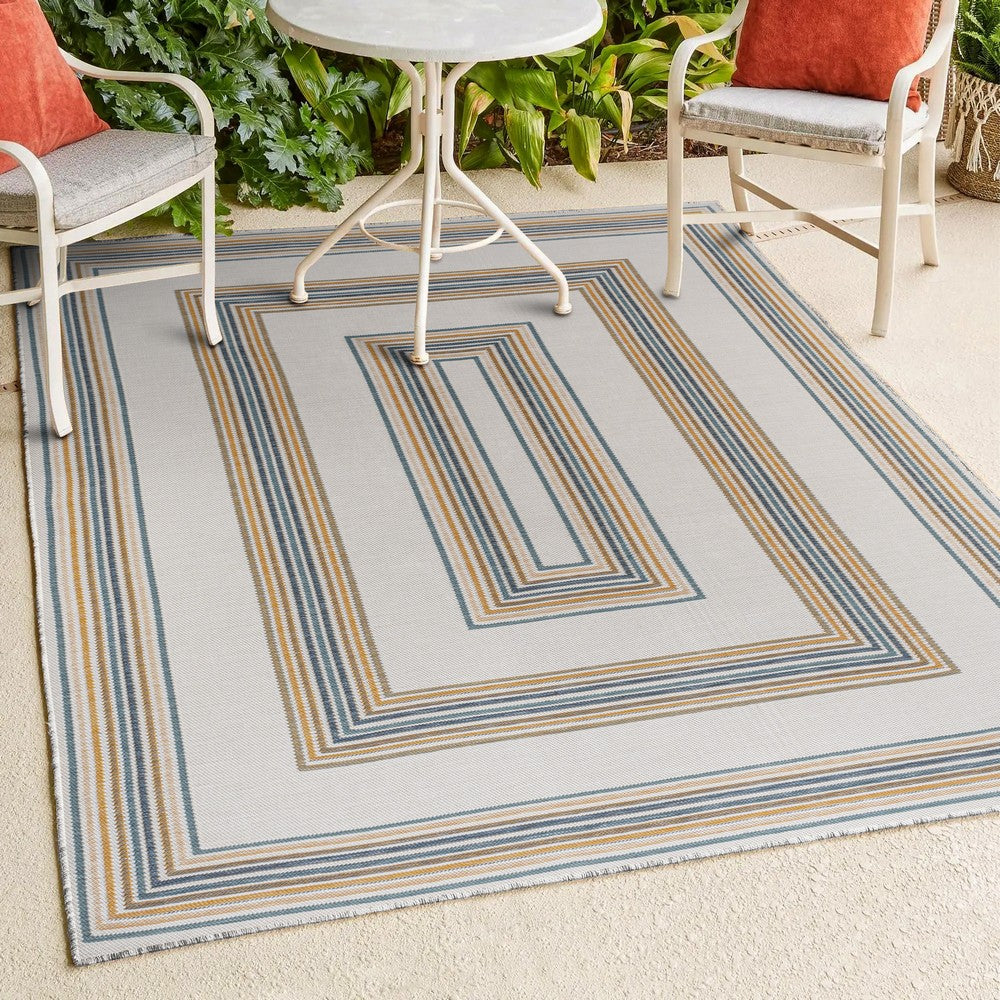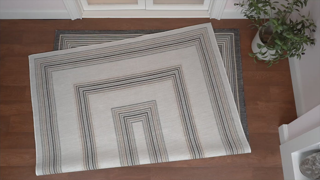 Inspired by nautical stripes, this classic rug features a ticking-style stripe with mitred corners. Mingled threads give this easy-care, reversible rug a coastal vibe. Durable enough for outdoors on a porch, or in the living room, entry, bedroom or dining room.