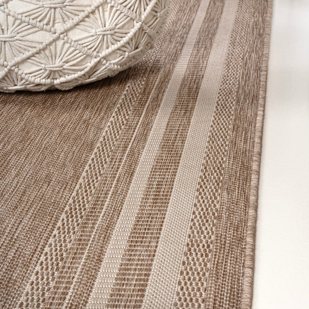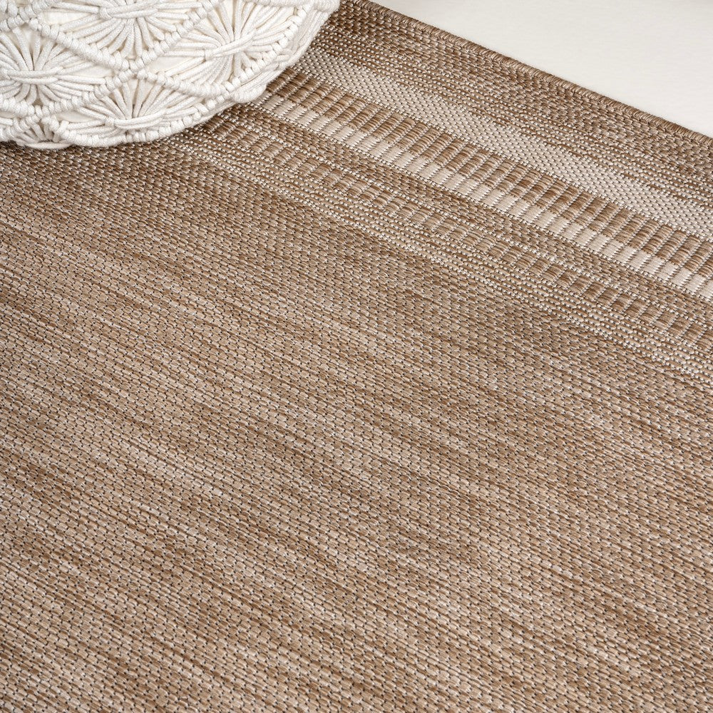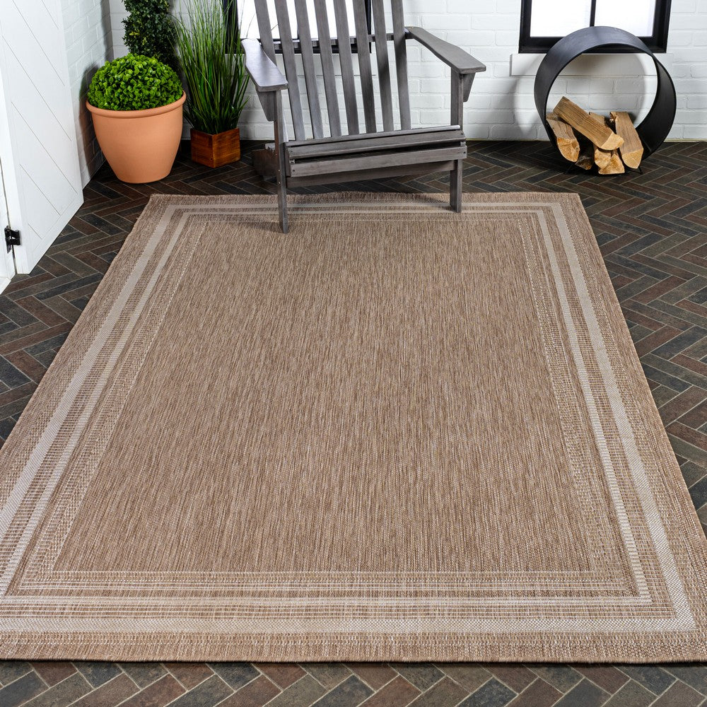Our classic rug has a traditional pinstripe border with a plain center field. It's woven from durable synthetic fibers in a two-tone design. Use this easy-care, family-friendly rug on the porch or deck, or in high traffic spaces like a living room, kids room or entry.