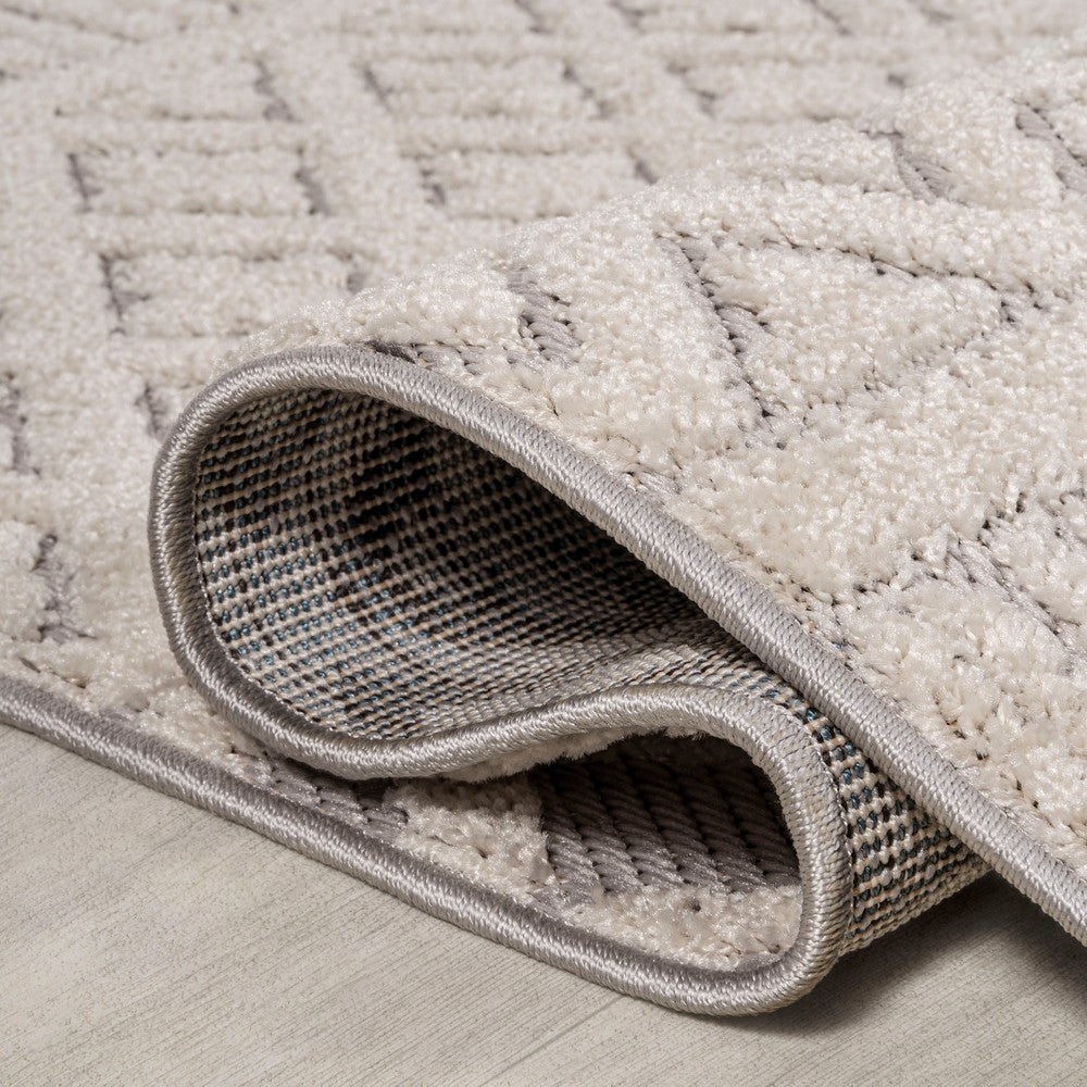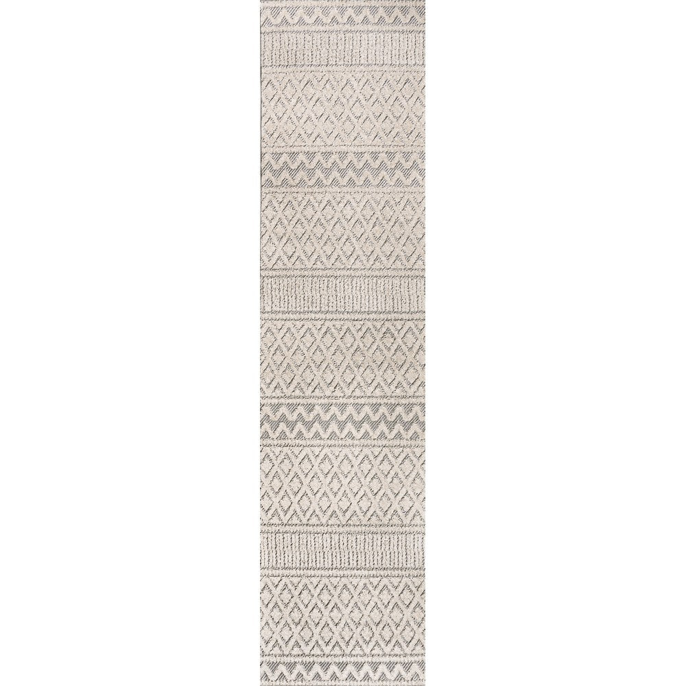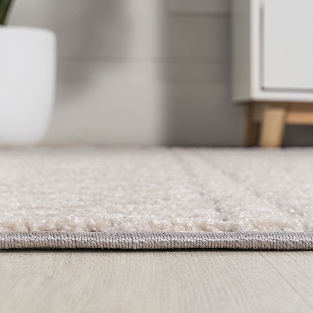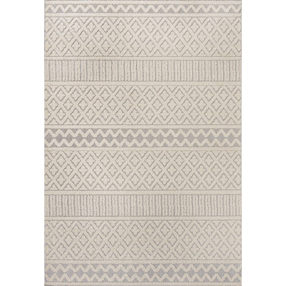 - The gray and cream color scheme is a modern take on neutral geometric rugs