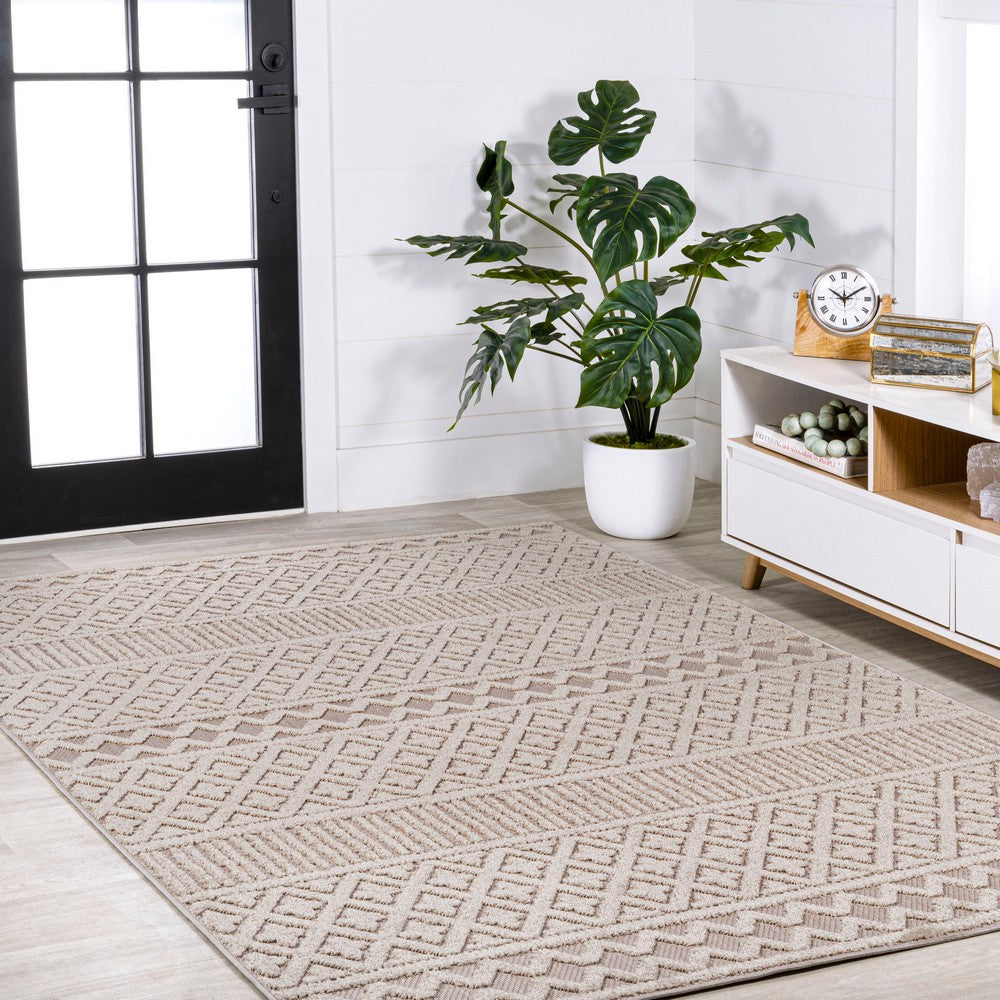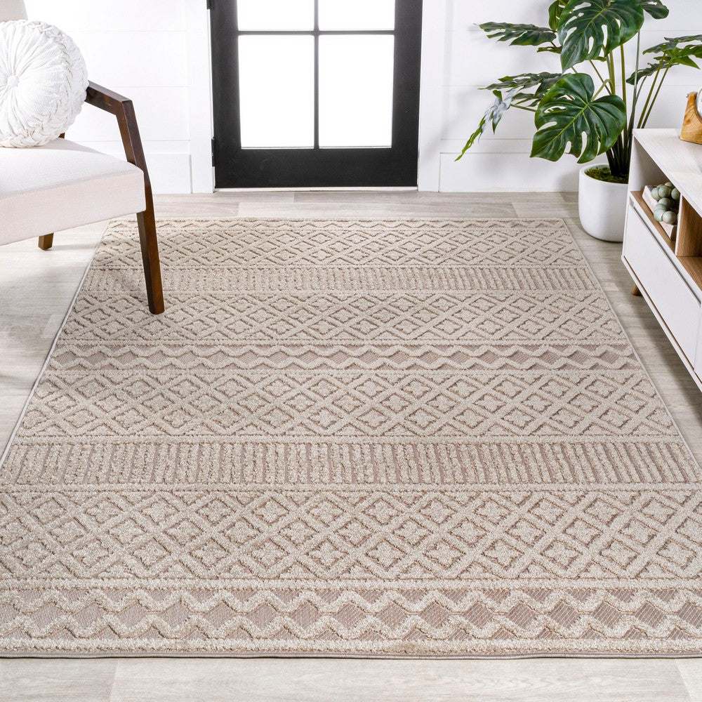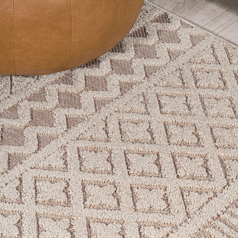chevron High-Low Modern Trellis Geometric Indoor/Outdoor Area Rug