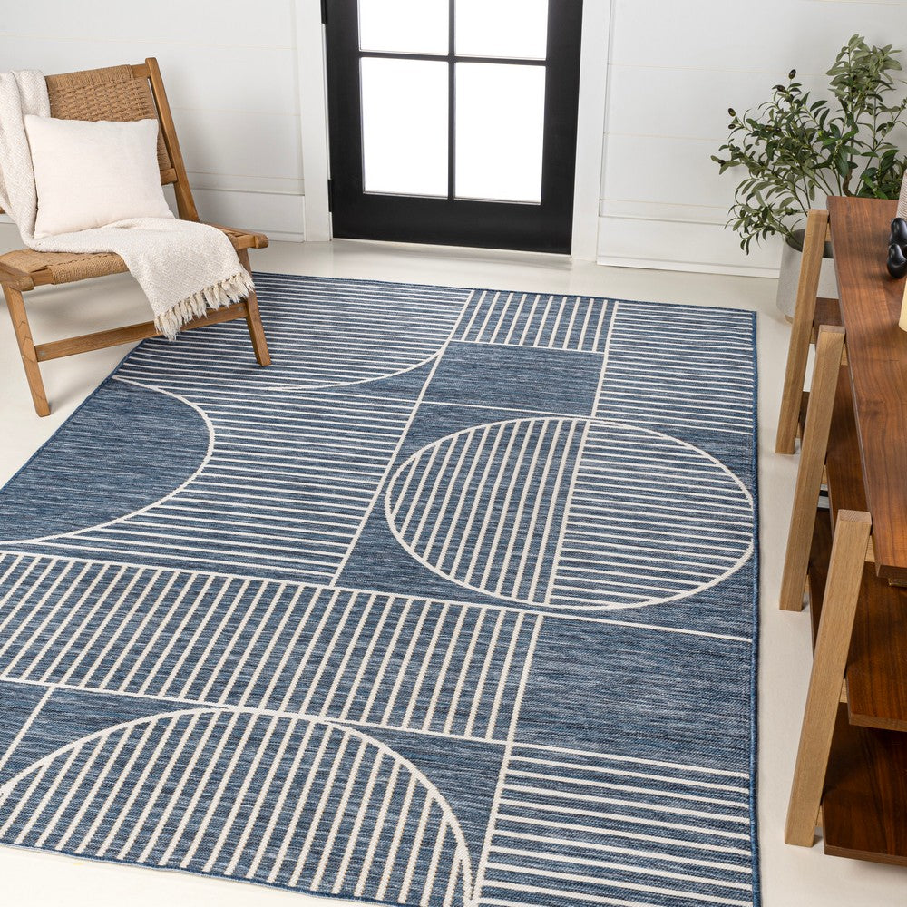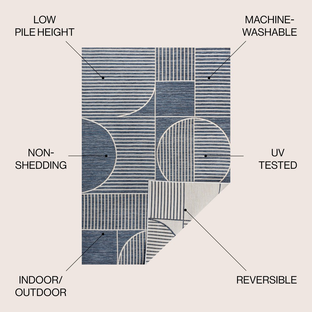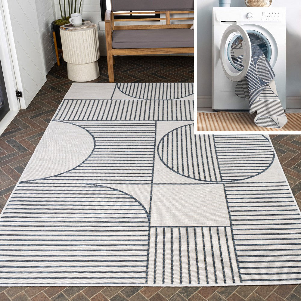 Couristan Mid-Century Modern Geometric Lines Reversible Machine-Washable Indoor/Outdoor Area Rug