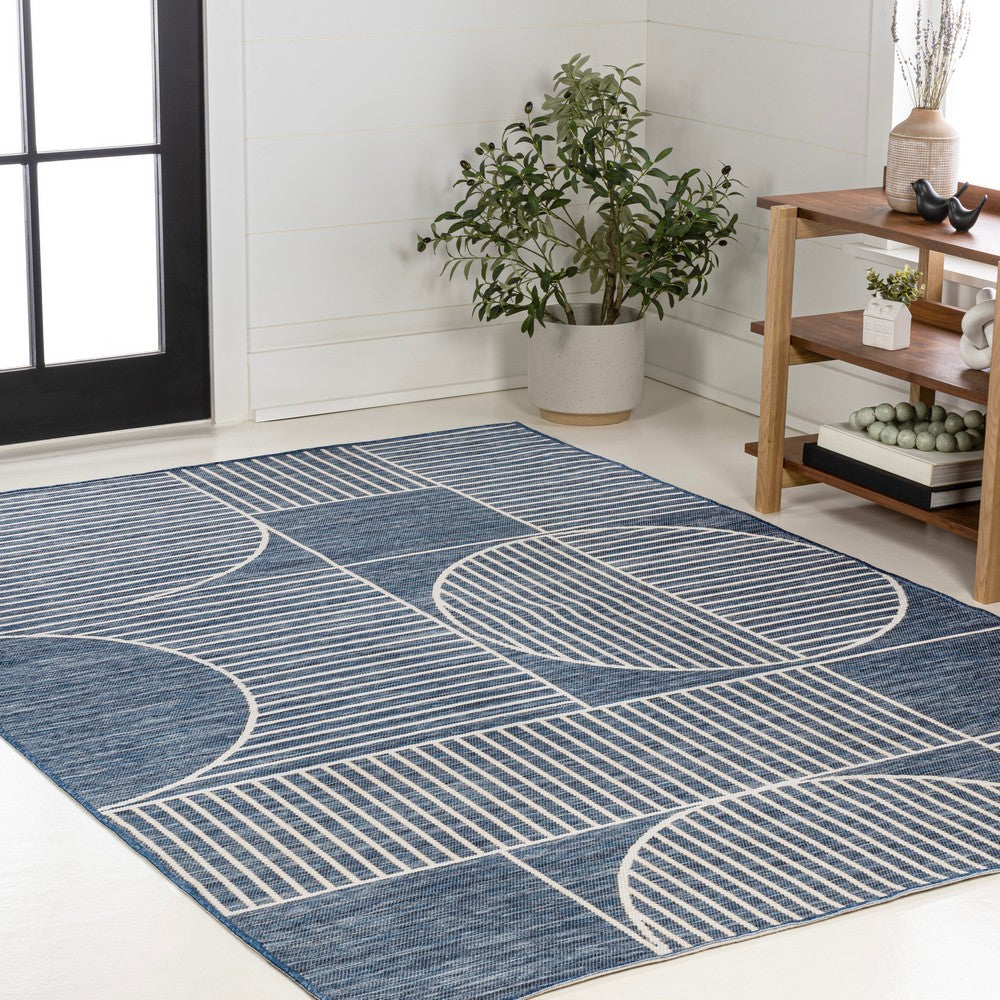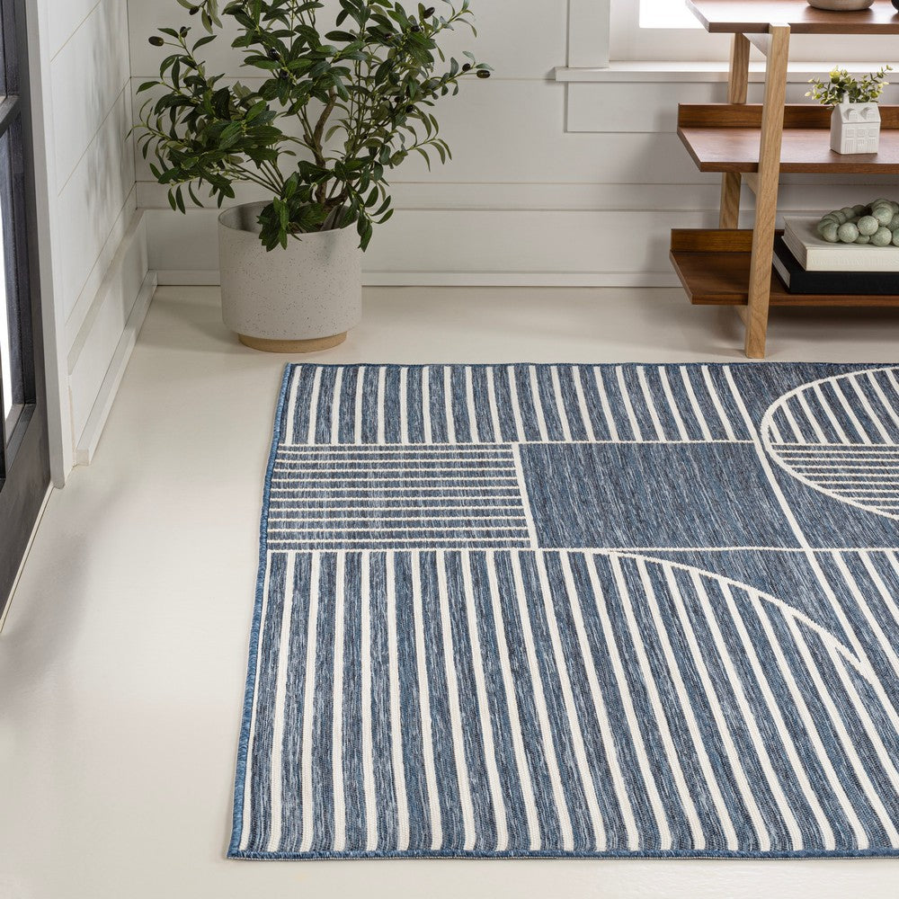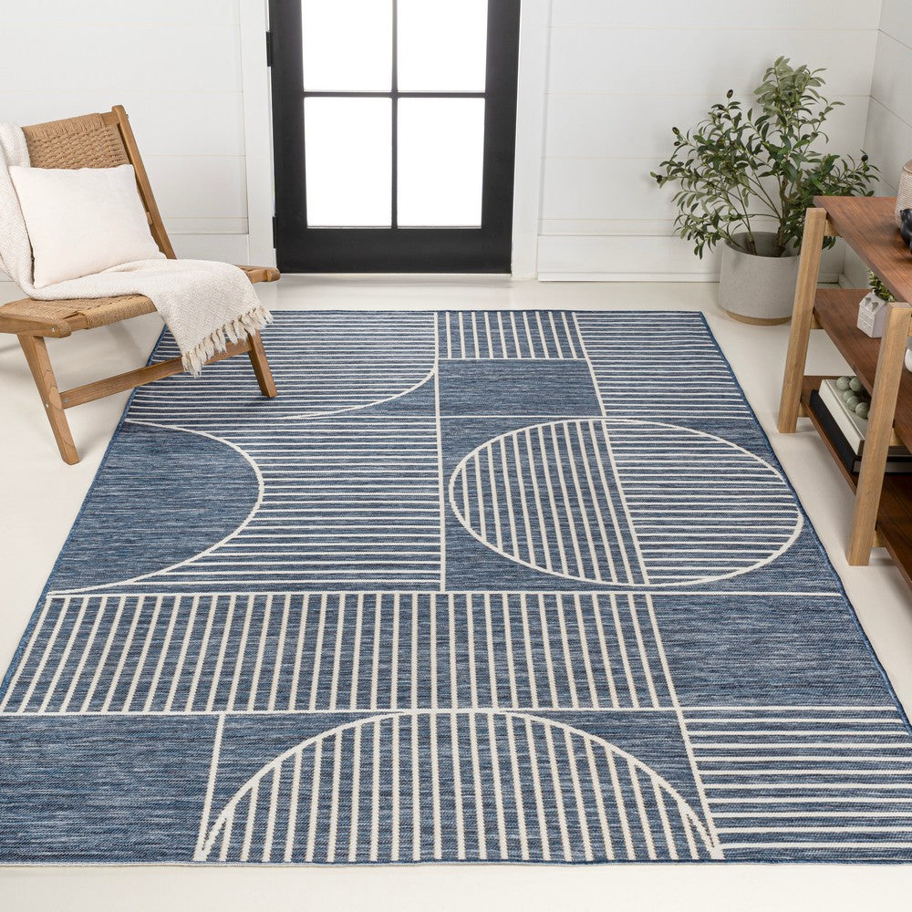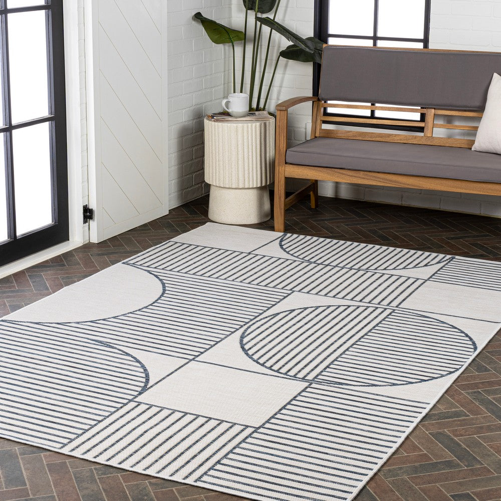 Couristan Mid-Century Modern Geometric Lines Reversible Machine-Washable Indoor/Outdoor Area Rug
