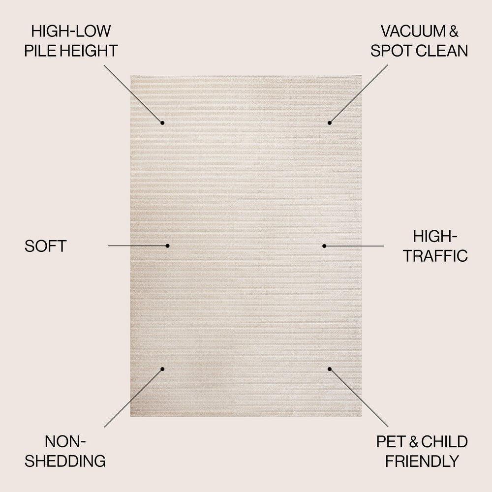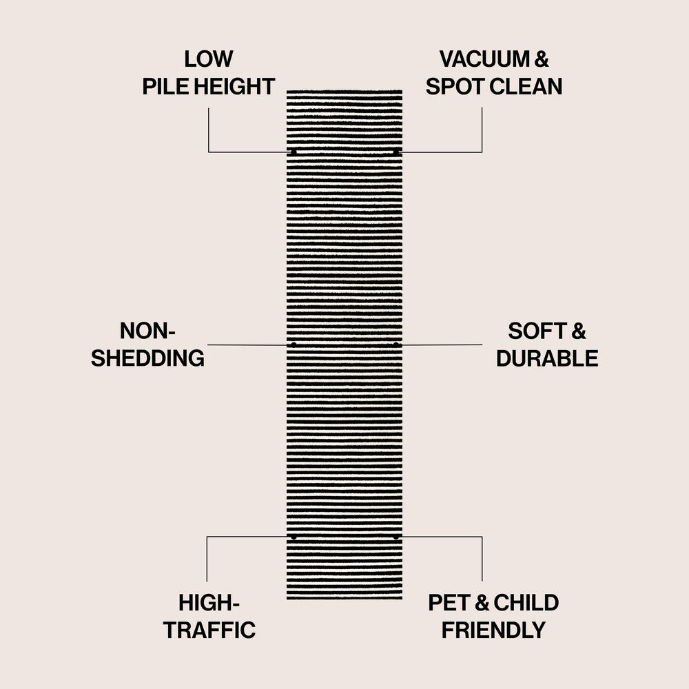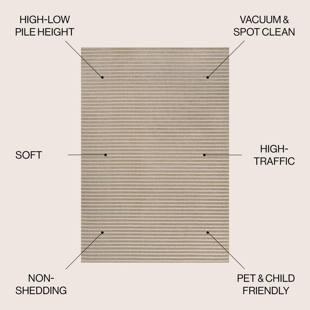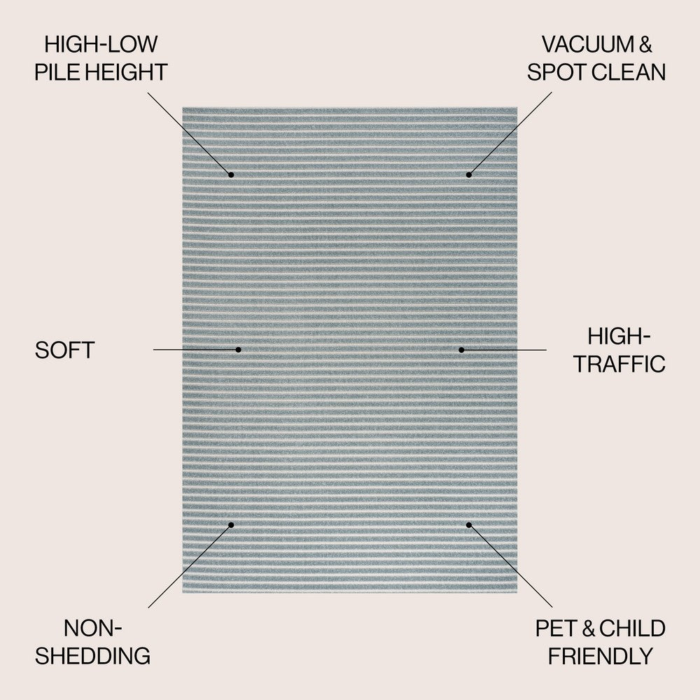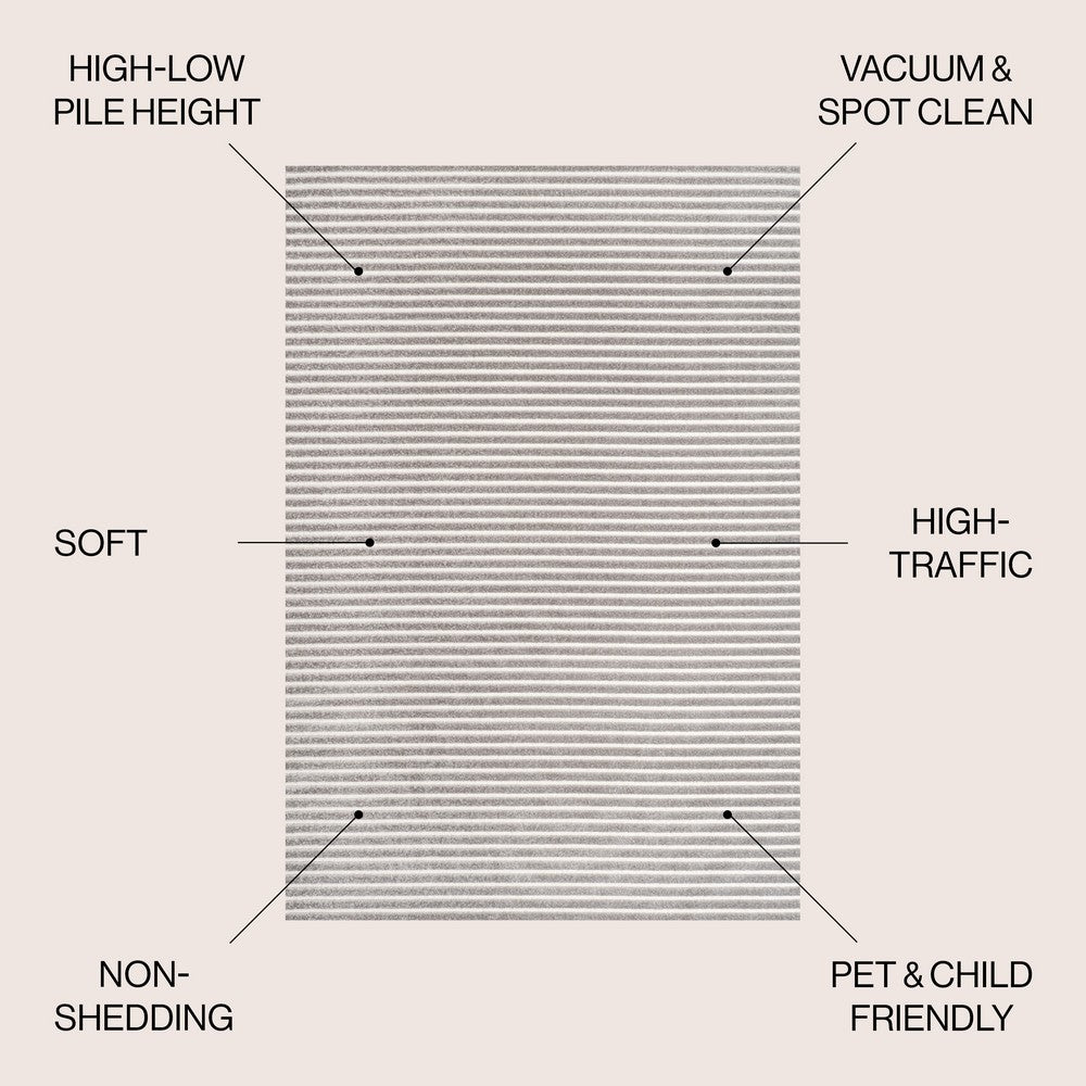 Clean and crisp, the minimalist stripes of our Scandi-inspired rug create a simple backdrop for modern interiors. The two-tone color palette is a low-key addition to your home in a high-low pile that accentuates the pattern. Use this easy-care, family-friendly rug on the porch or deck, or in high traffic spaces like a living room, dining room or entry.