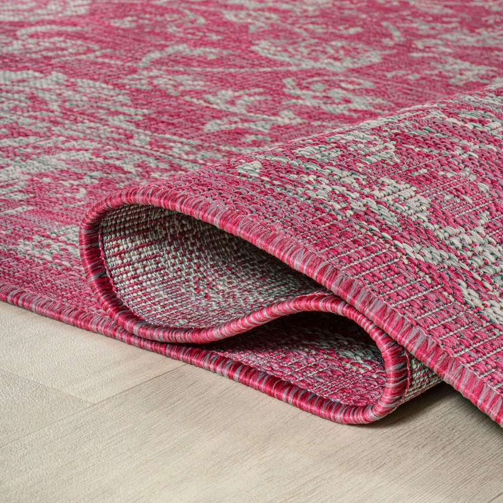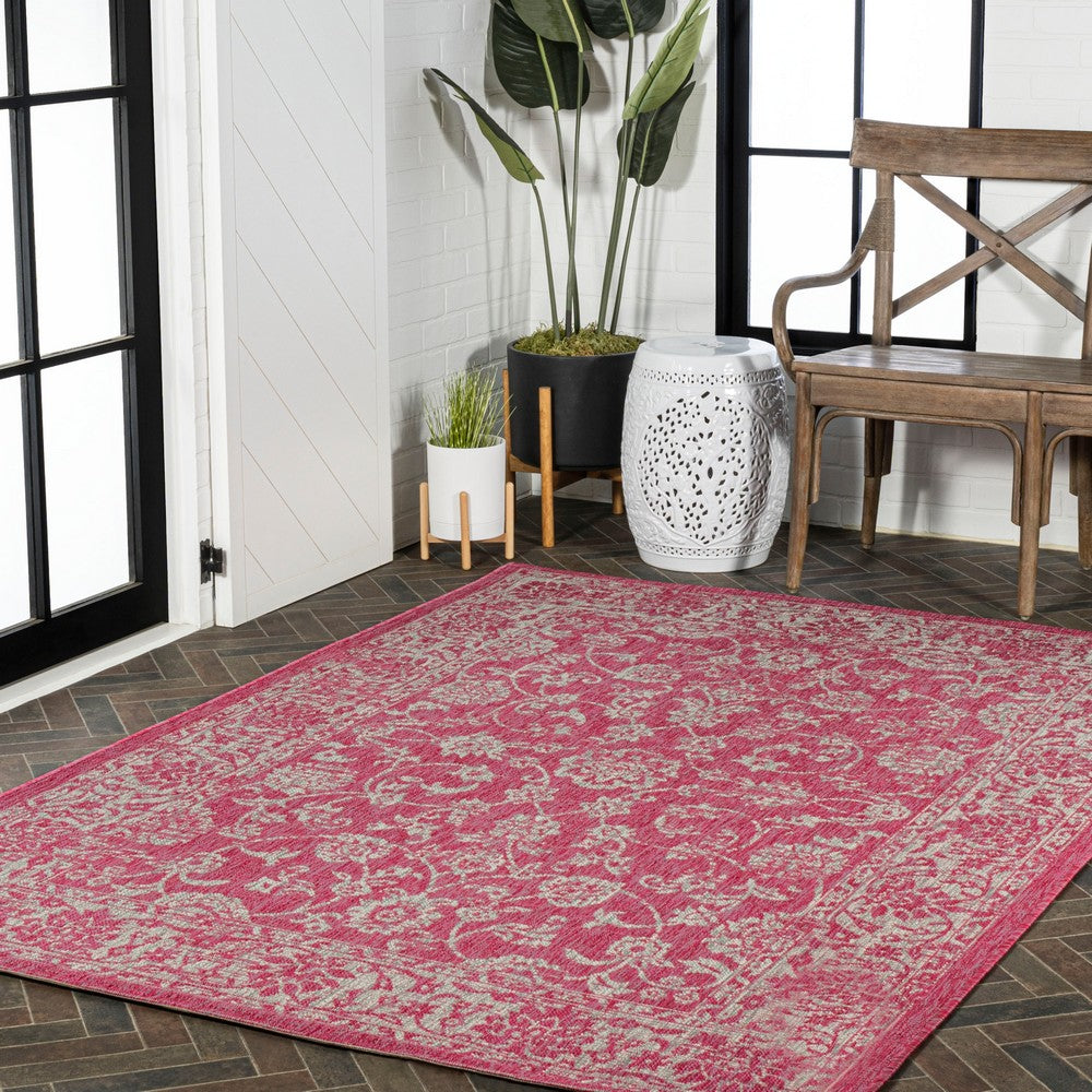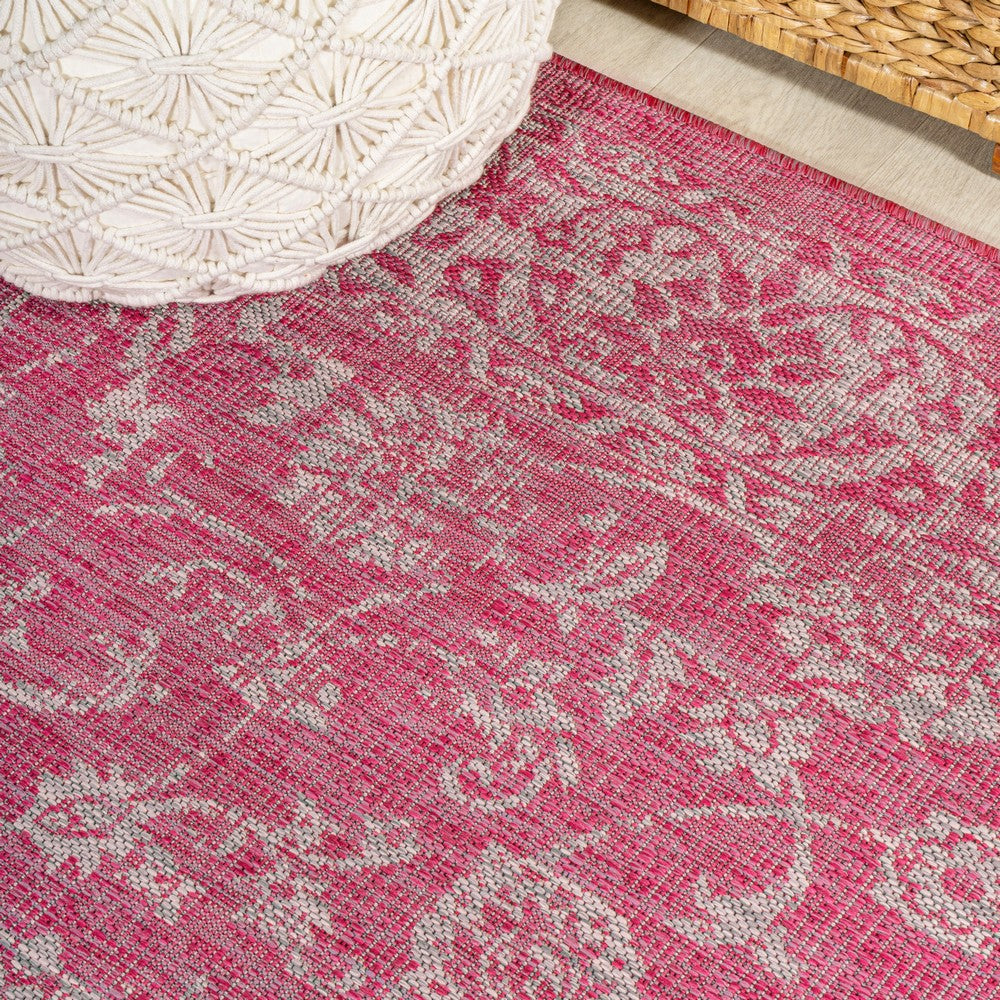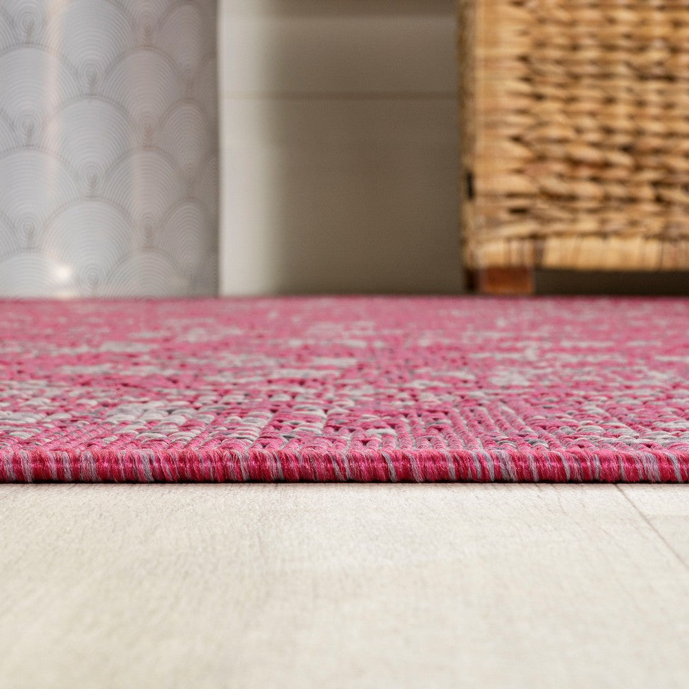 With a vine-and-border design inspired by Persian rugs, our Boho-chic rug adds eclectic style to an outdoor porch or patio. Varied tones of red and rust mingled with a taupe pattern give this rug a hand-woven, vintage vibe. The flatweave design is great for high-traffic spaces indoors too.