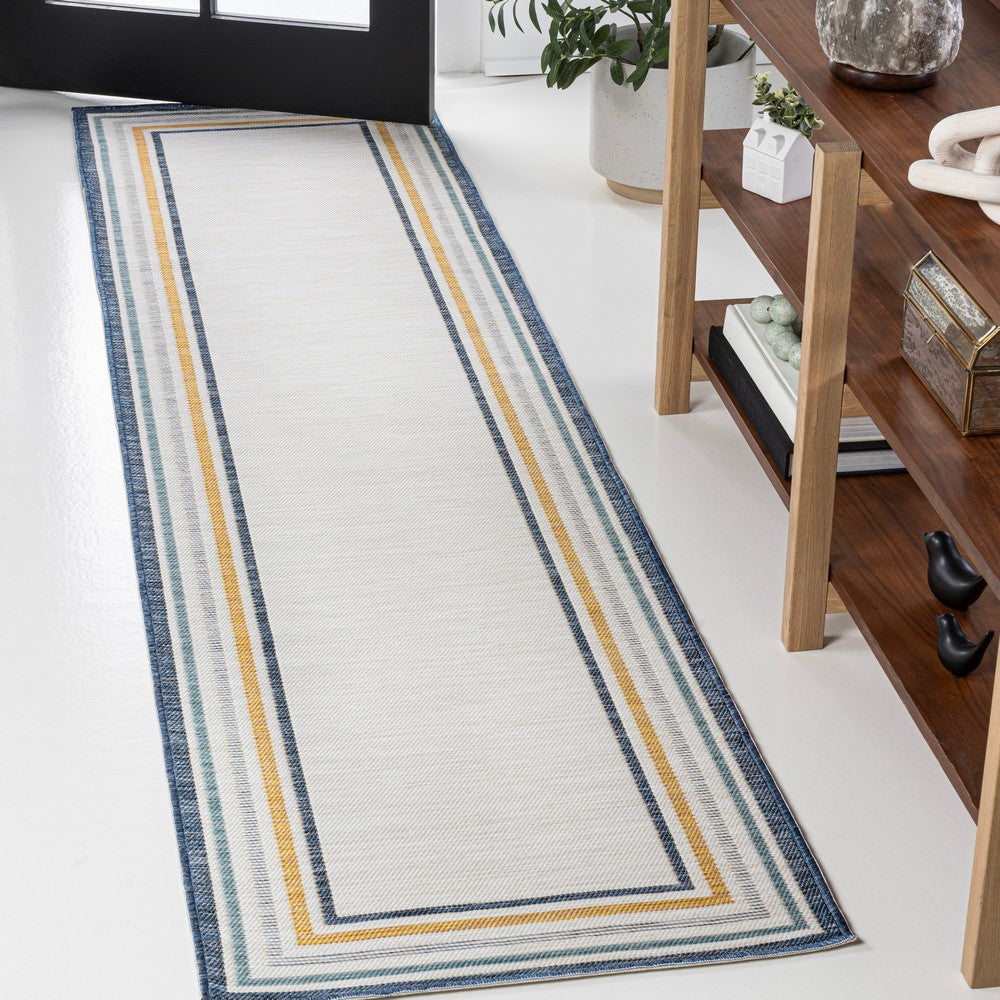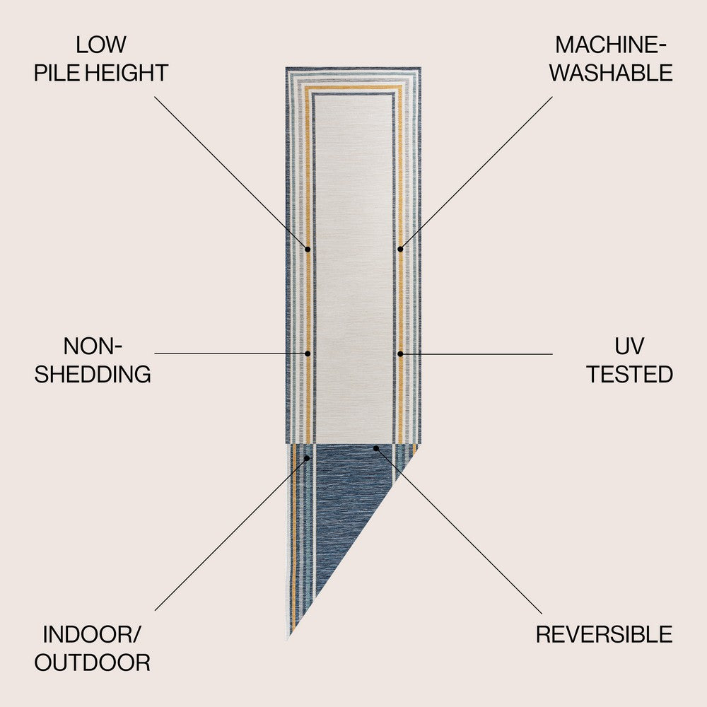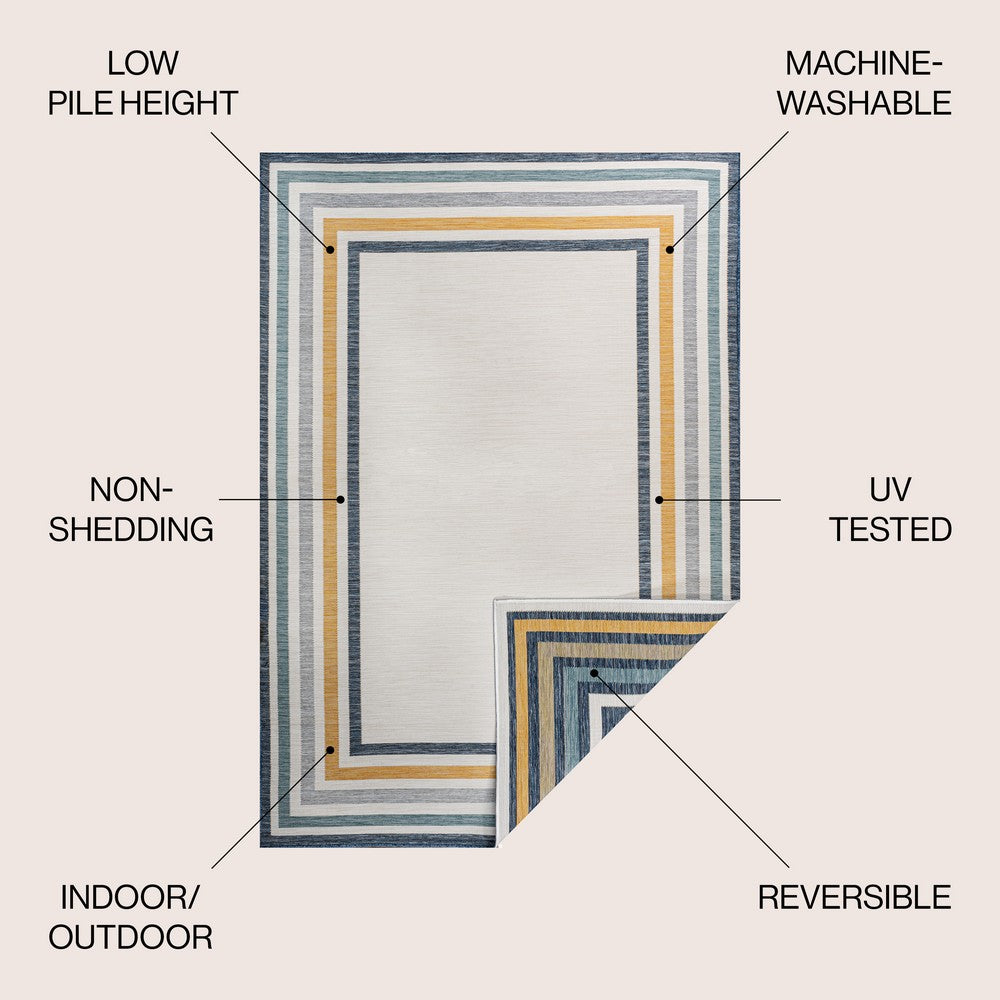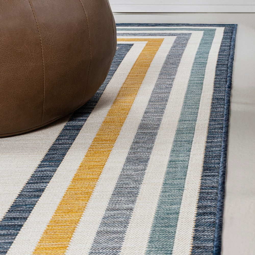 Homcomodar Classic Coastal Mitred Stripe Reversible Machine-Washable Indoor/Outdoor Area Rug