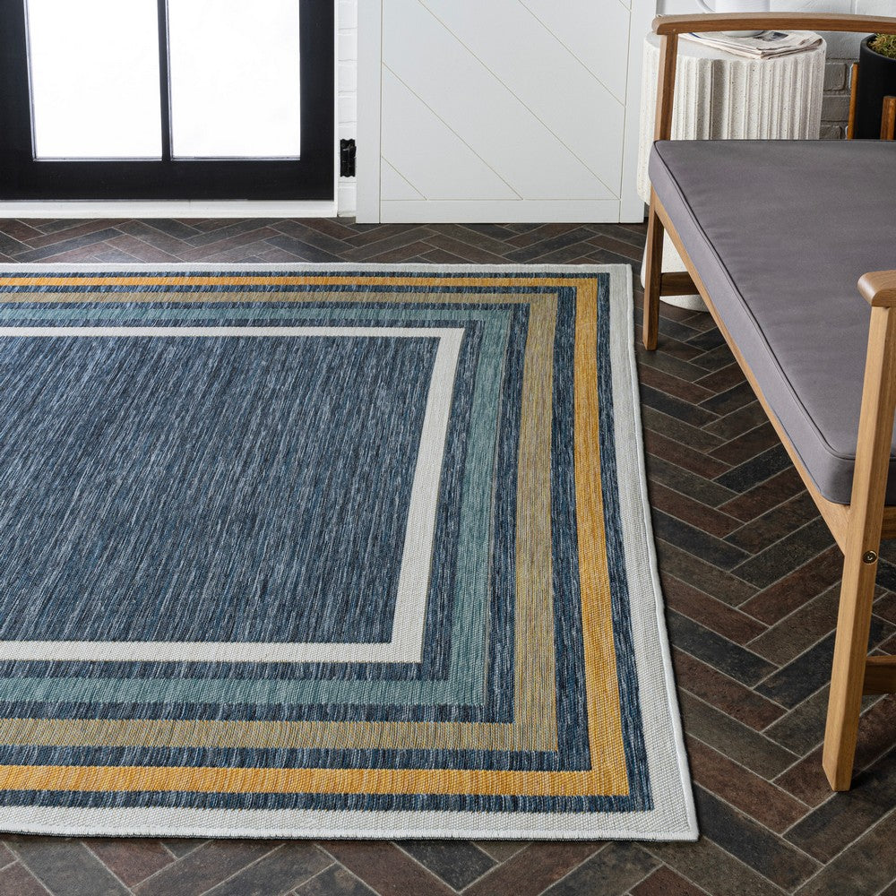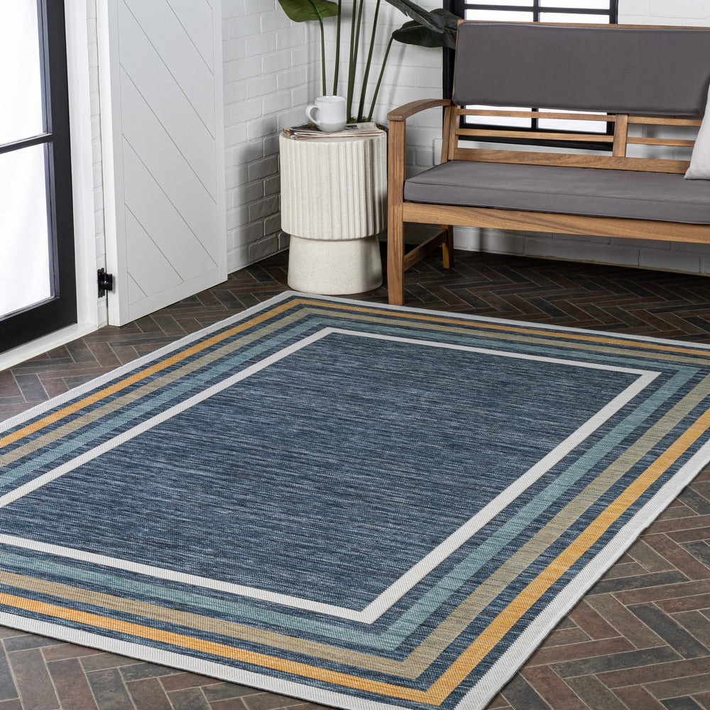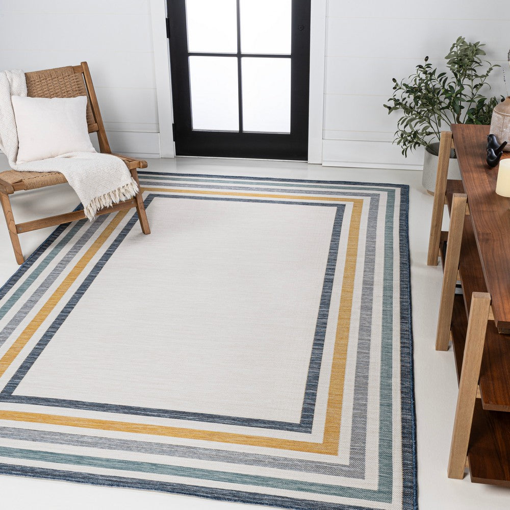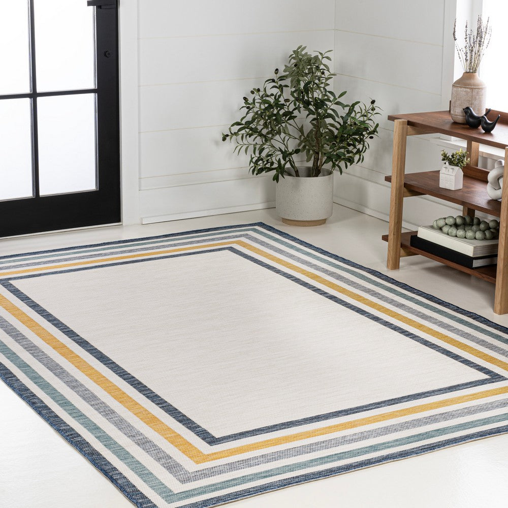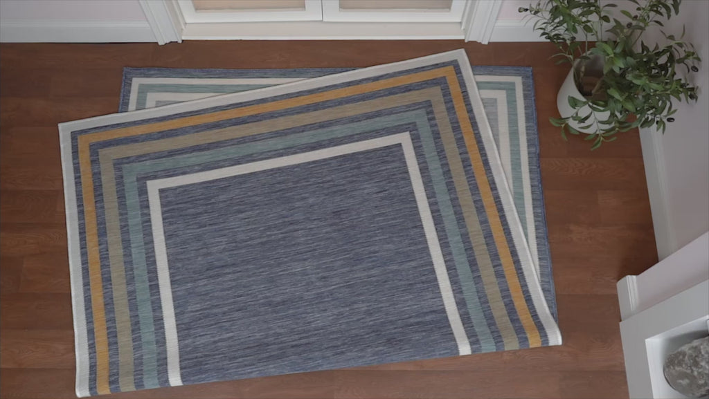 Homcomodar Classic Coastal Mitred Stripe Reversible Machine-Washable Indoor/Outdoor Area Rug