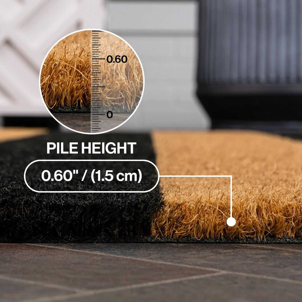 Our casual coir doormat is a classic design that stops dirt and sand right at the door. Made from durable natural coconut fibers, it's backed with PVC for added stability. Coir is best used in covered locations such as a porch, or indoors.