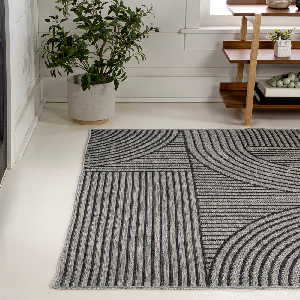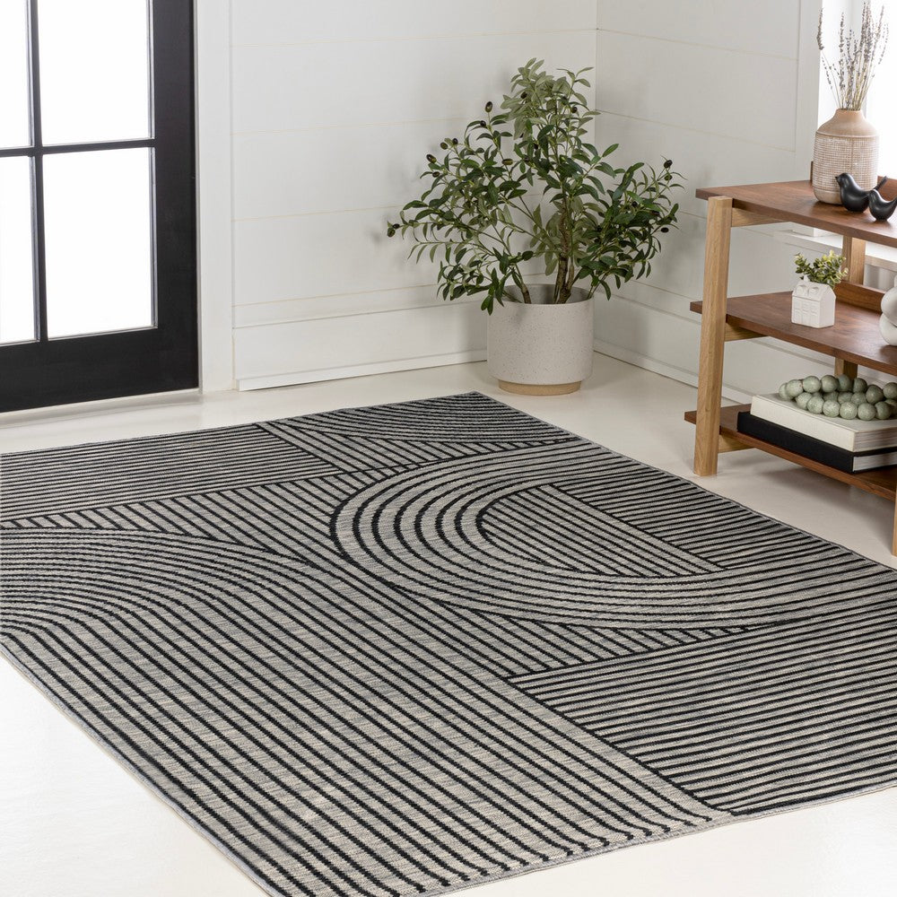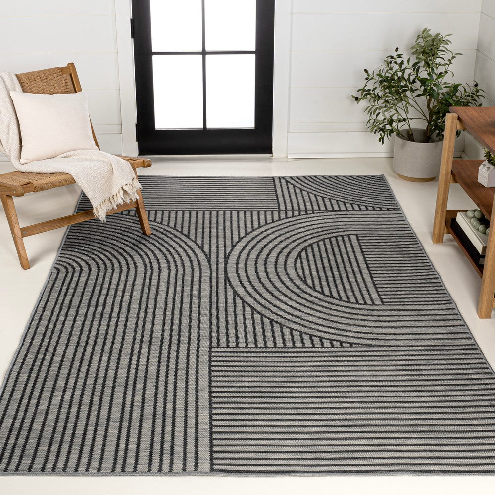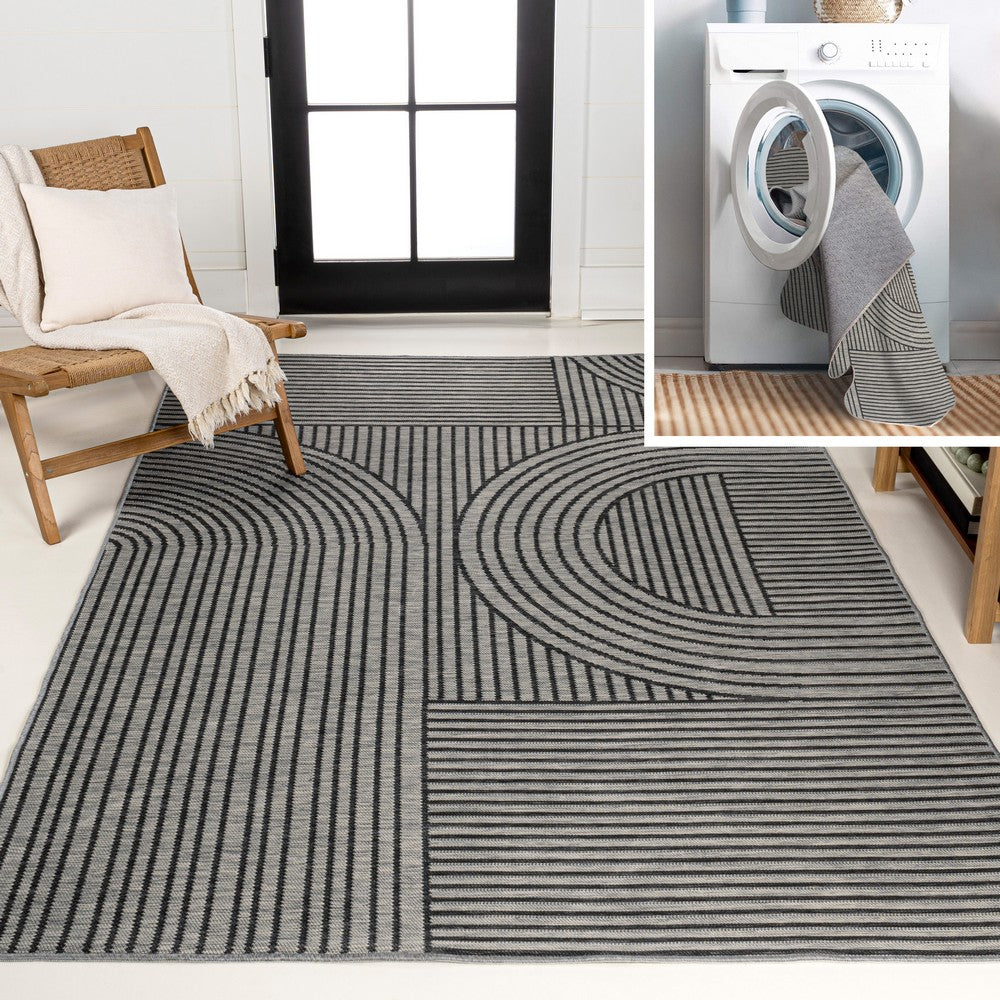 Leah Mid-Century Modern Arch Stripe Reversible Machine-Washable Indoor/Outdoor Area Rug