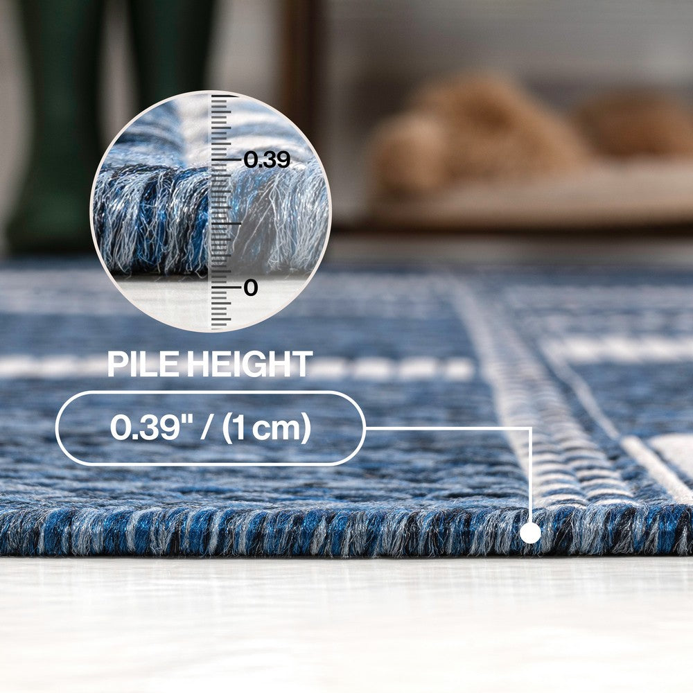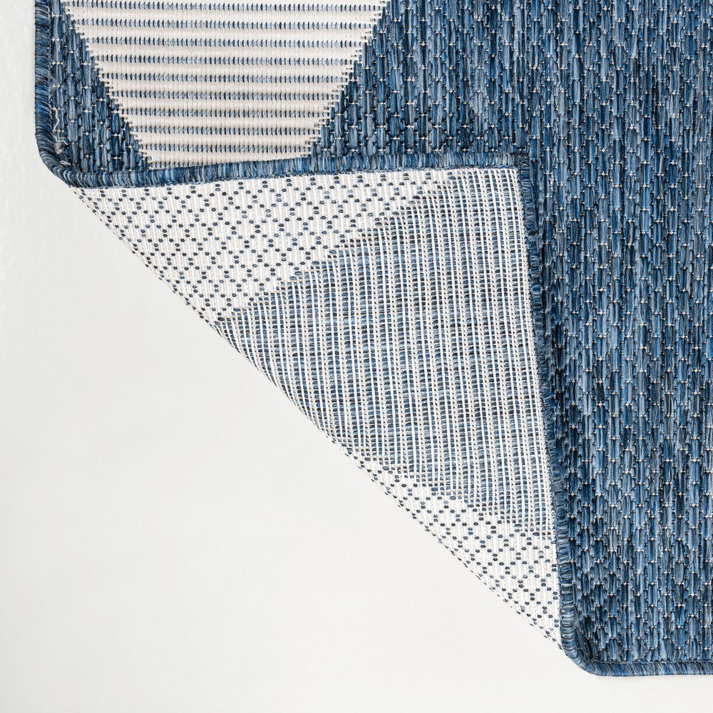 This rug's modern geometric pattern is inspired by Art Deco. It's made from durable synthetic fibers woven into a bold design. Use this stylish rug outdoors, or in the bedroom, living room or dining room.