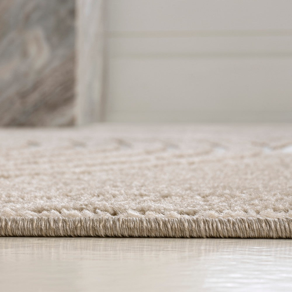 The modern geometric pattern of this rug is inspired by minimalist Scandinavian designs. Soft polypropylene fibers are woven into a double-arch striped pattern, in a high-low pile that accentuates the pattern. This mid-century chic rug is a neutral option for the bedroom, living room or dining room. Use this easy-care, family-friendly rug on the porch or deck, or in high traffic spaces like a living room, dining room or entry.