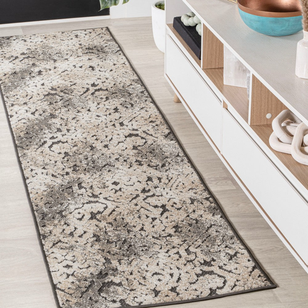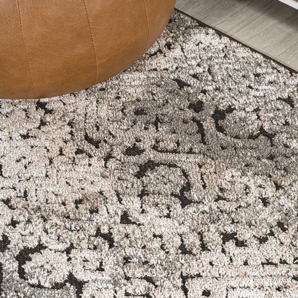 This unique rug combines shabby chic damask with modern glam for a distressed and overdyed look. The busy pattern is a family-friendly addition to the living room, dining room, bedroom, porch or patio. Made from pet-friendly synthetic fibers, this rug is easy to clean.