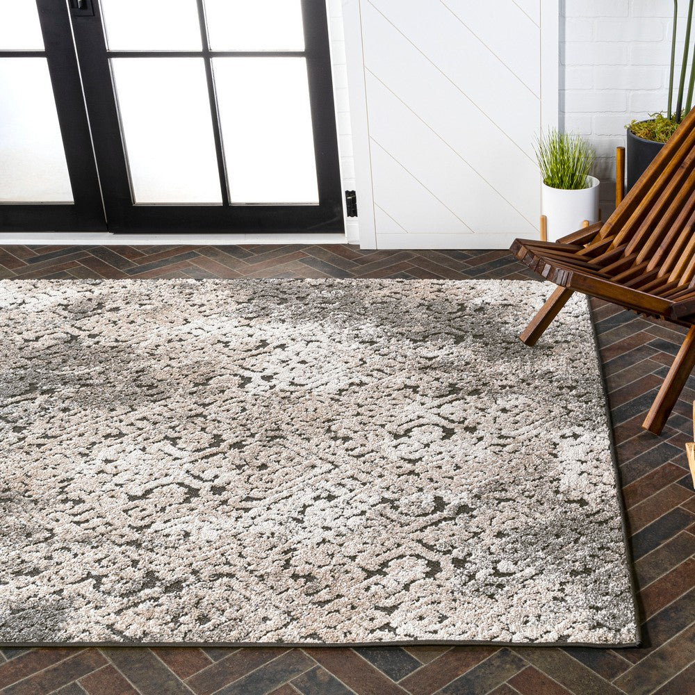 Tannisby High-Low Shabby Damask Indoor/Outdoor Area Rug