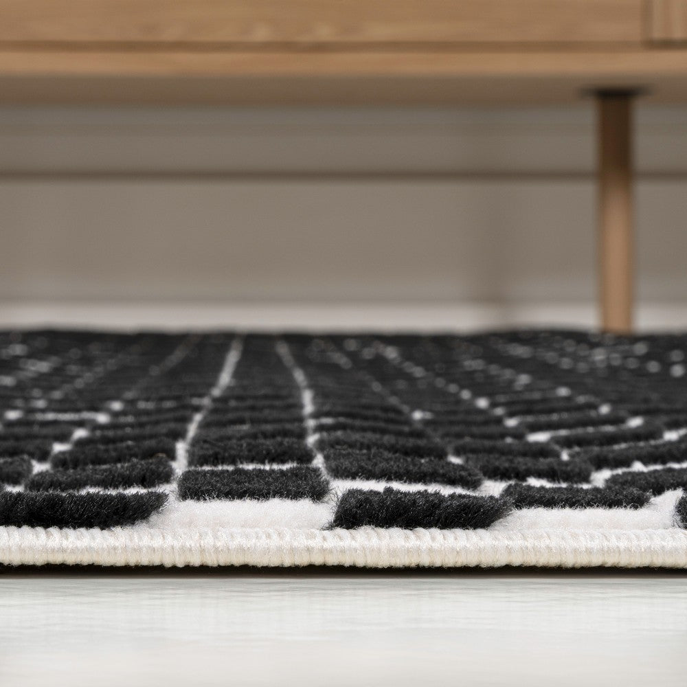 Tartan High-Low Modern Minimalist Checkered Monotone Indoor/Outdoor Area Rug