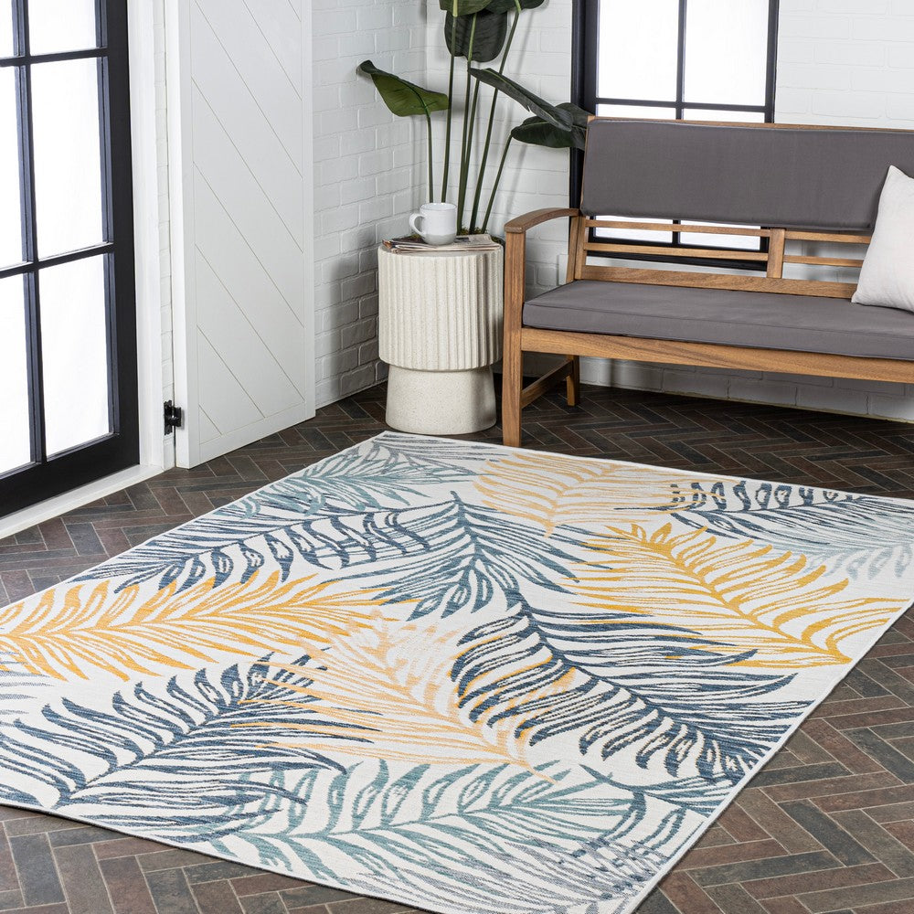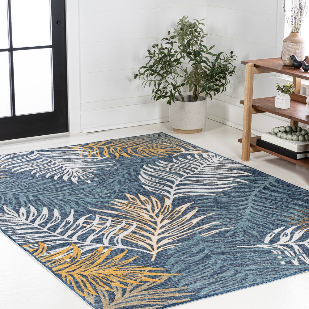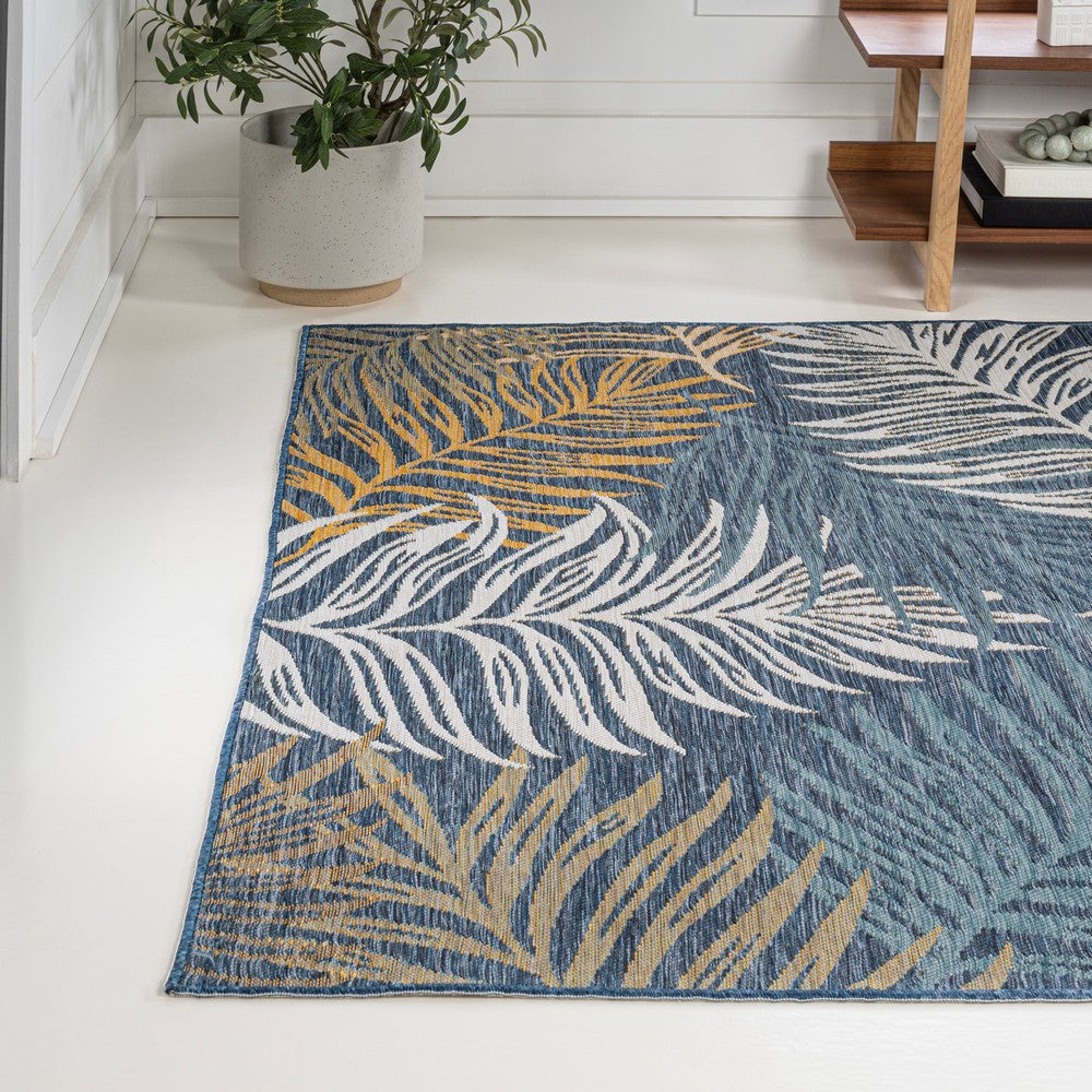 Veranda Coastal Casual Palm Frond Reversible Machine-Washable Indoor/Outdoor Area Rug