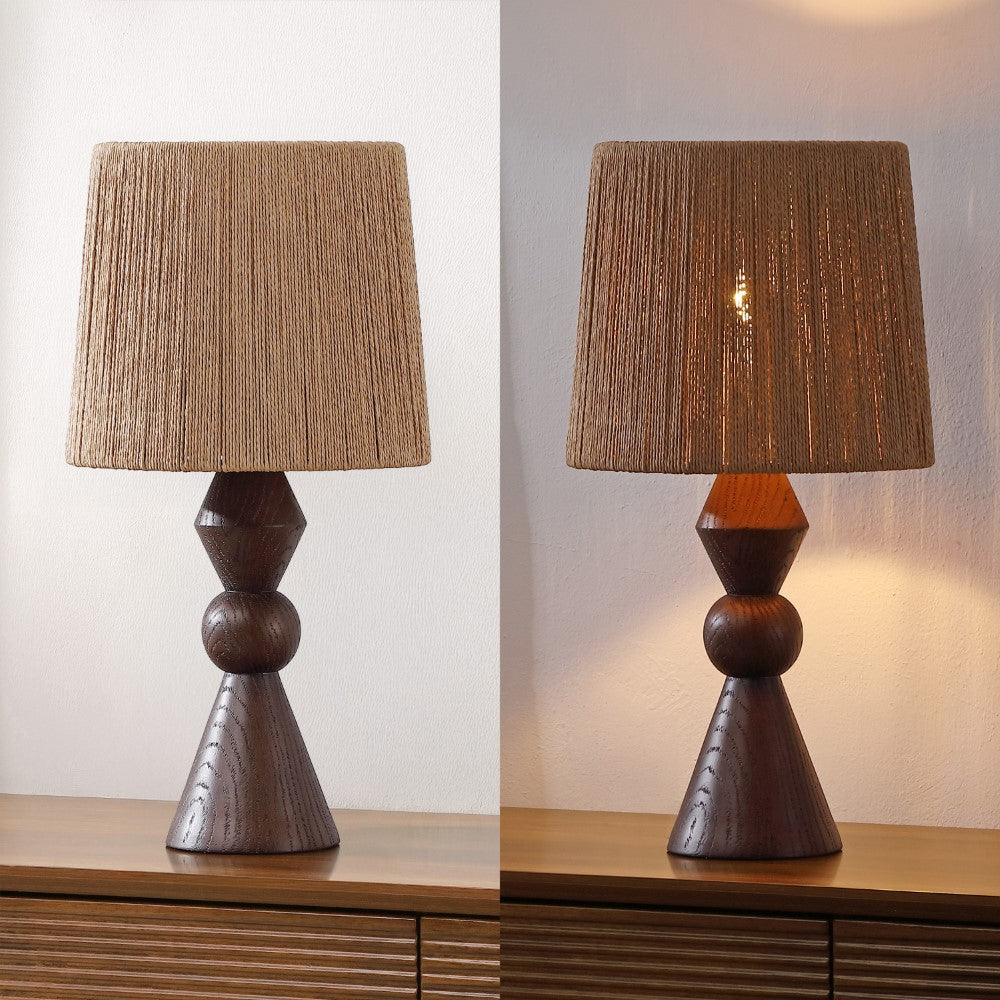 This sculptural table lamp blends organic texture with modern geometry for an eye-catching accent. Its resin base showcases stacked shapes that evoke handcrafted artistry, paired with a paper shade that softens light beautifully. A statement piece that enhances living rooms, bedrooms, or entryways with warm sophistication and timeless, natural-inspired appeal for everyday interiors.