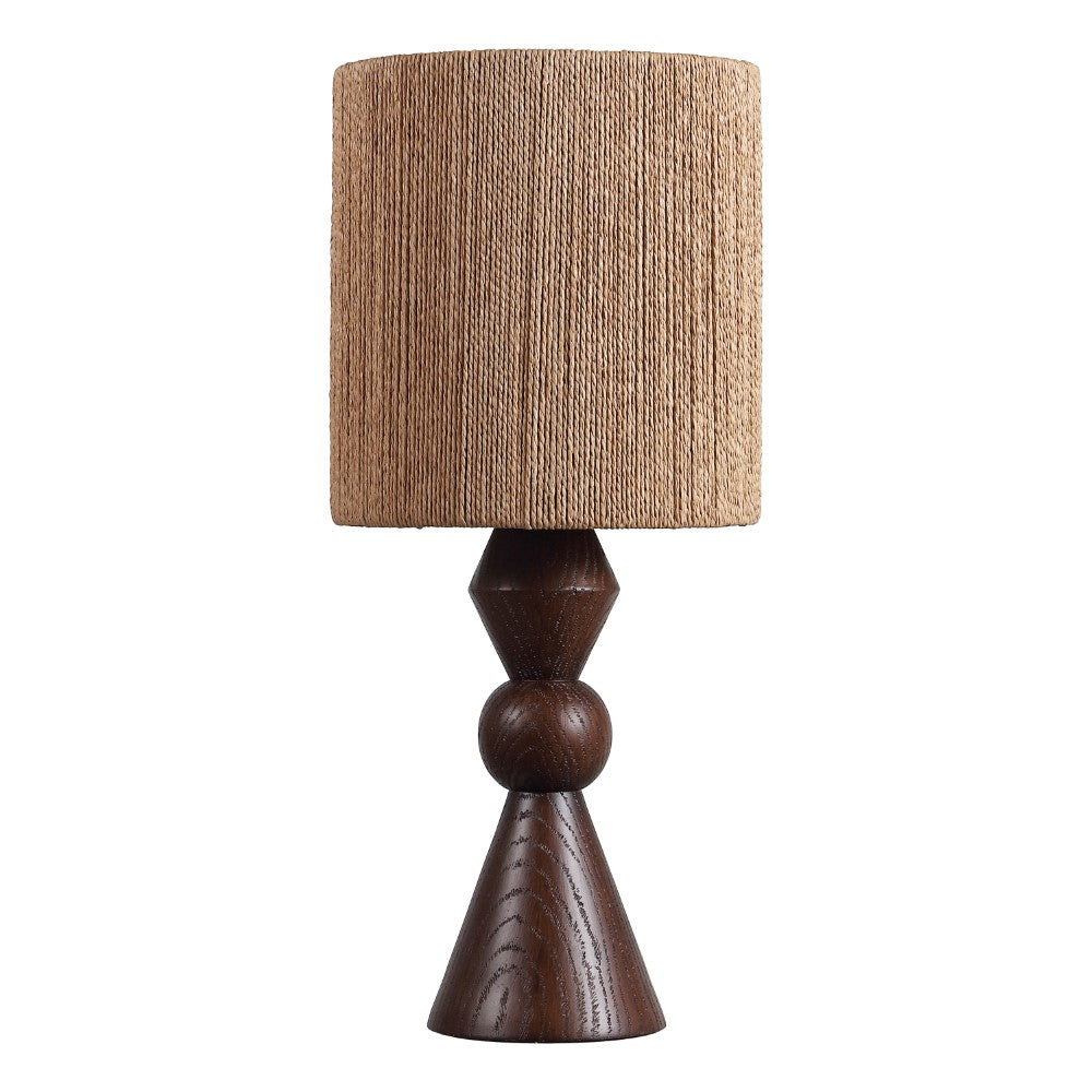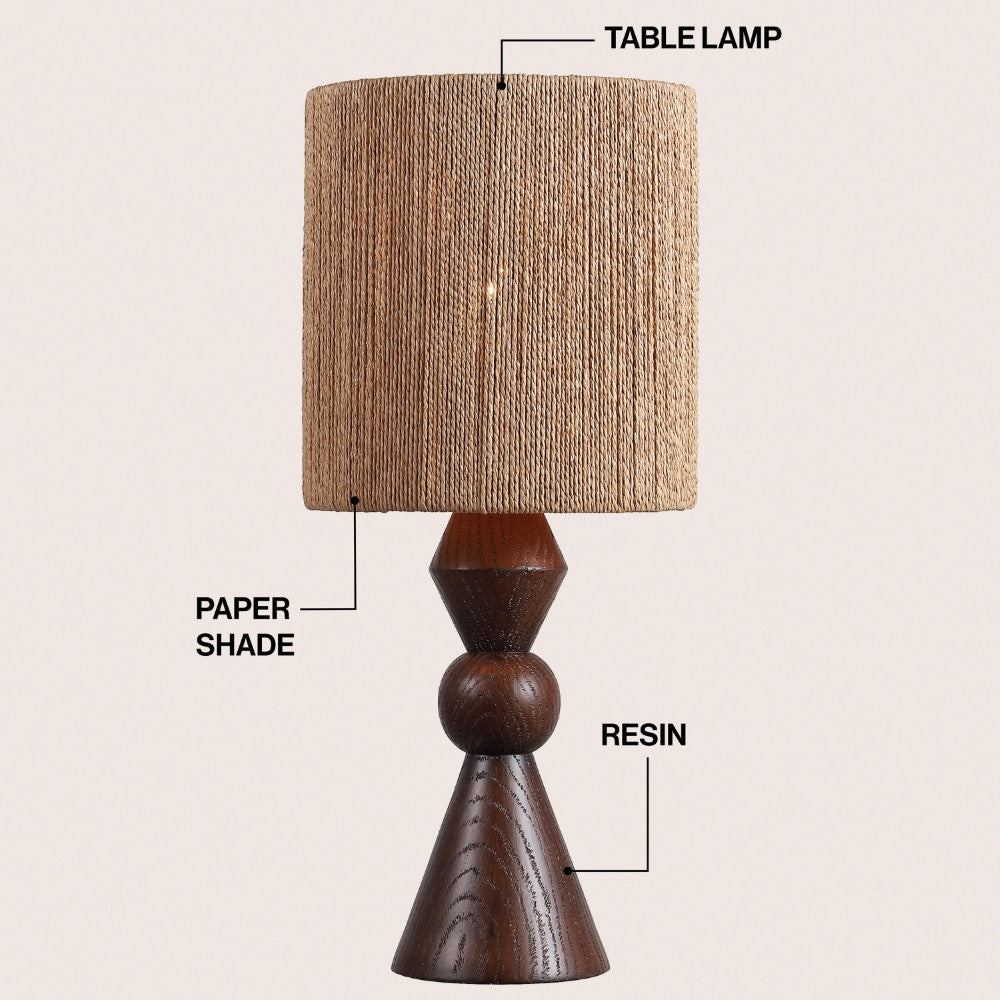 - Sculptural resin base finished in a warm brown tone with a coordinating paper shade