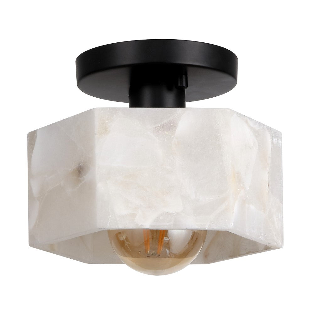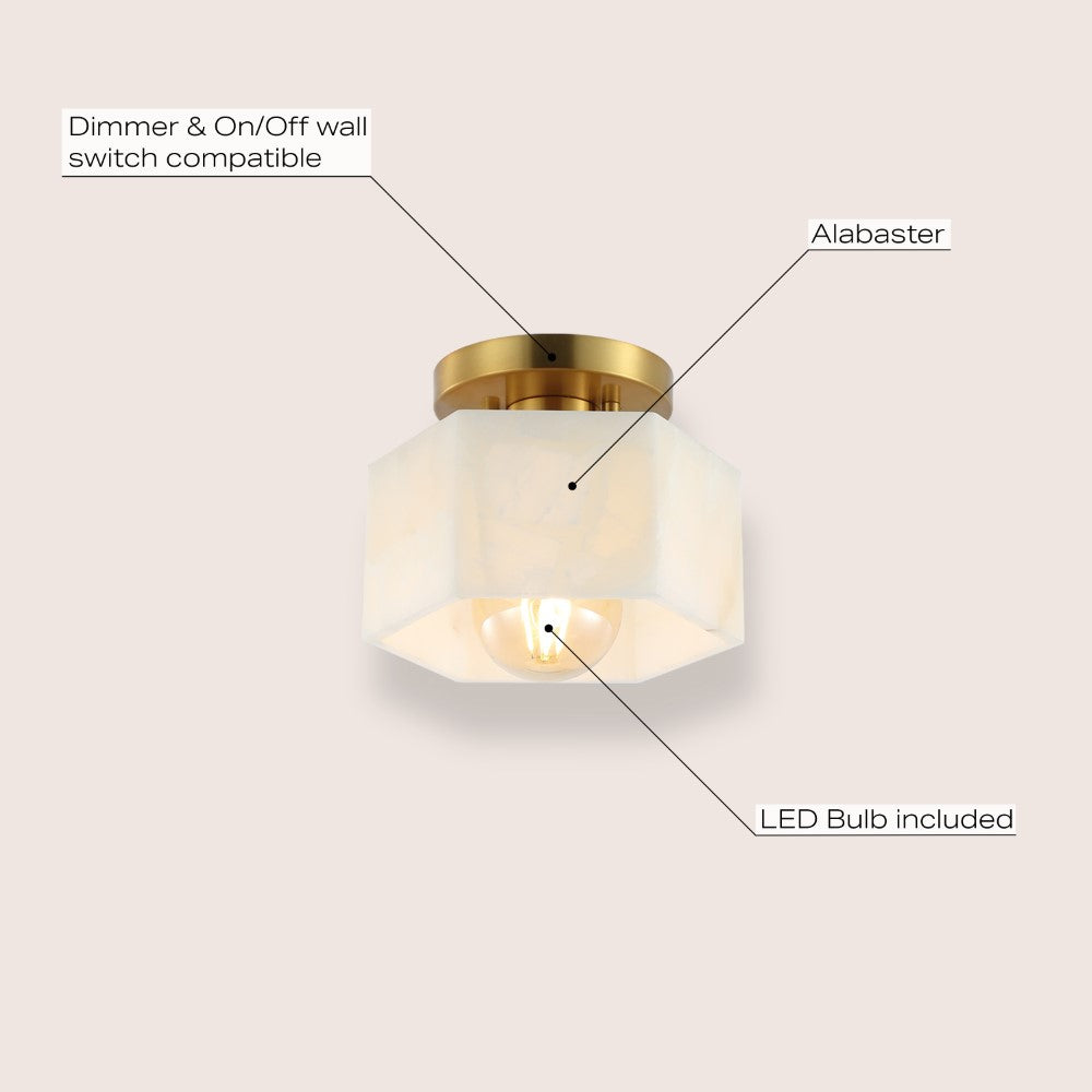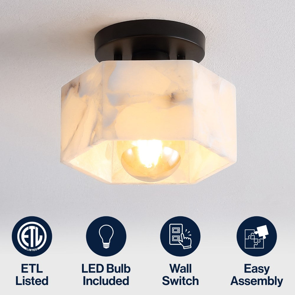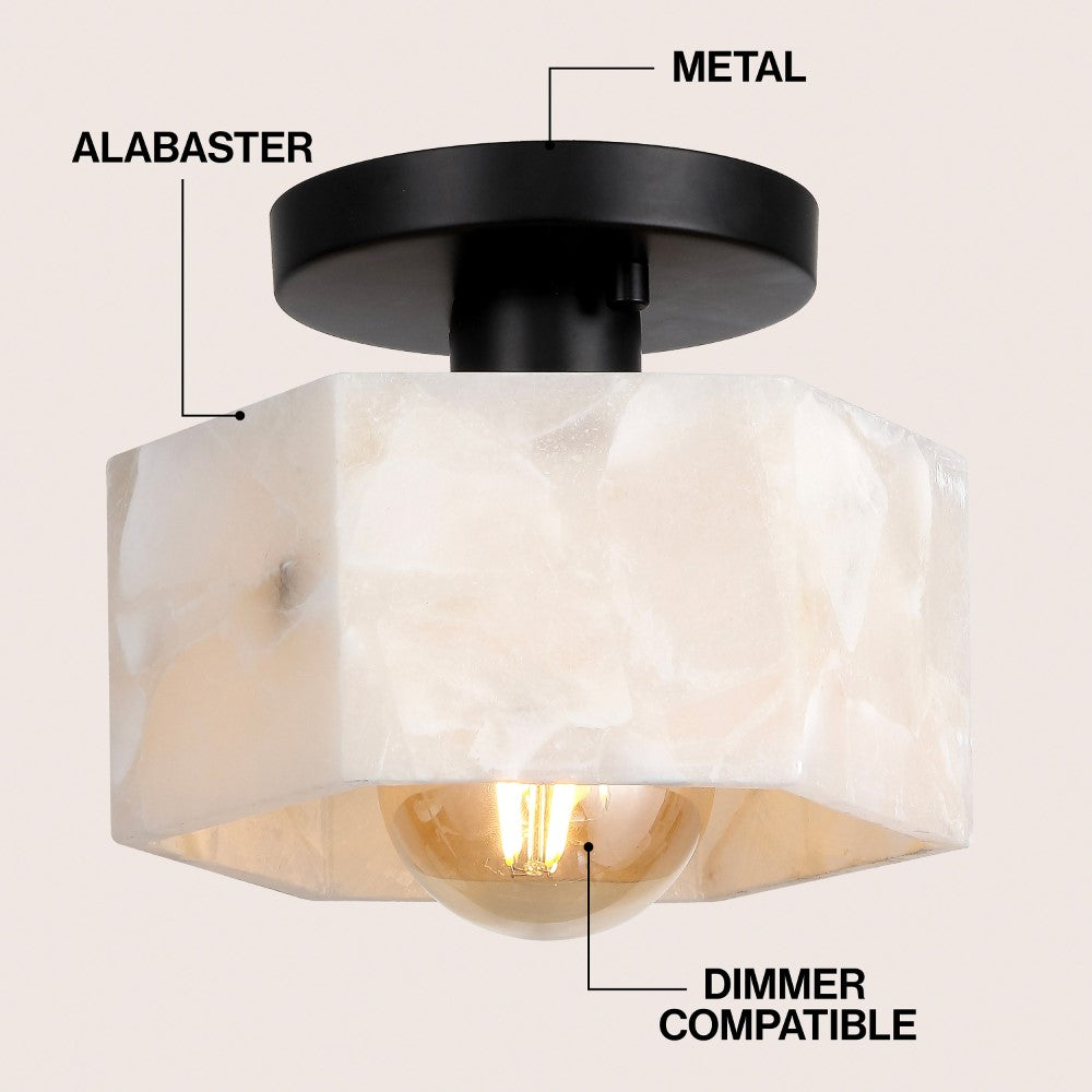 Etta 8" 1-Light Modern Contemporary Alabaster/Iron Hexagonal LED Semi Flush Mount