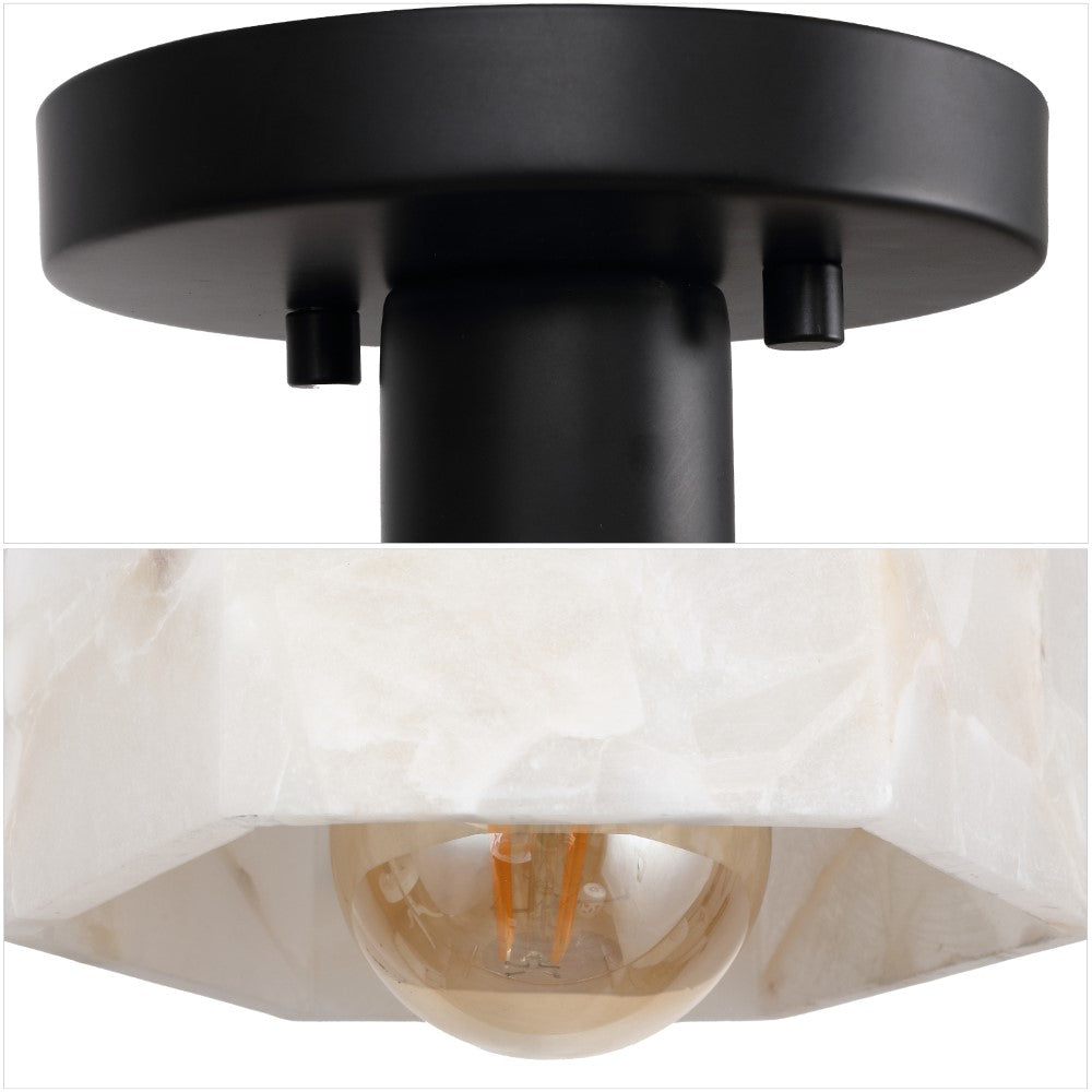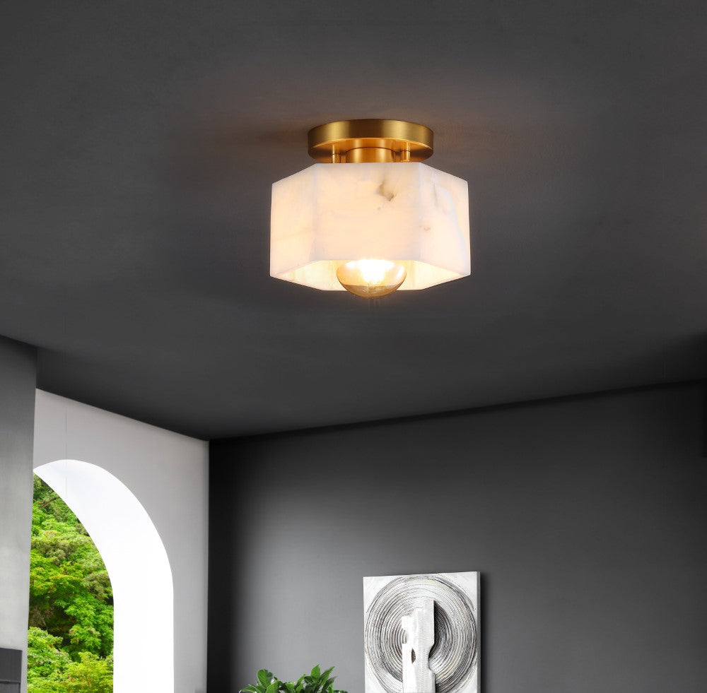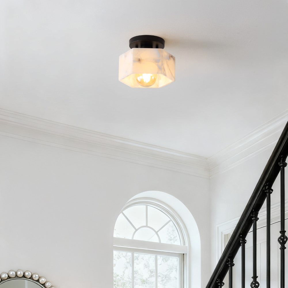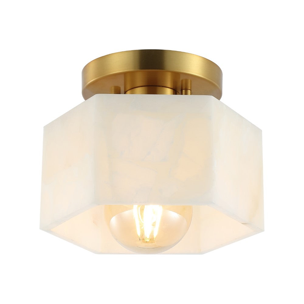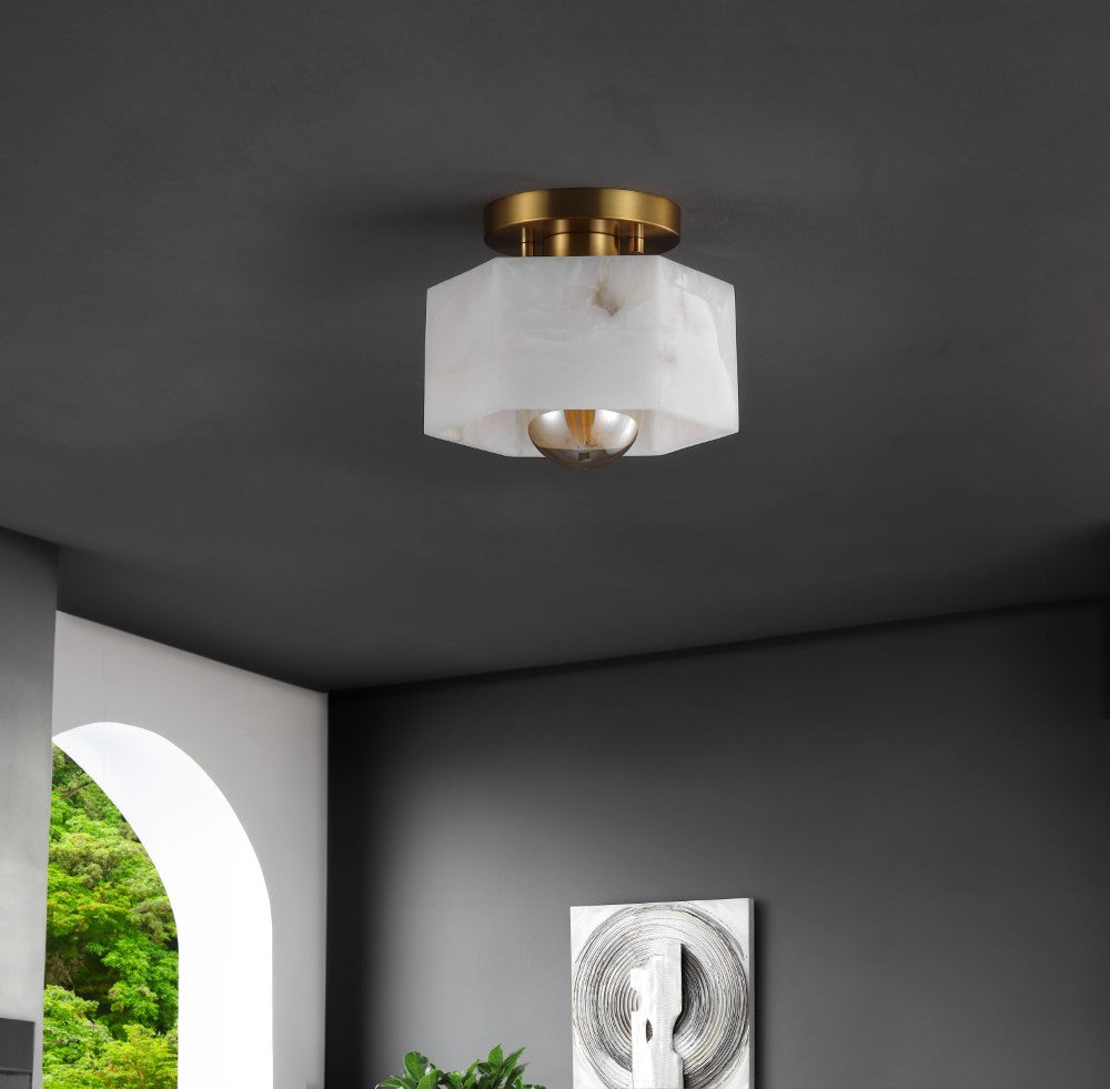 Etta 8" 1-Light Modern Contemporary Alabaster/Iron Hexagonal LED Semi Flush Mount