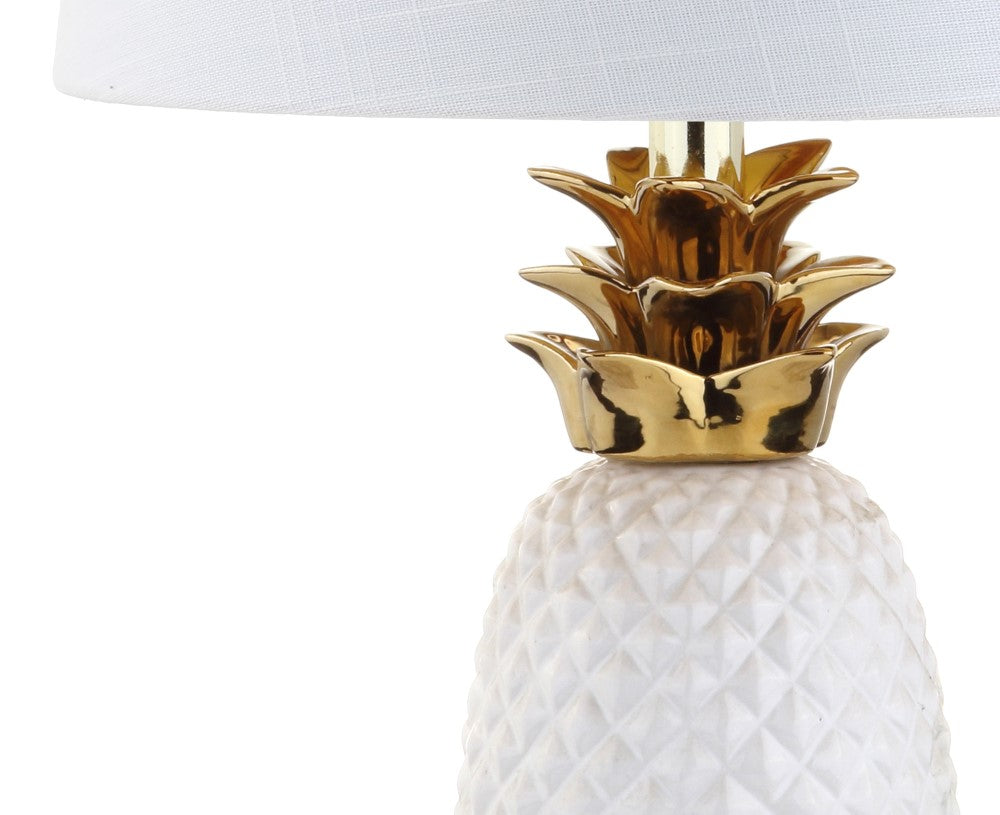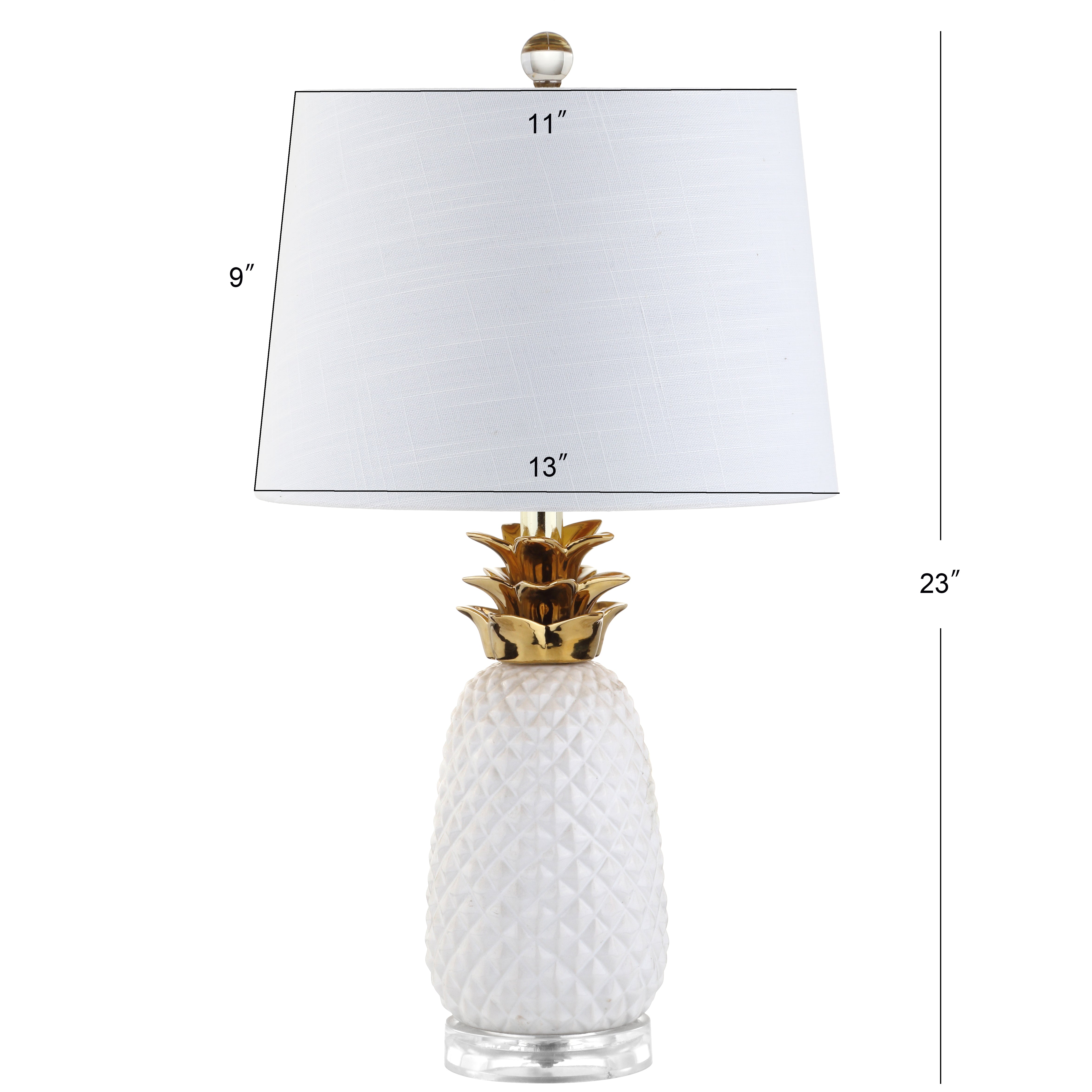 - For a dose of fun and whimsy, try this ceramic pineapple lamp perched upon an acrylic base