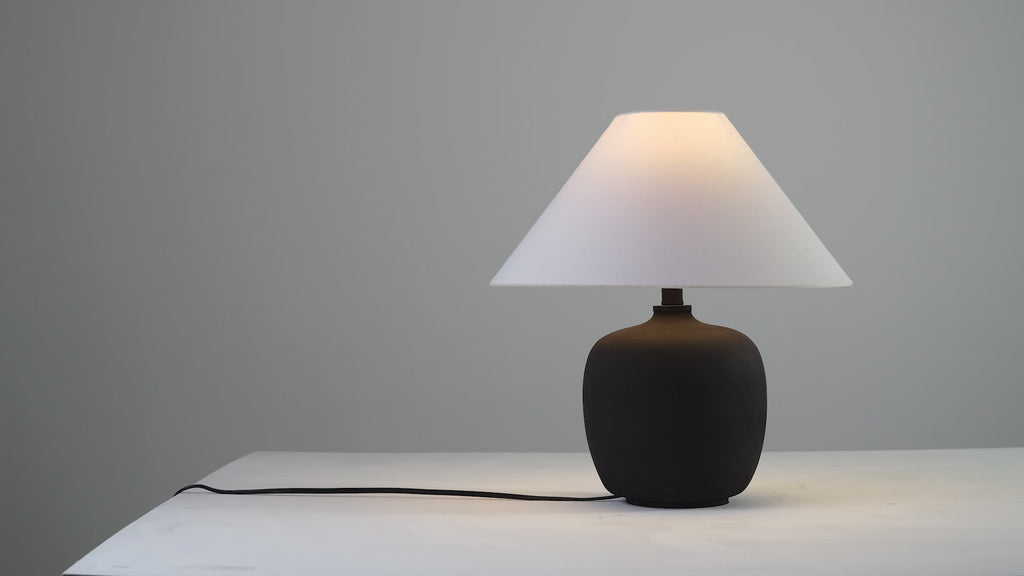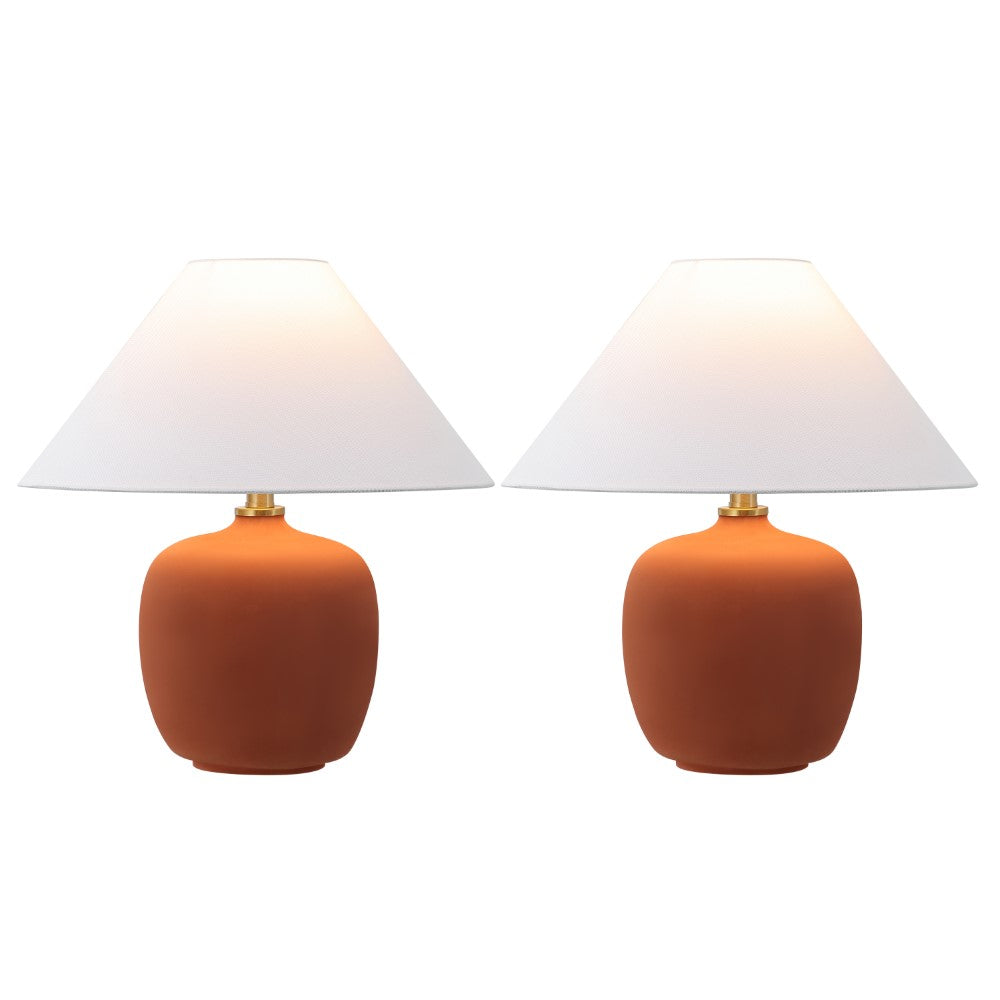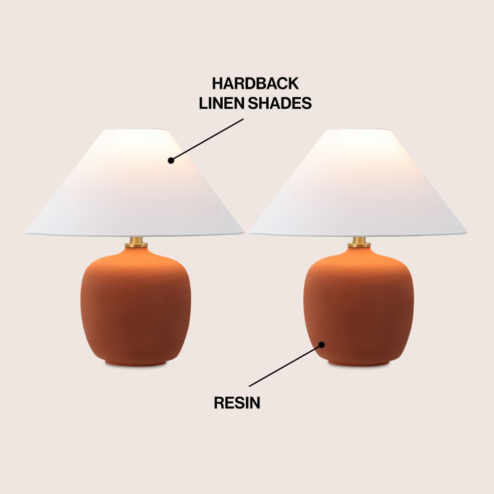 Make a bold statement with our pair of minimalist, modern jar lamps. Heavy resin bases in a classic pottery shape are topped with tapered linen shades. The chic matte finish is the perfect low-key addition to a bedroom, office or living room.