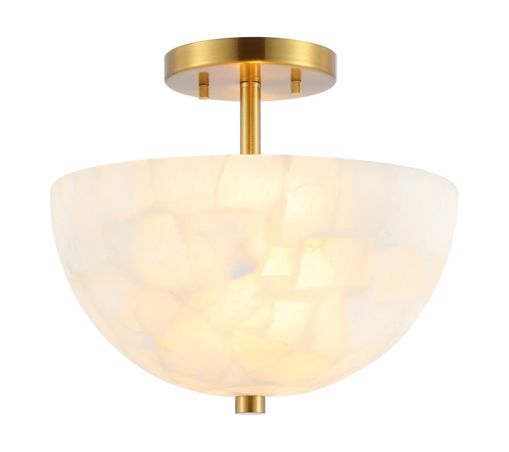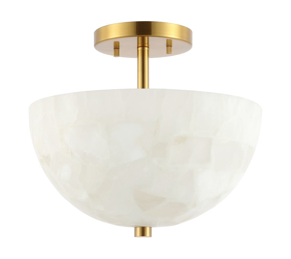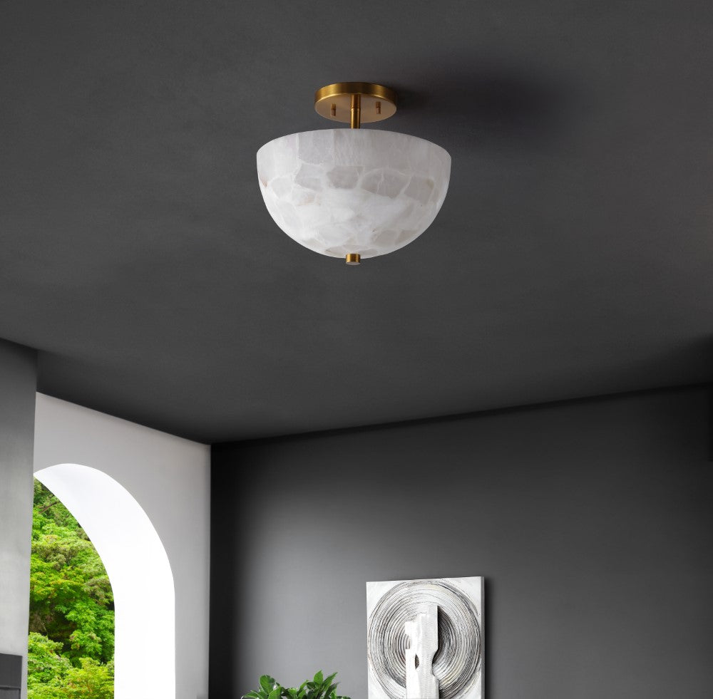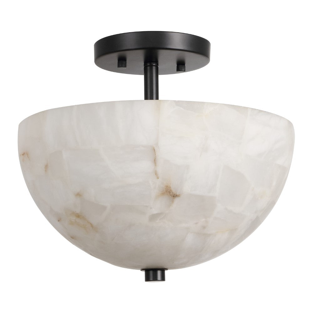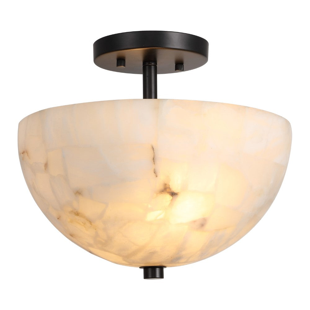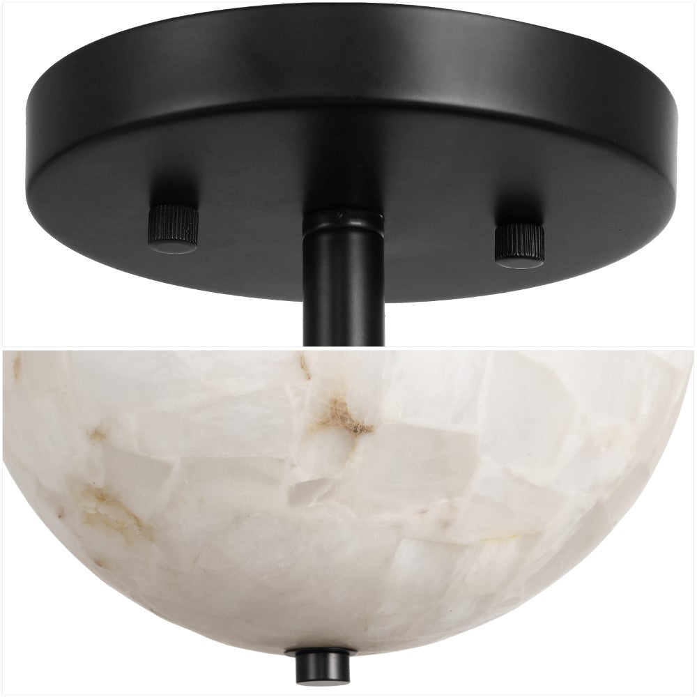 Meyda 11.88" 2-Light Modern Contemporary Alabaster/Iron Inverted Dome LED Semi Flush Mount