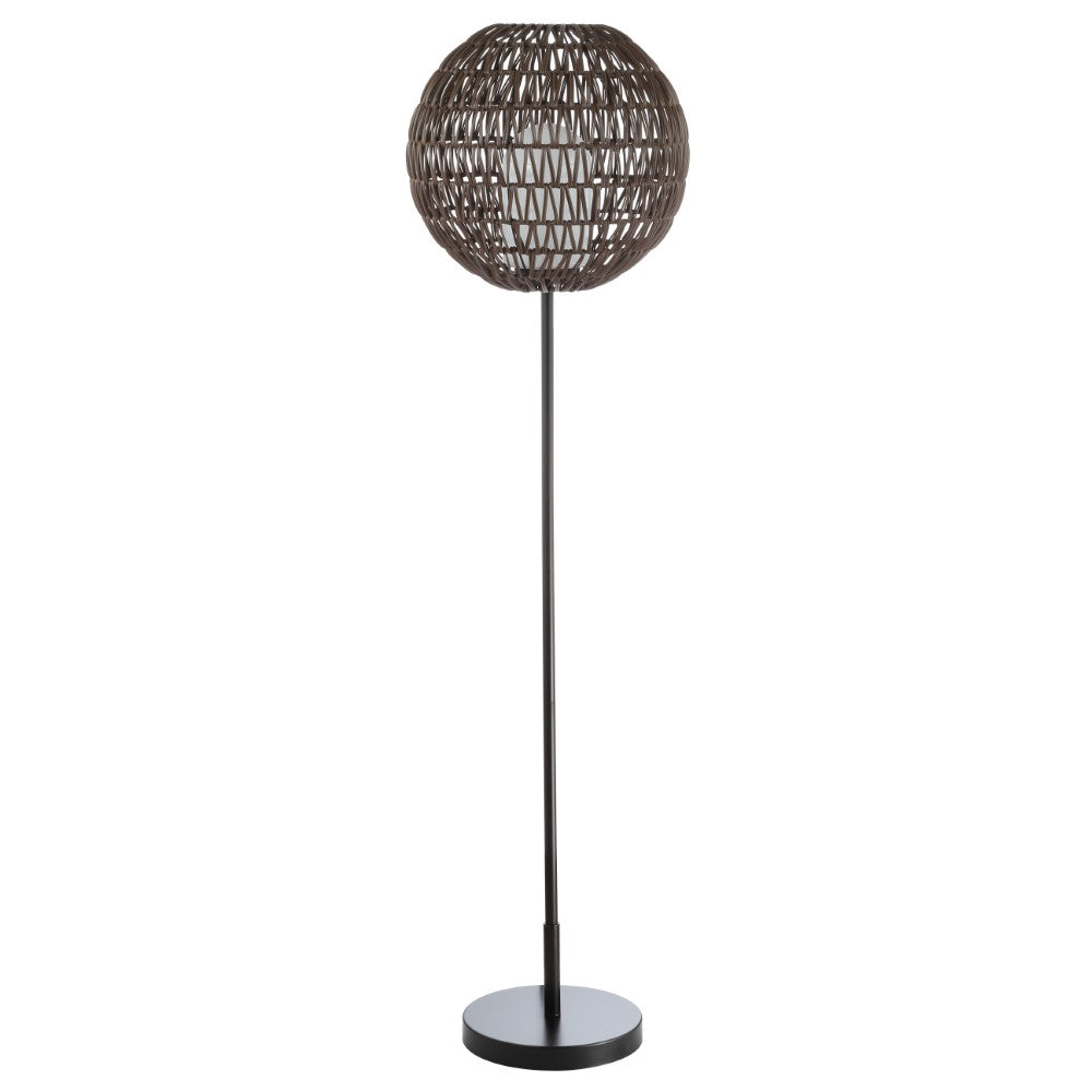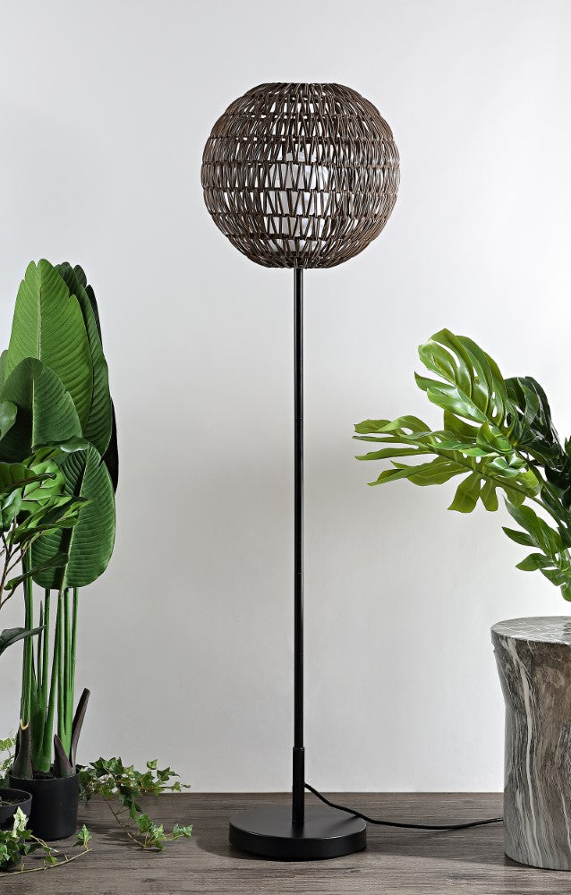 Our take on a Southeast-Asian bamboo lantern, crafted into a modern floor lamp. Wicker-woven plastic covers a sturdy metal frame, and the bulb is protected by an ivory plastic cover. The dark brown woven pattern creates moody accent lighting.