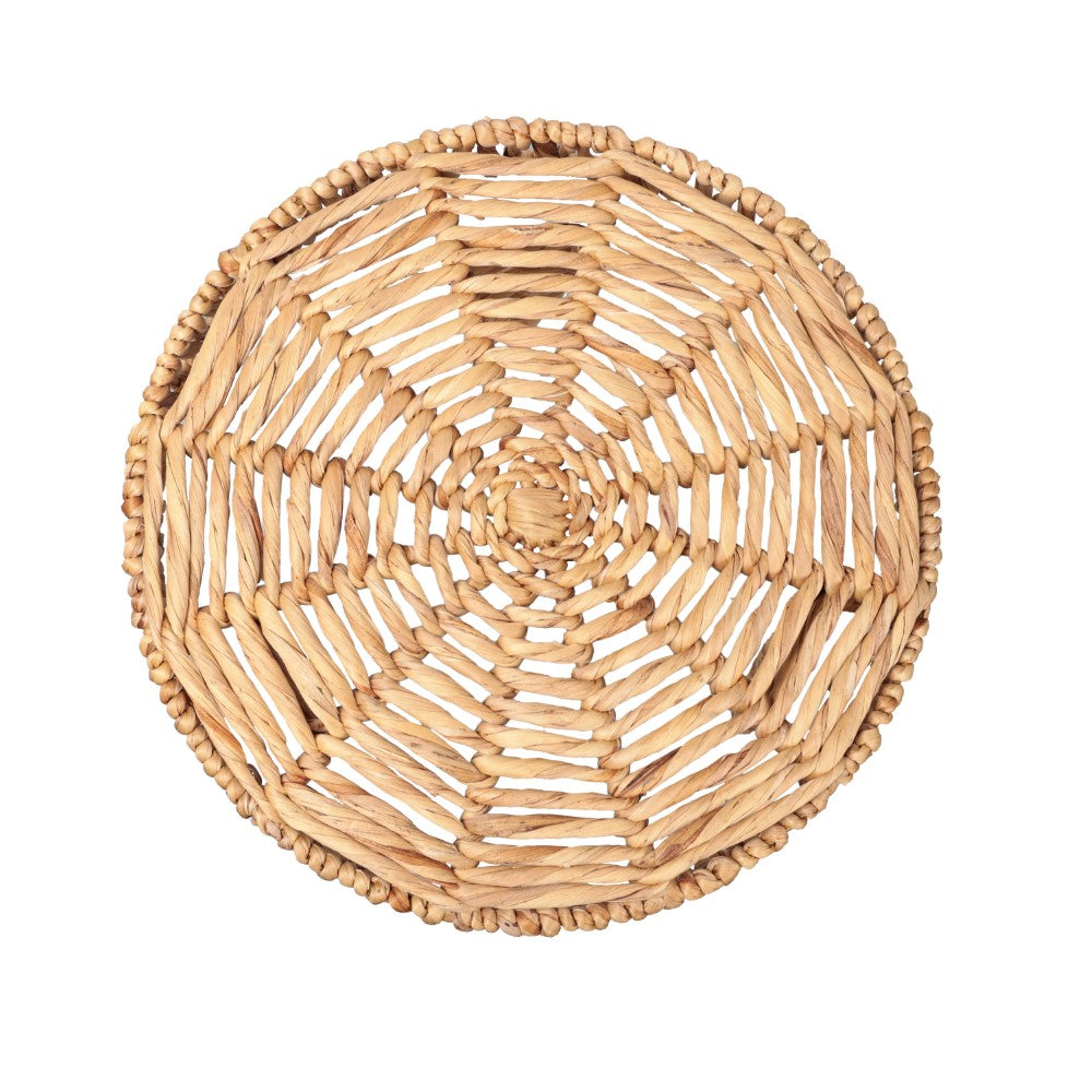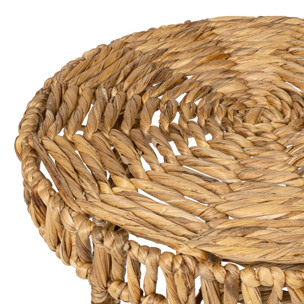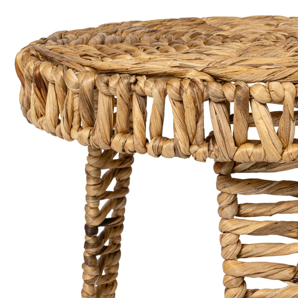 Infuse your living area with organic texture through this beautifully woven water hyacinth end table. The intricate braided design wraps a sturdy metal frame, offering a lightweight yet durable surface for holding books or decorative accents. Its compact footprint and artisanal charm make it a versatile addition that effortlessly enhances the atmosphere of any room in your home.