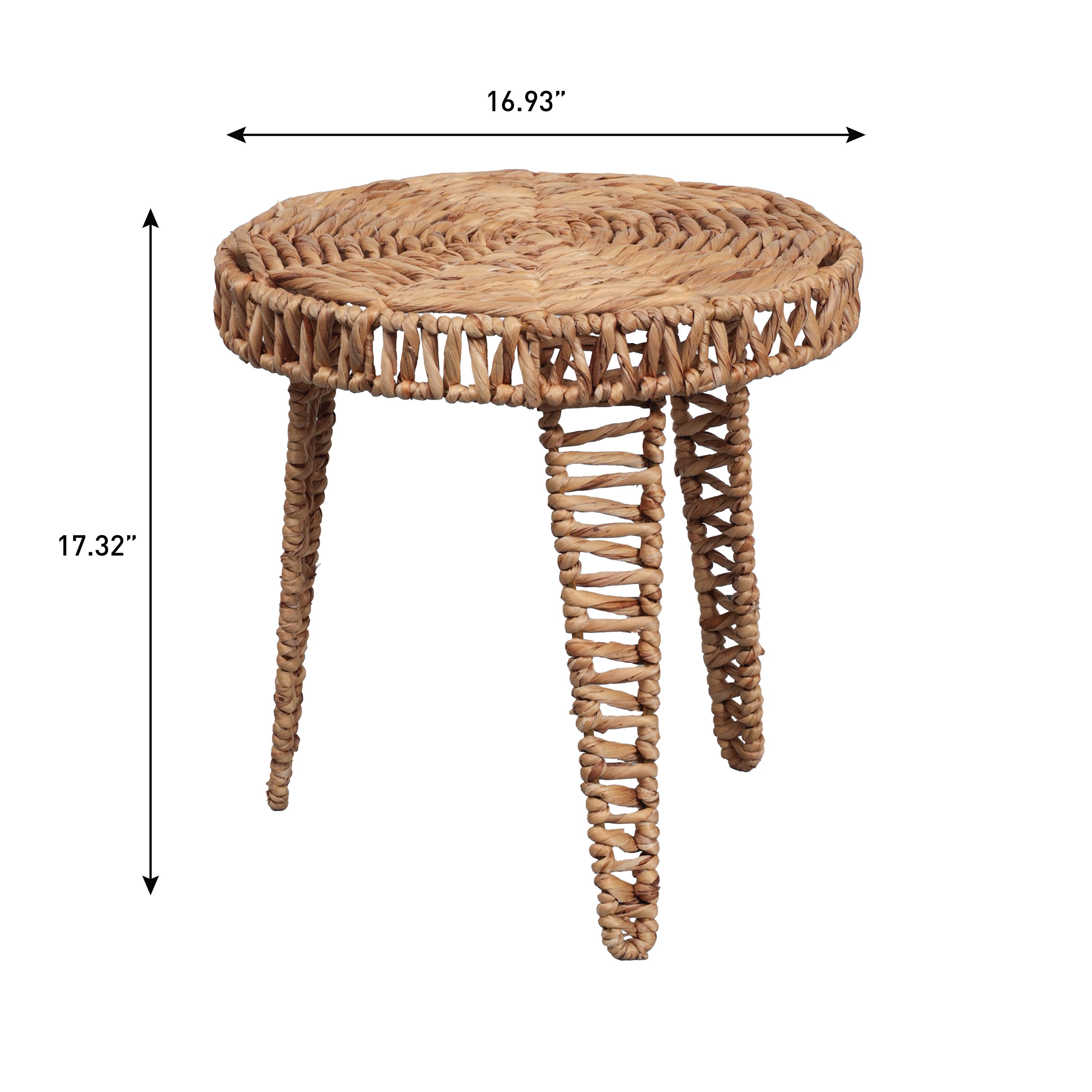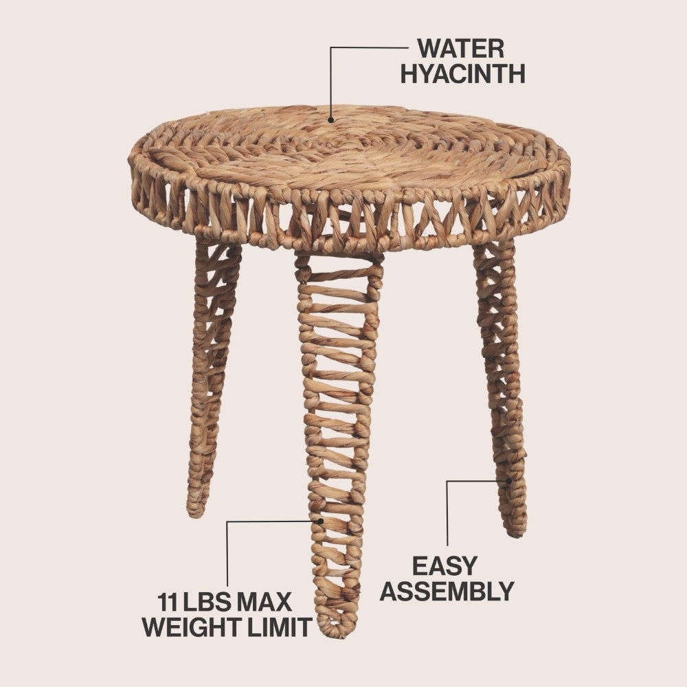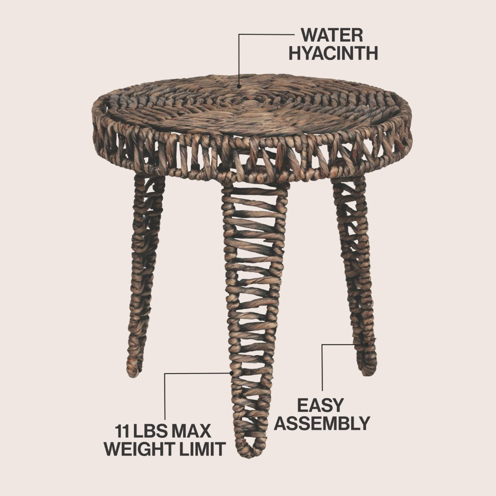 Vero 17" Coastal Bohemian Handwoven Water Hyacinth Round Tripod End Table