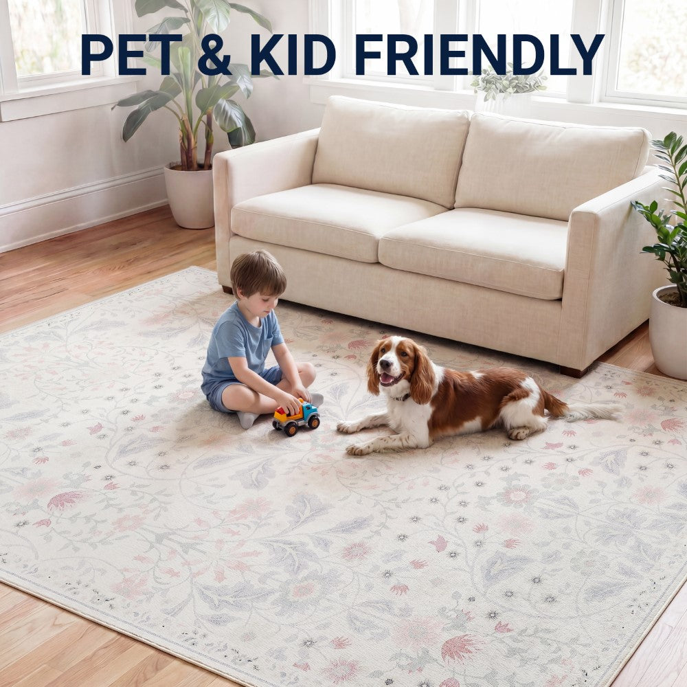 Norvyn Art Nouveau Floral Border Machine-washable Area Rug