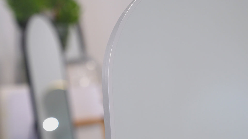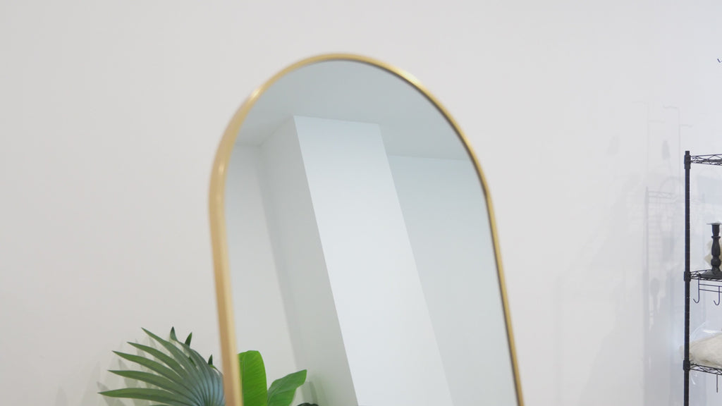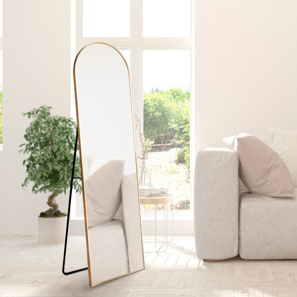 This sleek, modern dressing mirror has a classic arched top that adds a vintage vibe to any space. The freestanding design is strengthened by a narrow metal frame and easel leg. Its vertical orientation is ideal for the closet, bedroom or dressing area.