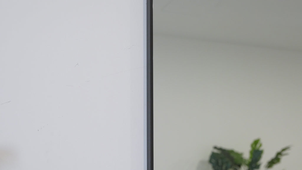 - Mirrored glass has a minimalist metal frame