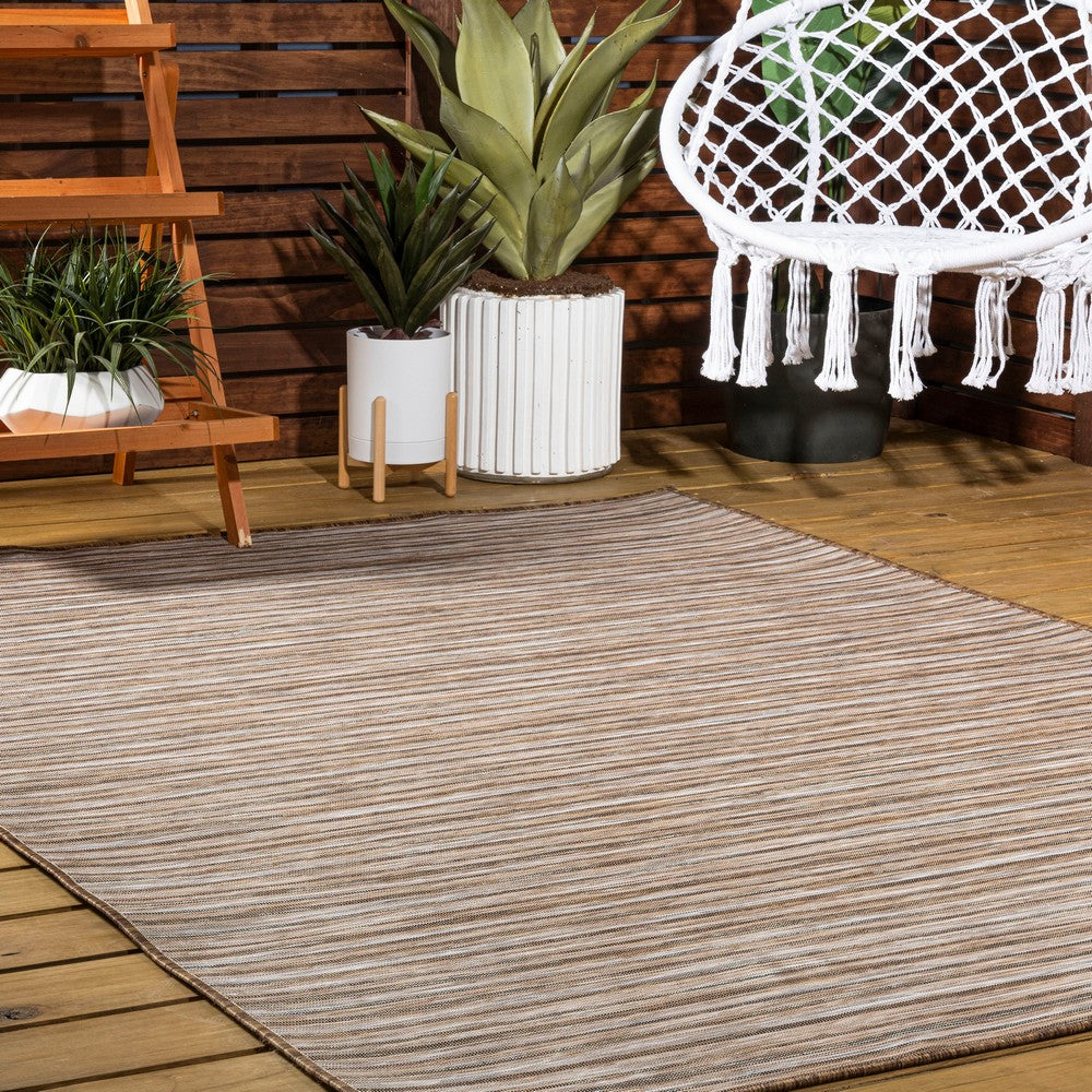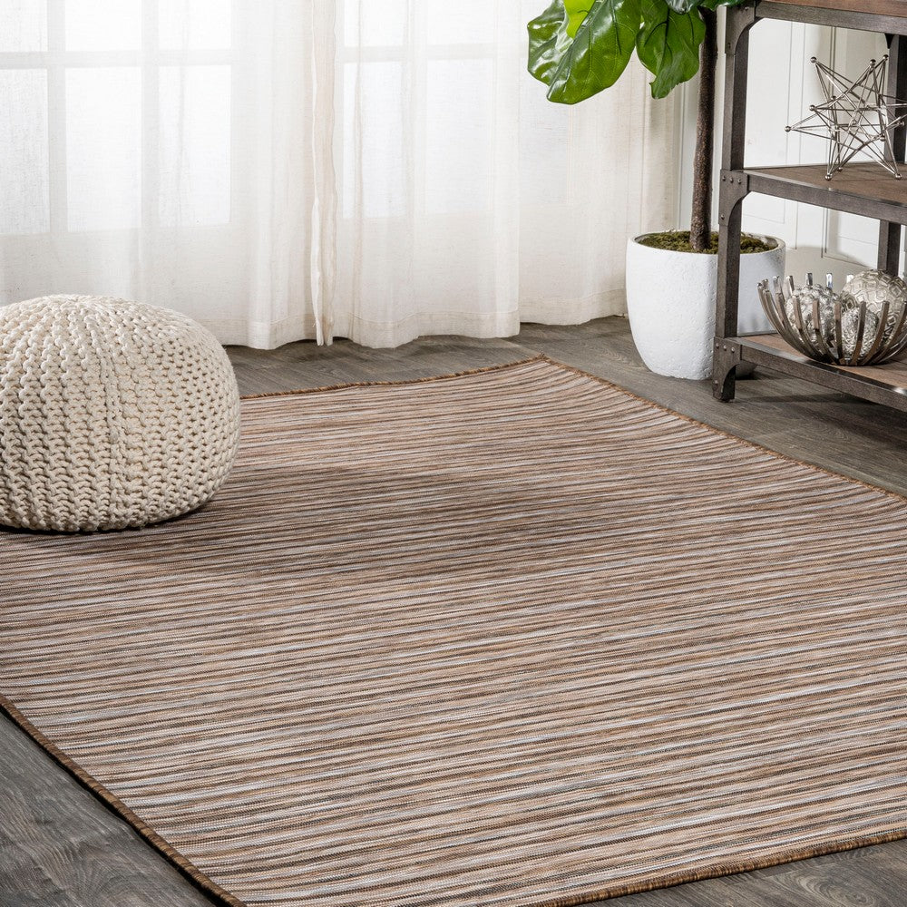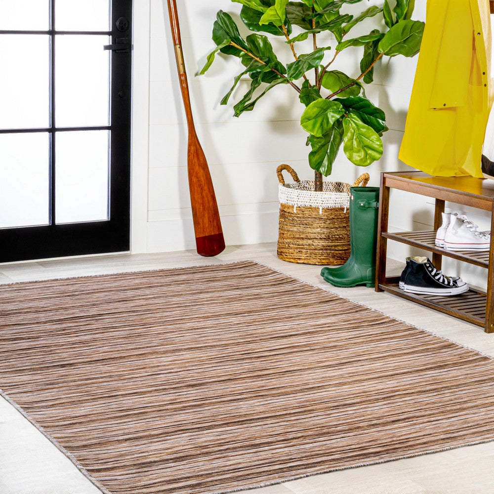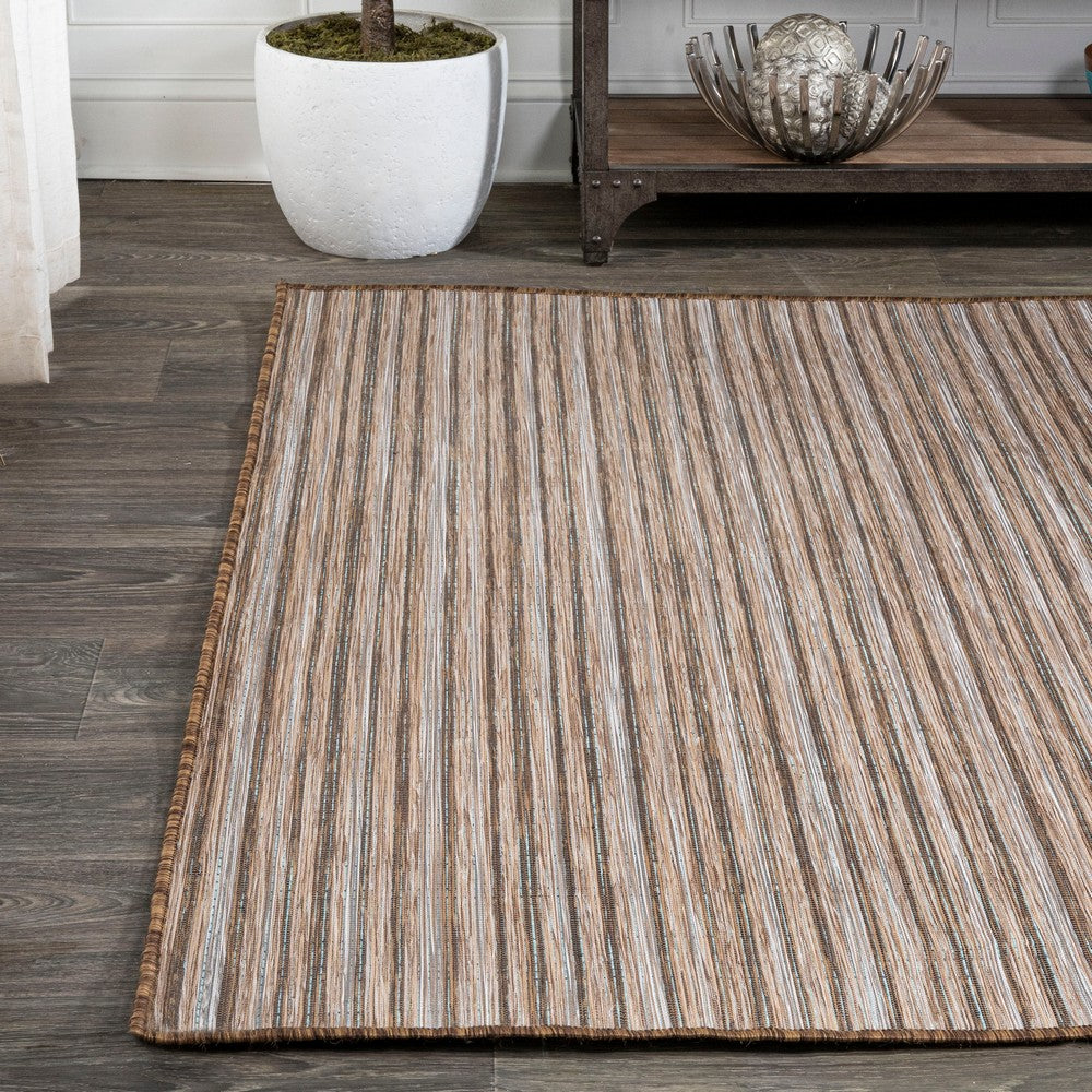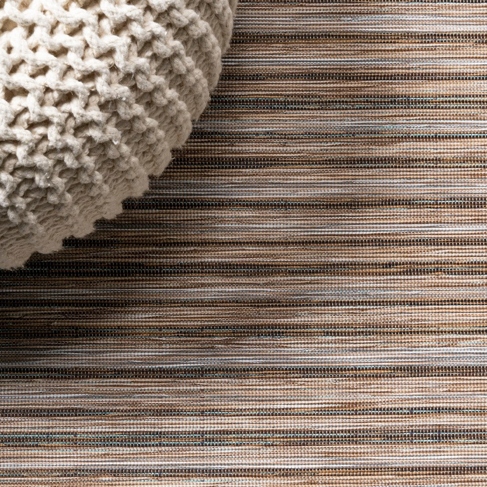 Anchor your mid-century modern, urban contemporary, or farmhouse-inspired space with our flat-weave striped rug. The mingled jute-brown stripe design is practical for high-traffic areas with kids and pets. Add pattern to a living room, dining room, entry, office or bedroom with this easy-care synthetic rug.