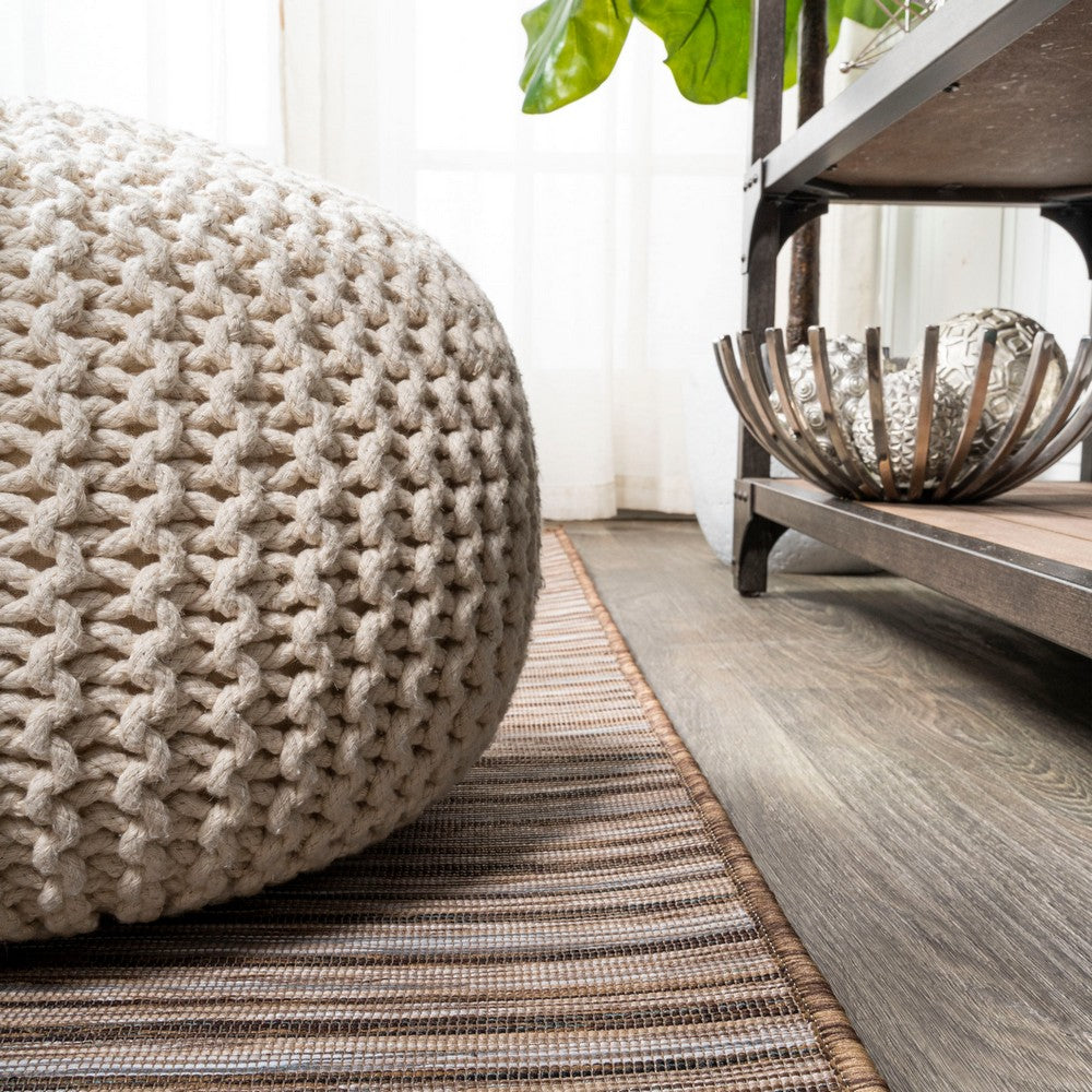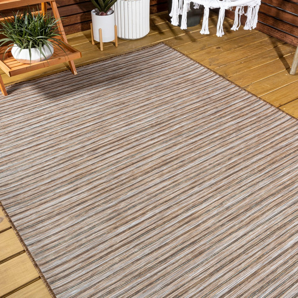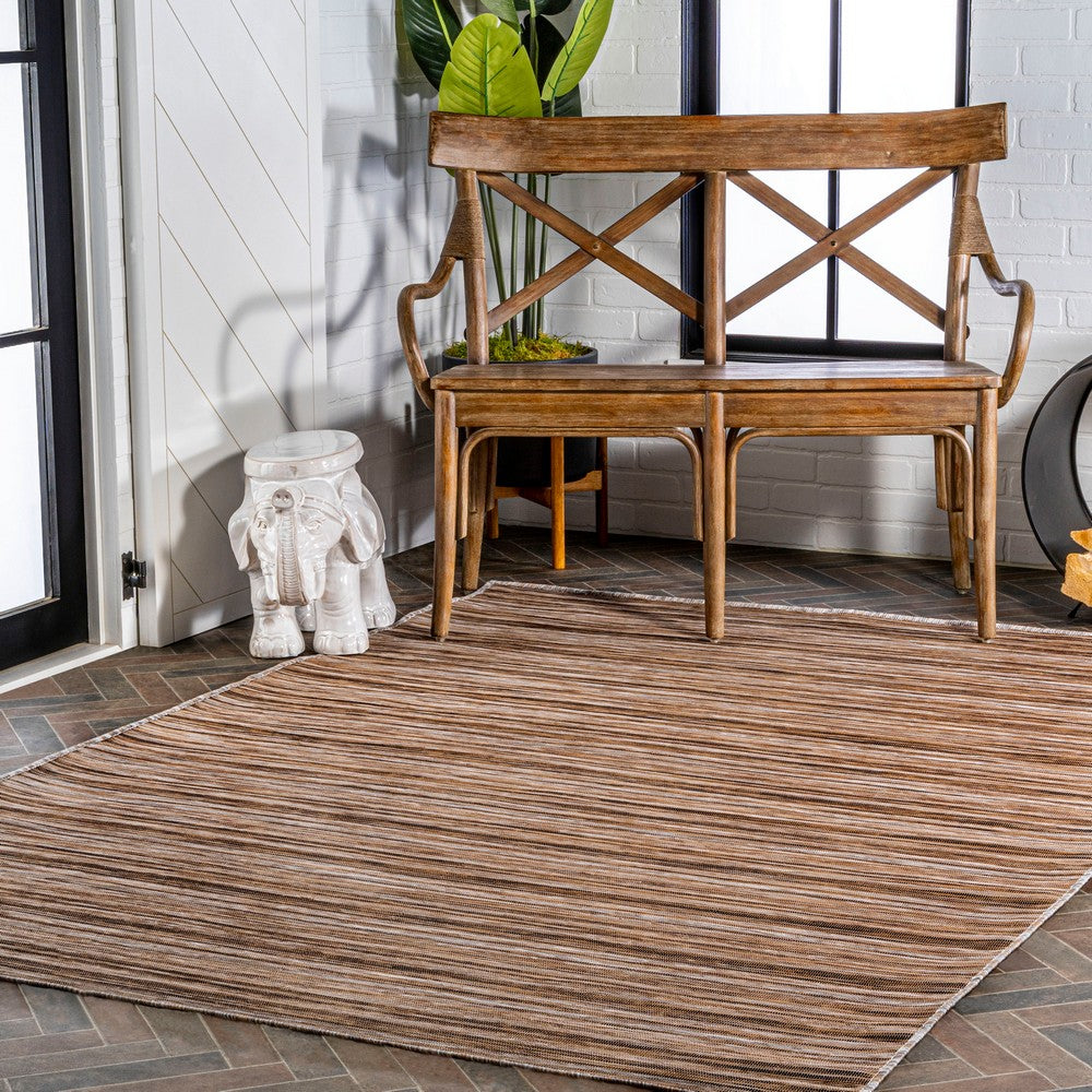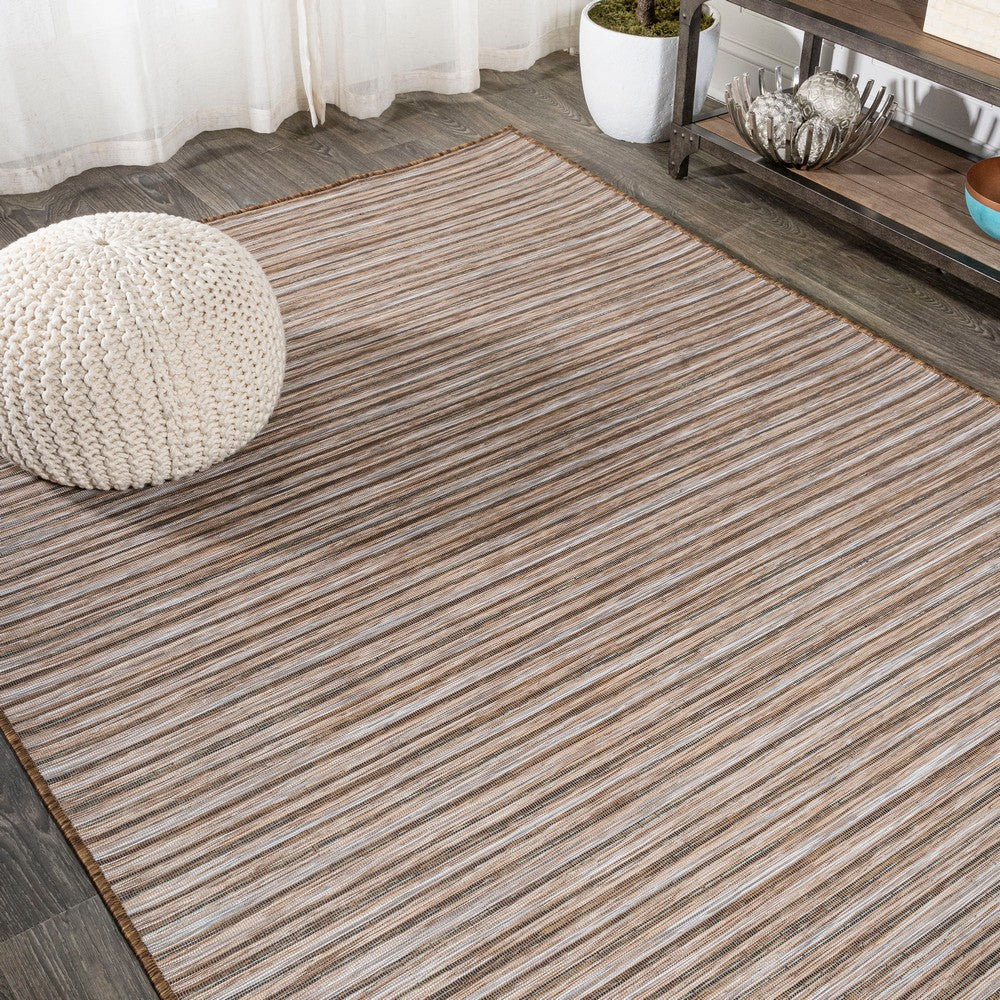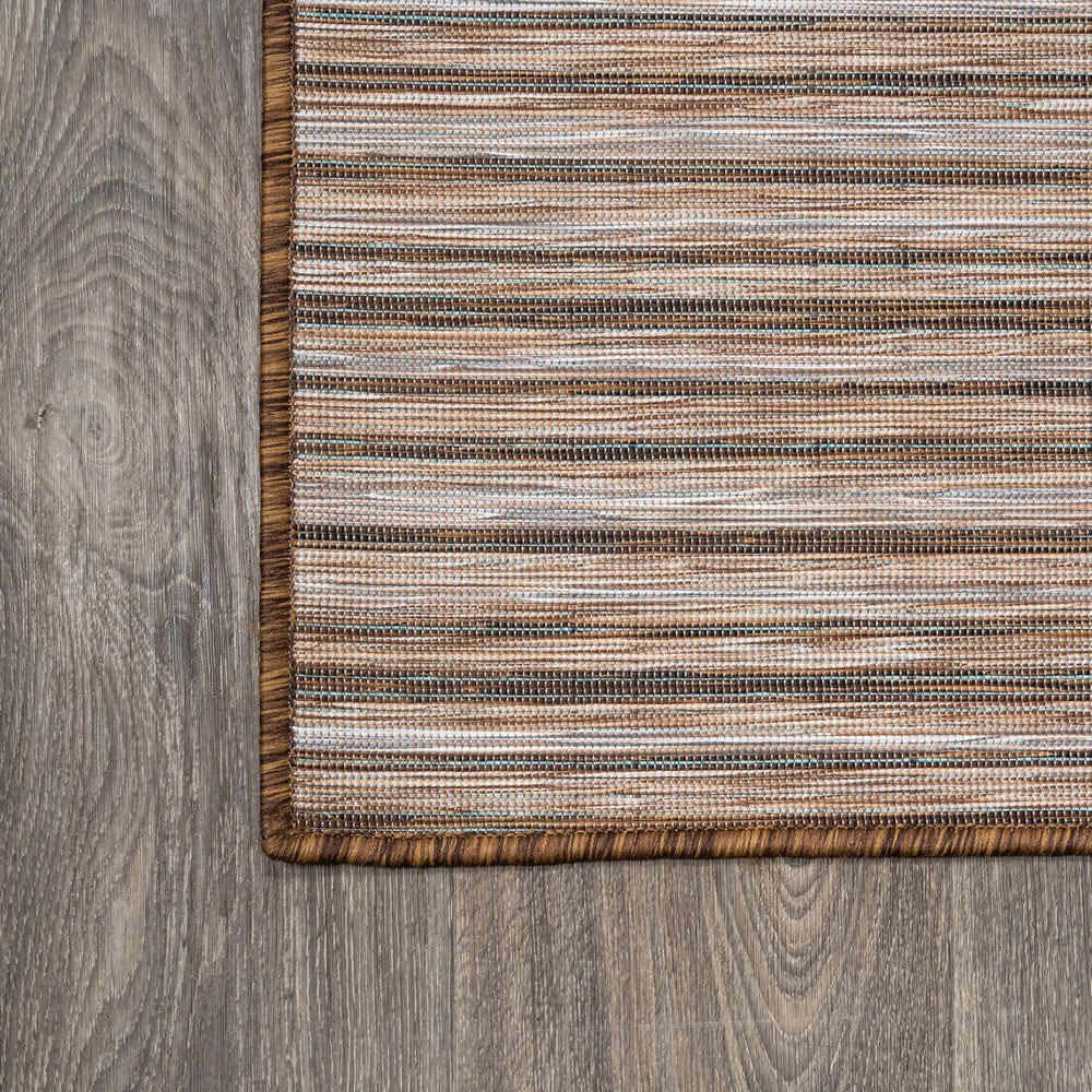 Anchor your mid-century modern, urban contemporary, or farmhouse-inspired space with our flat-weave striped rug. The mingled jute-brown stripe design is practical for high-traffic areas with kids and pets. Add pattern to a living room, dining room, entry, office or bedroom with this easy-care synthetic rug.